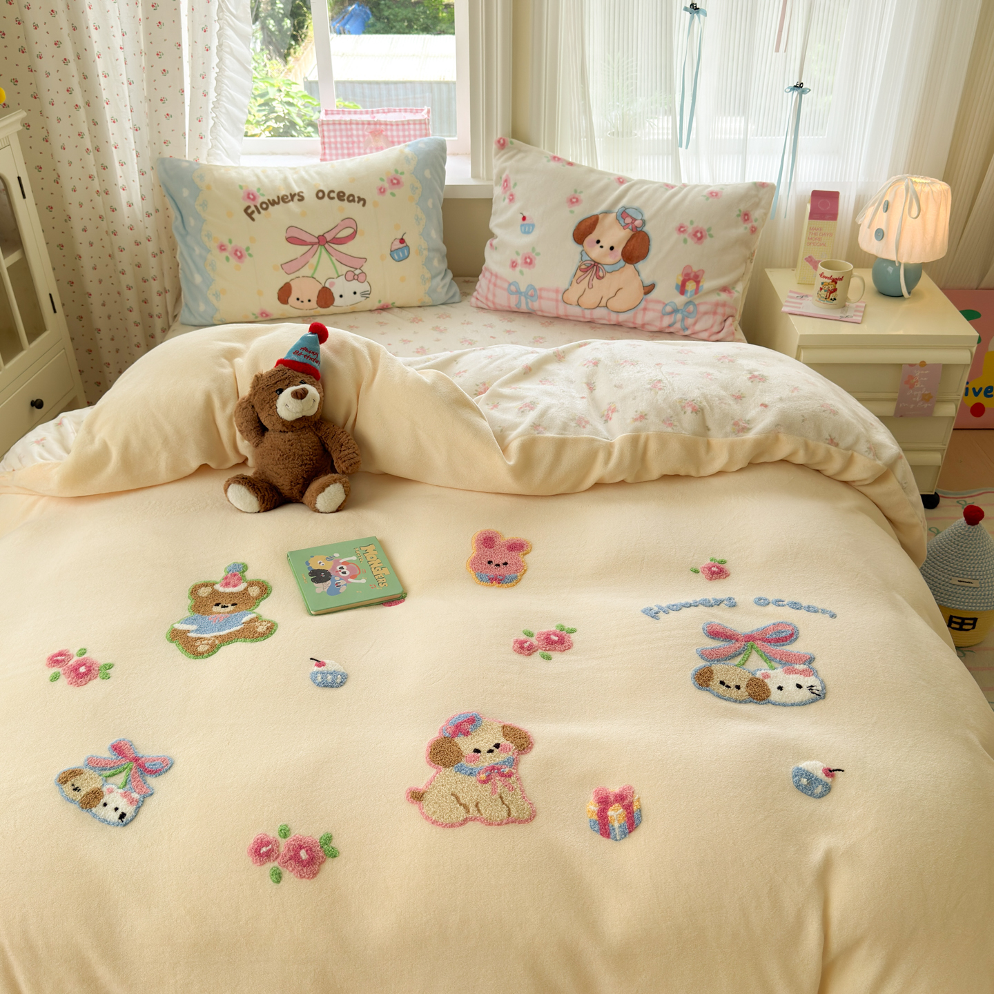 当前位置: 91家纺网 > 商品网购 > 床品套件 > 四件套 > 牛奶绒四件套 > 小叮当家纺仓储工厂店 2025新款牛奶绒毛巾绣贴布绣牛奶绒四件套 小可乐