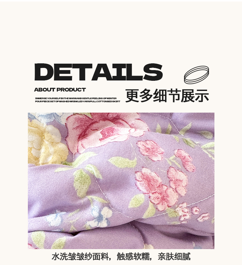 商品名称:优家居 2025新品水洗棉全夹棉床裙四件套韩版糯糯棉水洗皱皱纱床罩花边被套枕套直播爆款 陌上花开