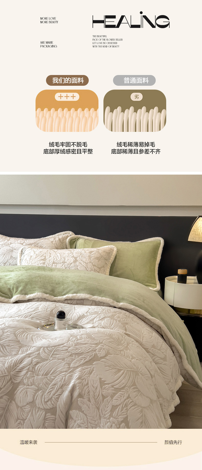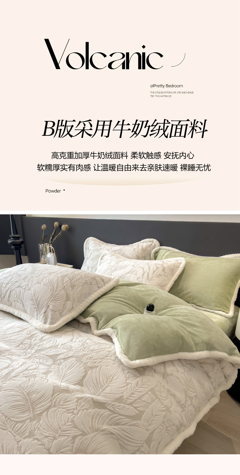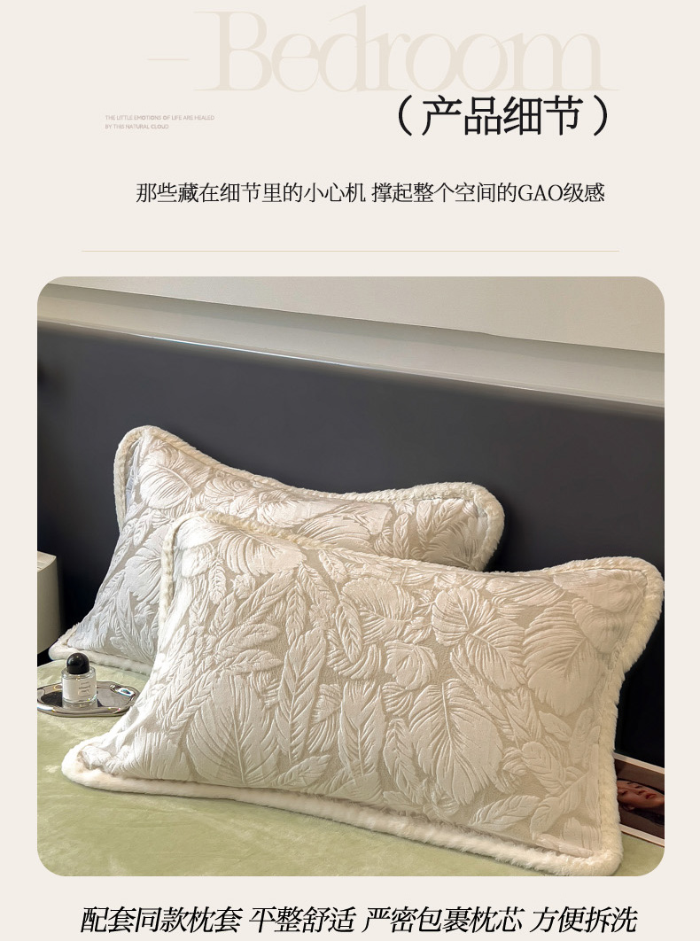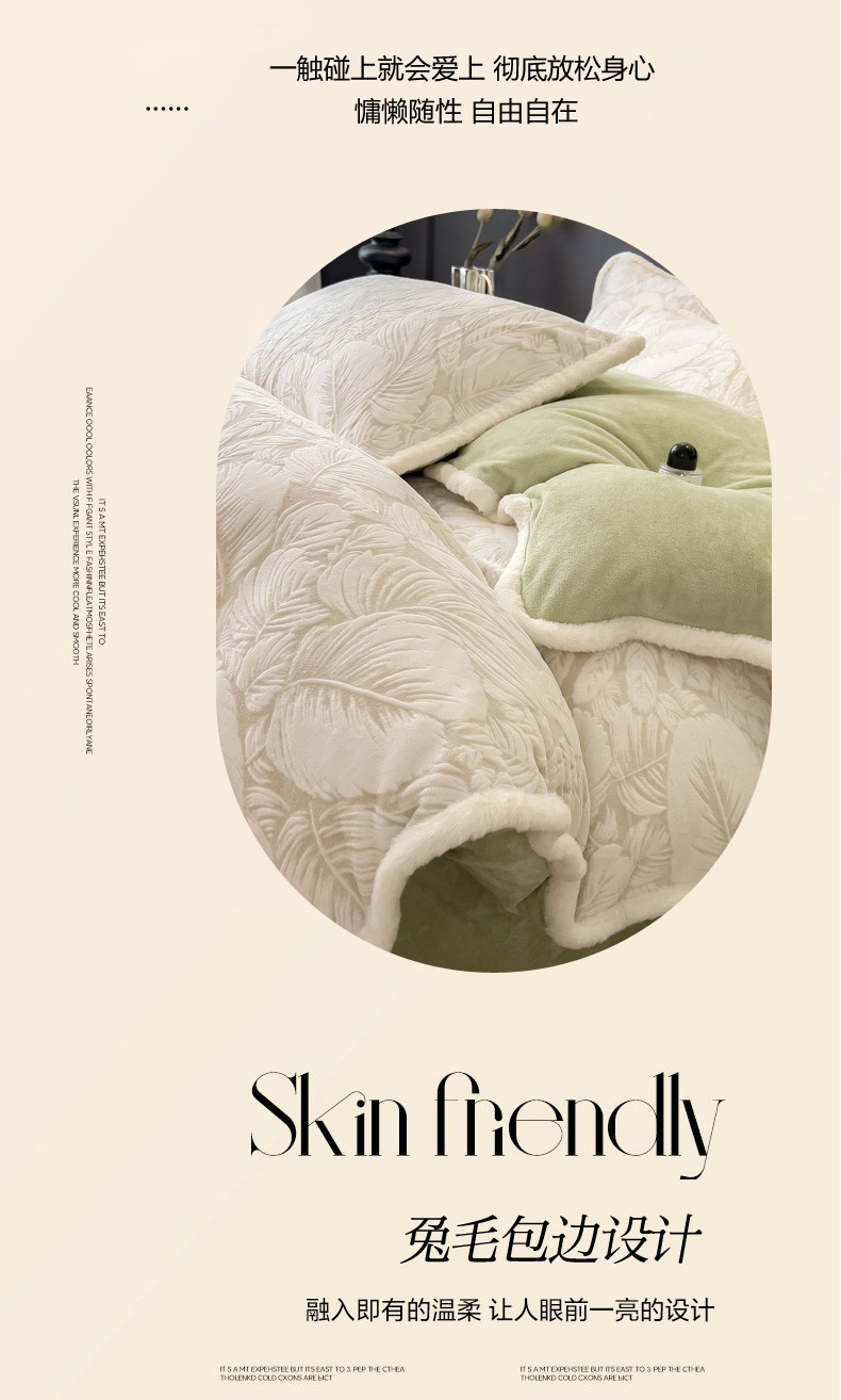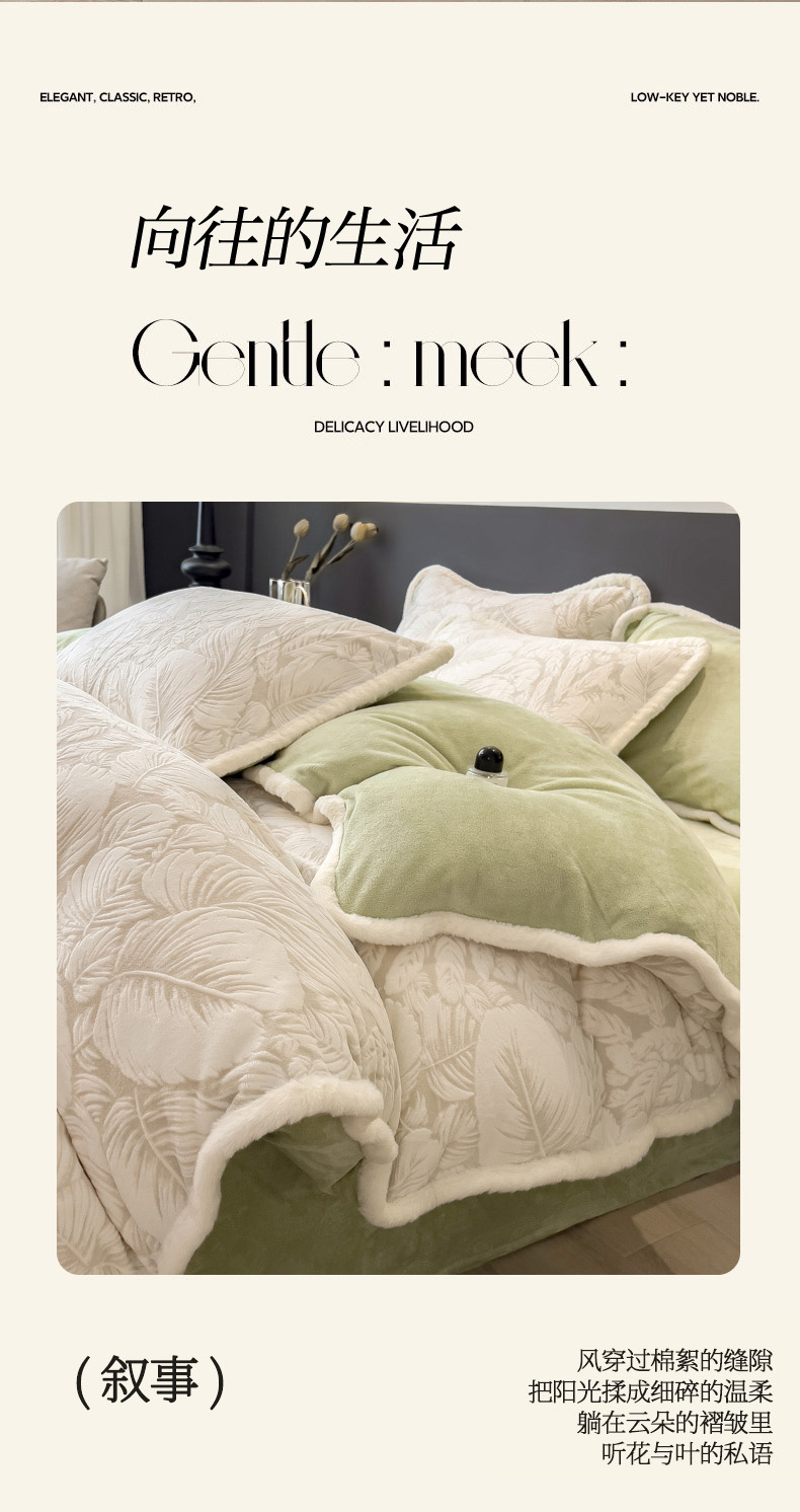 当前位置: 91家纺网 > 商品网购 > 床品套件 > 四件套 > 兔毛绒四件套 > 印季家纺 2025新款法式立体雕花绒兔毛包边四件套 一叶知秋(灰绿)