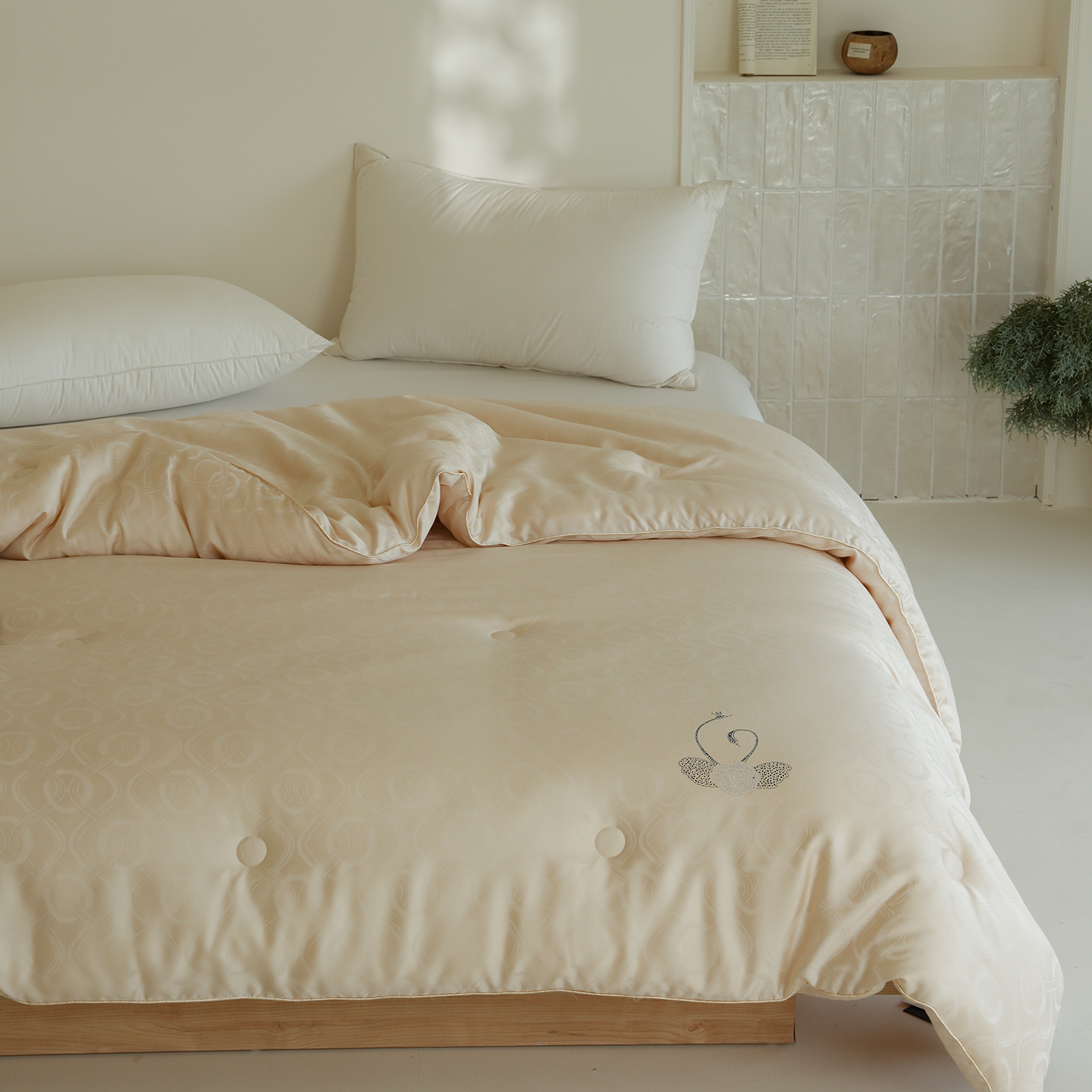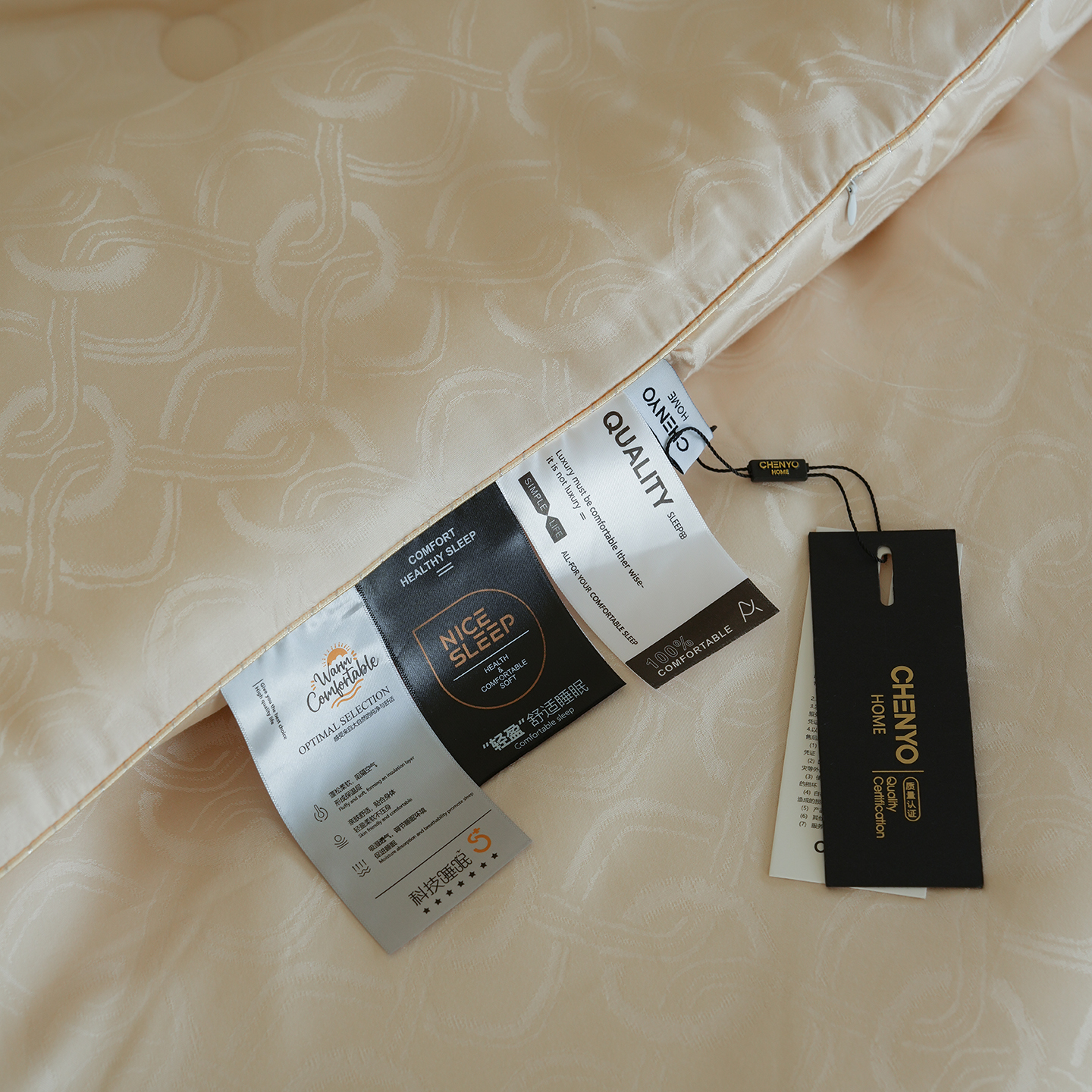 • 91家纺网 家纺一手货源 找家纺 纯优家纺 2025新款45%大豆蛋白纤维高端天丝棉提花烫钻被子被芯-施华洛 施华洛-香槟金