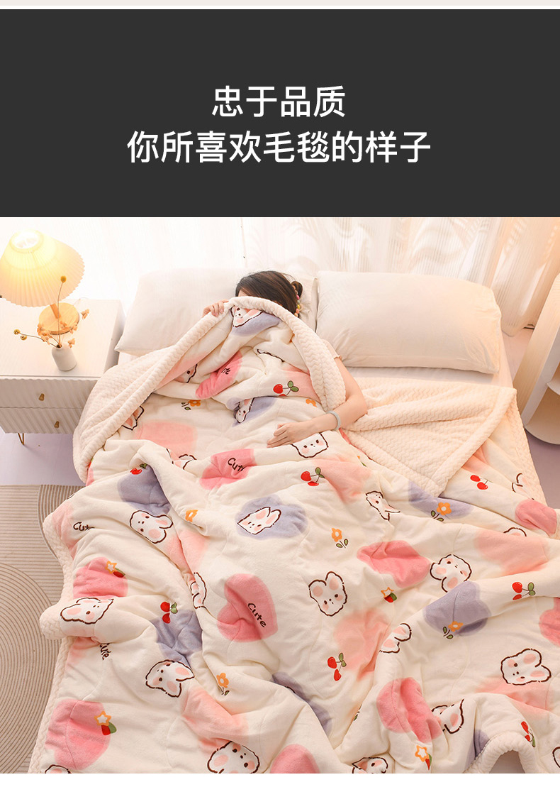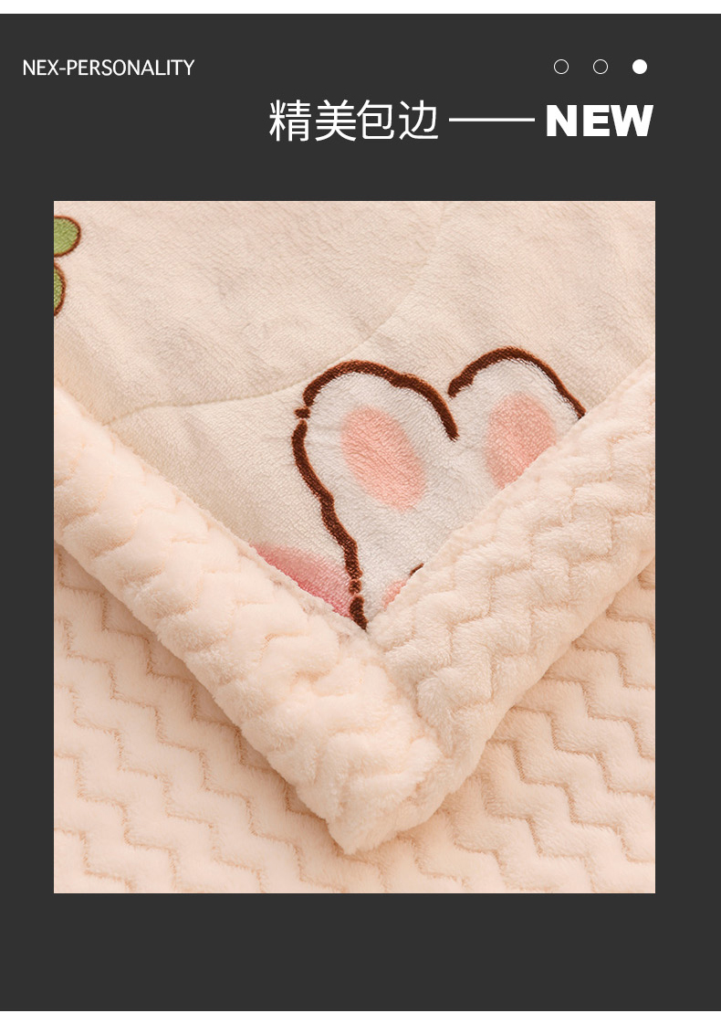 商品名称:印季家纺 2025新款三层夹棉印花牛奶绒毛毯毯子 萌心兔