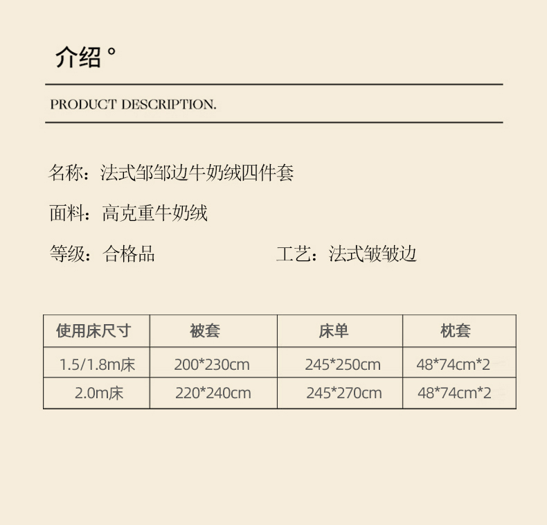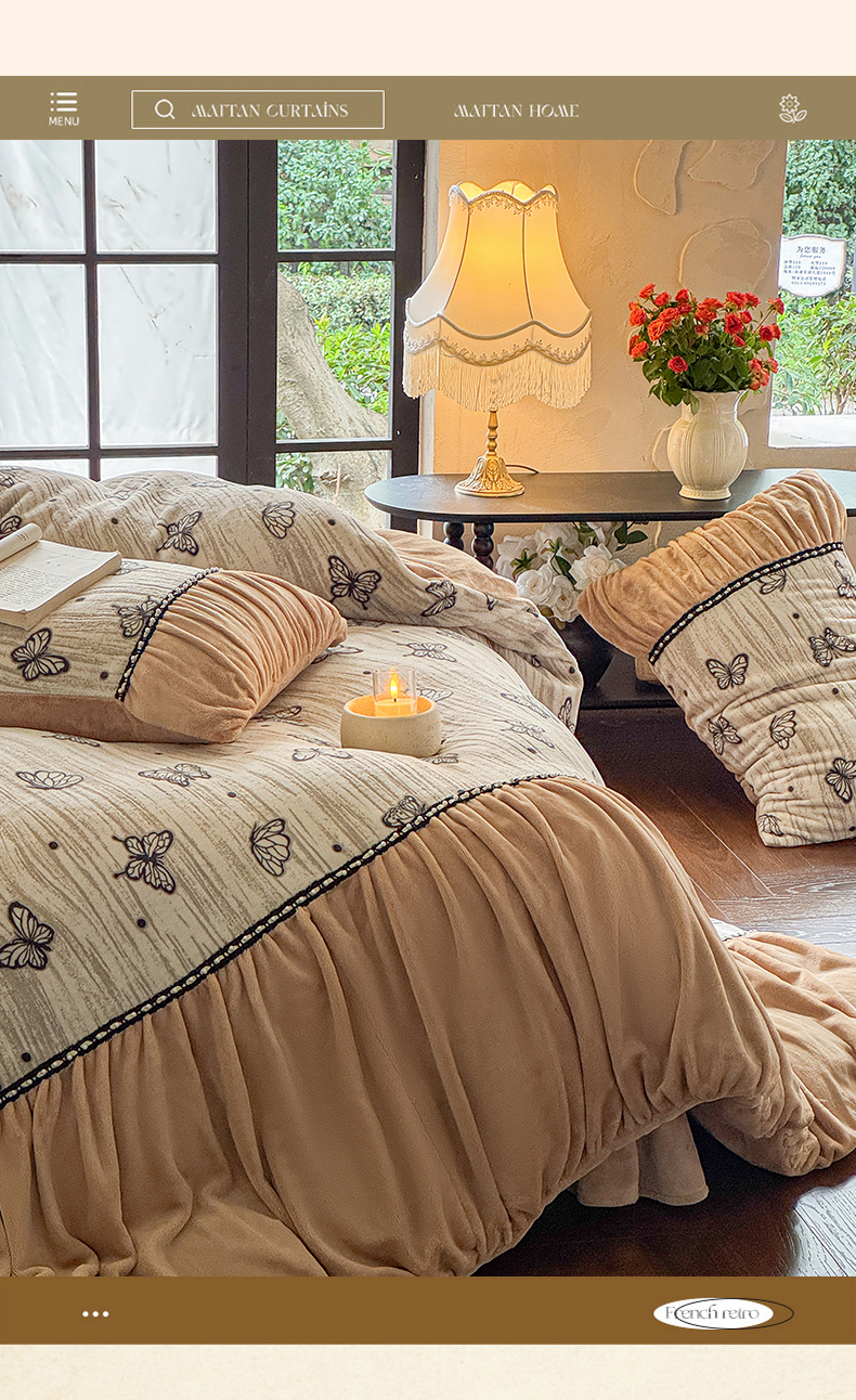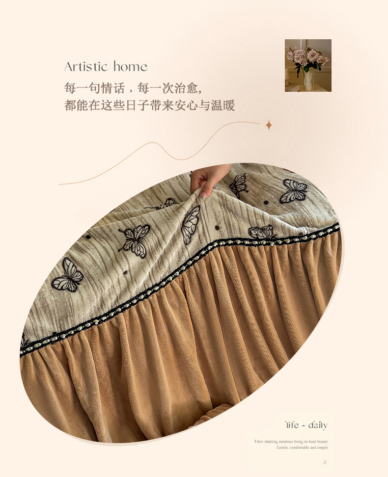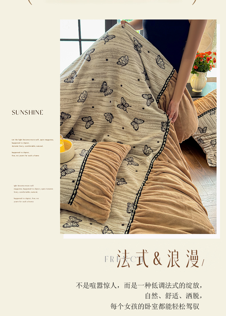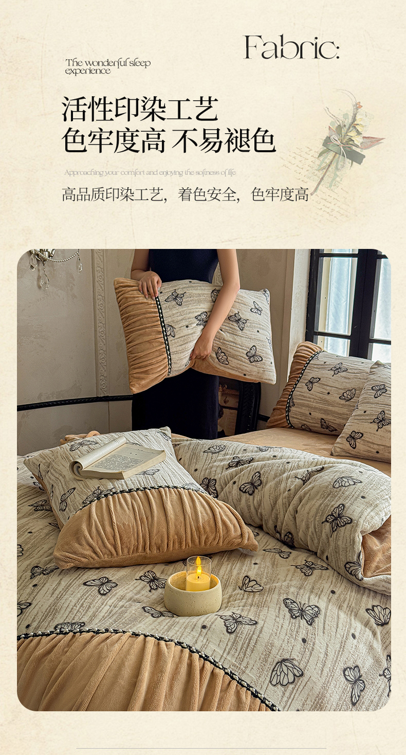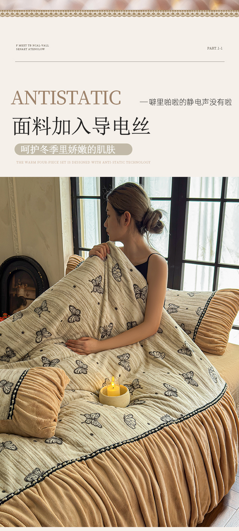 商品名称:纯优家纺 2025新款秋冬法式复古风邹邹边雕花牛奶绒四件套-蝶舞纷飞 蝶舞纷飞-奶咖