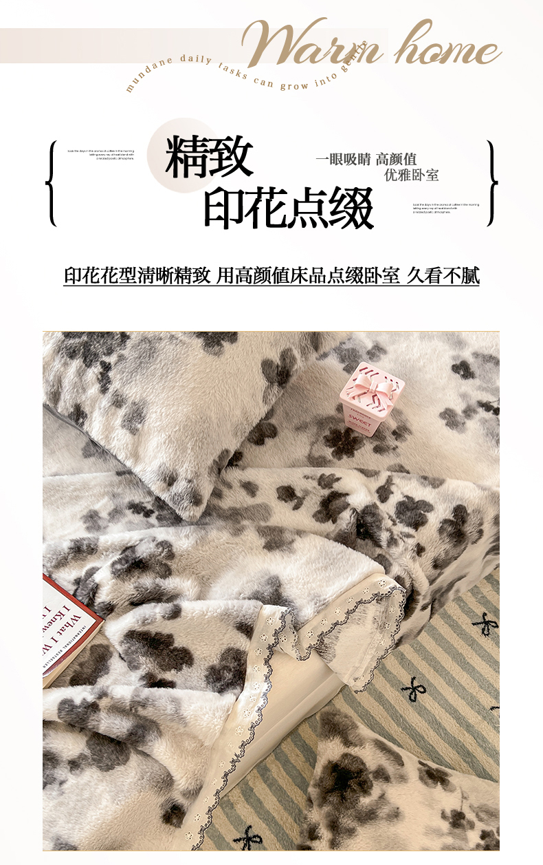 (总)妖妖家纺 2025新款加厚印花兔毛绒保暖四件套,斑斓可可,花谷,花絮语,幻蝶,萌萌奶熊,墨染,奶油泡芙,你好小狗,少女心蝴蝶结,手捧玫瑰,丝绒玫瑰,甜萌布布,夏夜梦蝶,小棕豹,心跳,雪域豹纹,英伦狗狗,月下猫舞