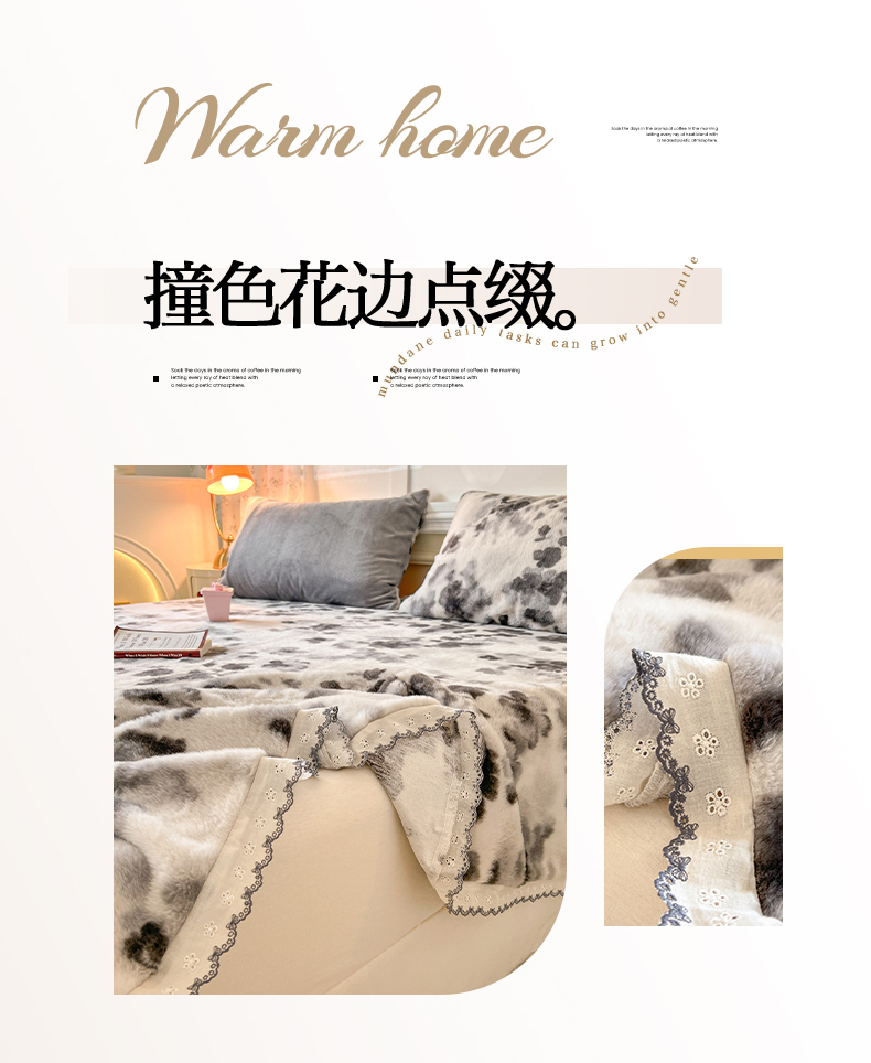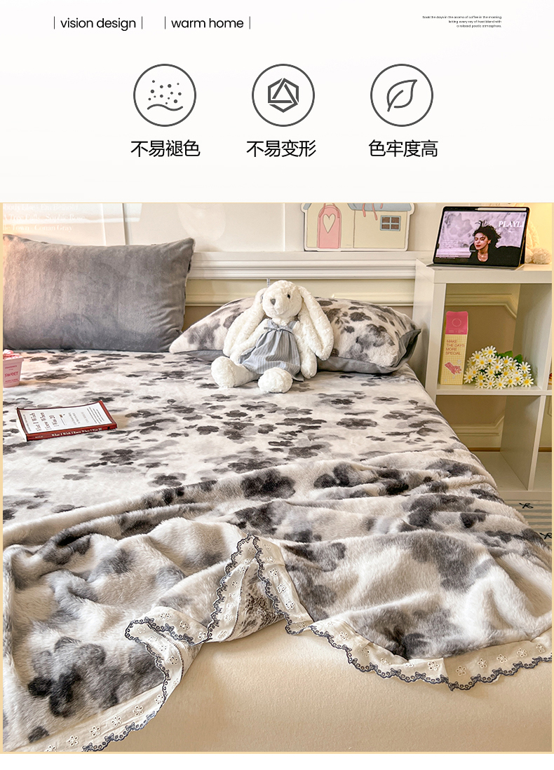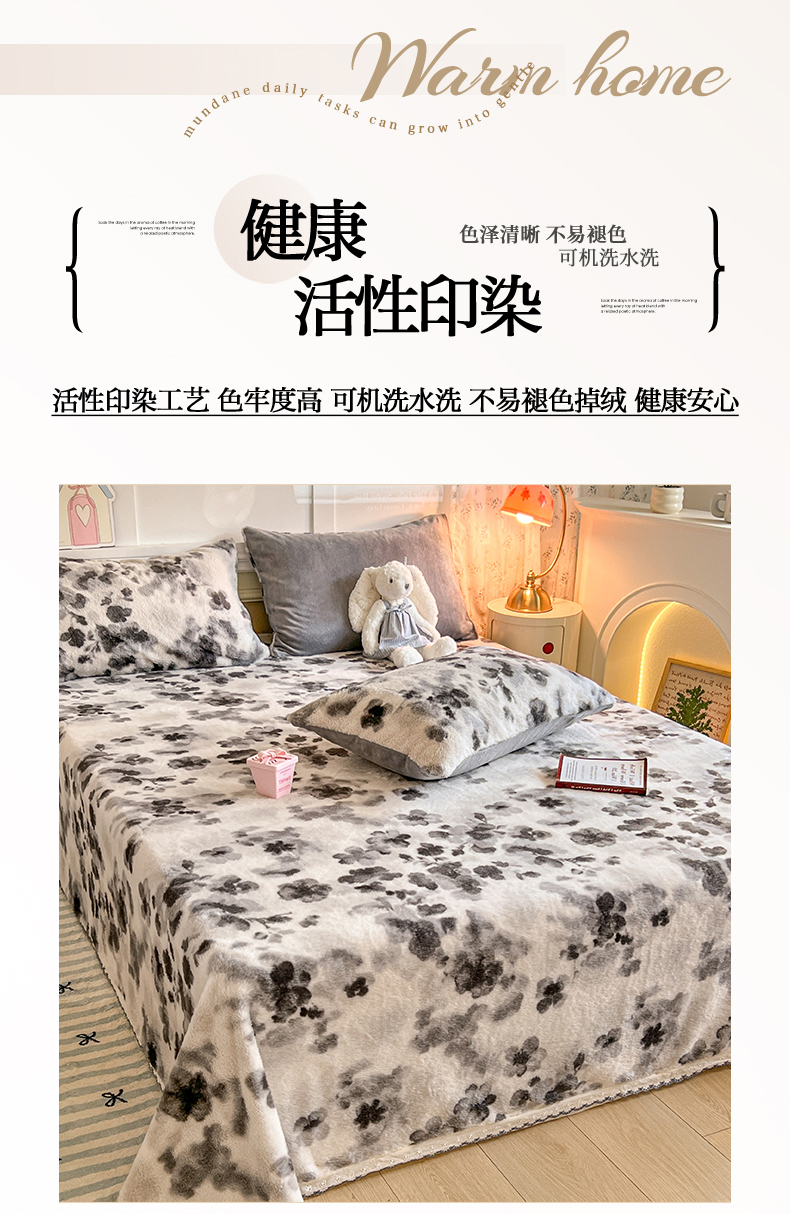 • 91家纺网 家纺一手货源 找家纺 妖妖家纺 2025新款高克重兔毛花边印花单床单 床单单件 墨痕