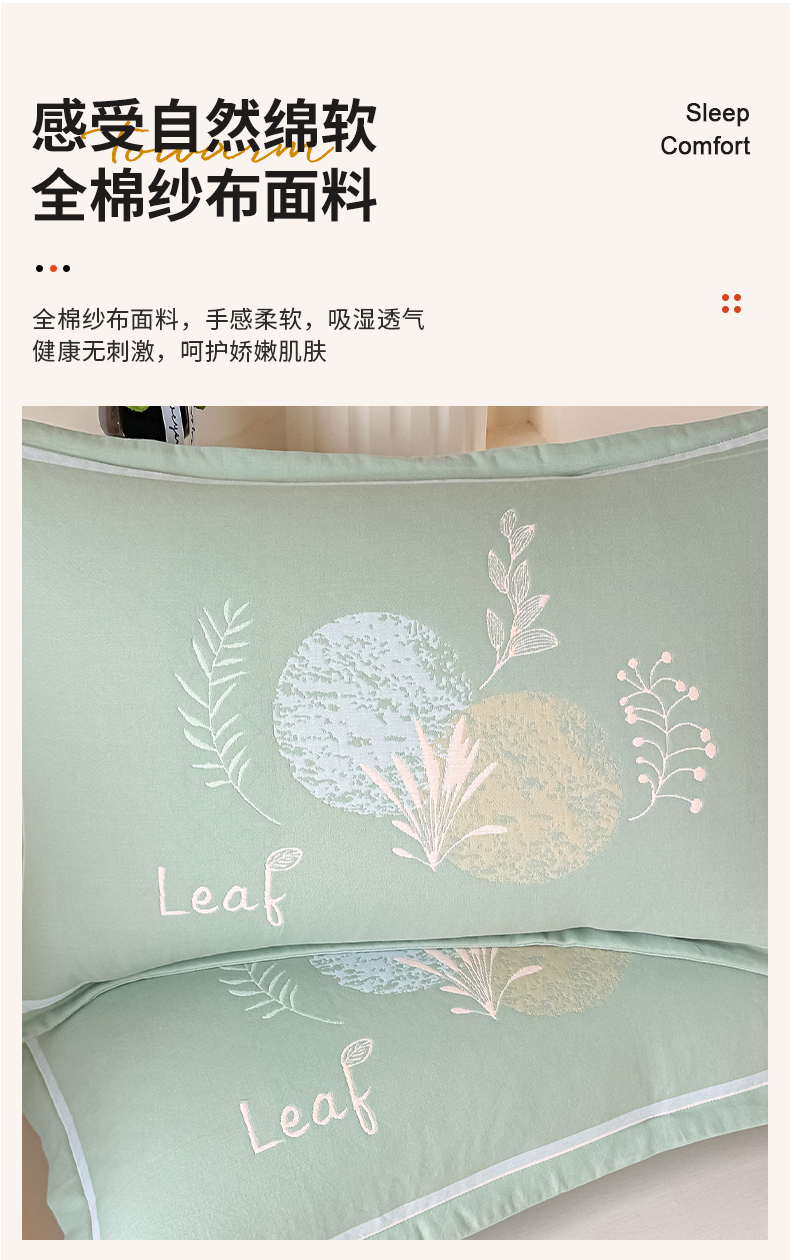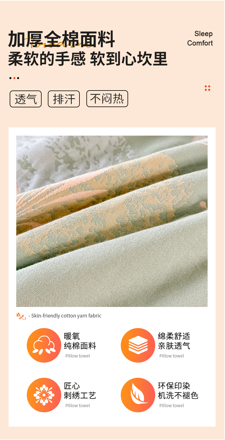 (总)沐瑟家纺 2025新款简约风多功能纱布盖毯纱布毯子毛巾被床盖沙发巾单毯枕巾枕套三件套,H本色,H橙色,H咖色,大马士革本色