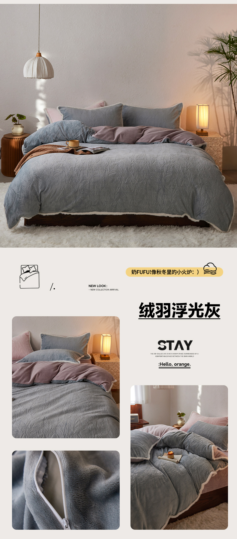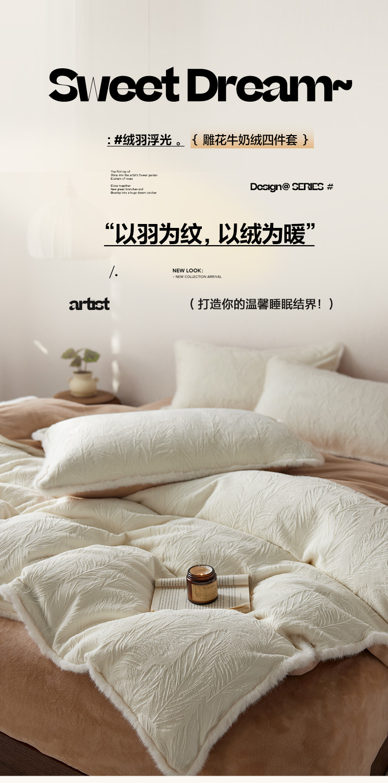 三味舒屋 2025新款雕花牛奶绒毛边款四件套 绒羽浮光 绒羽浮光-粉