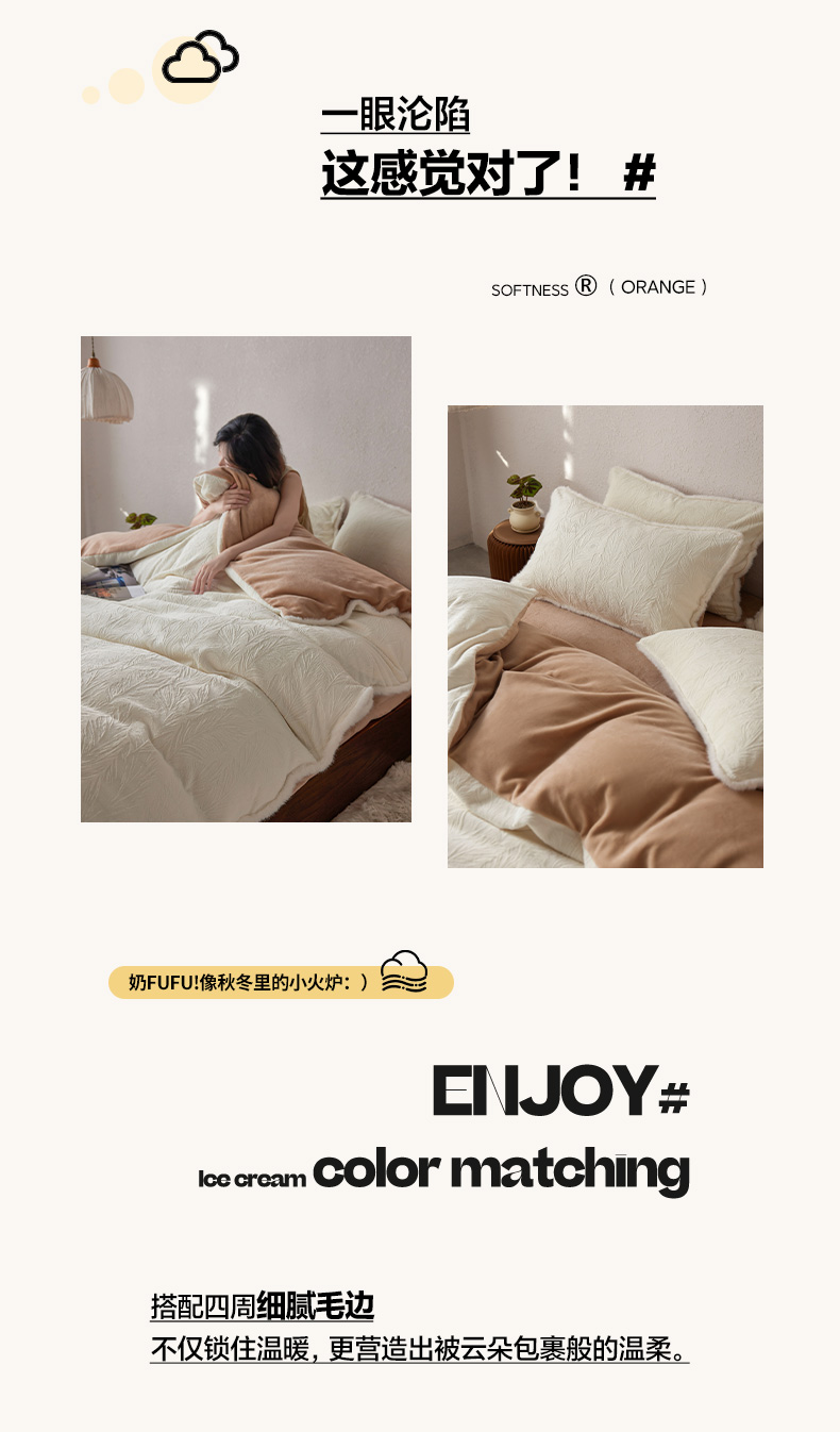 商品名称:三味舒屋 2025新款雕花牛奶绒毛边款四件套 绒羽浮光 绒羽浮光-粉