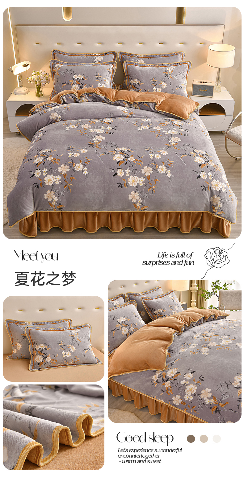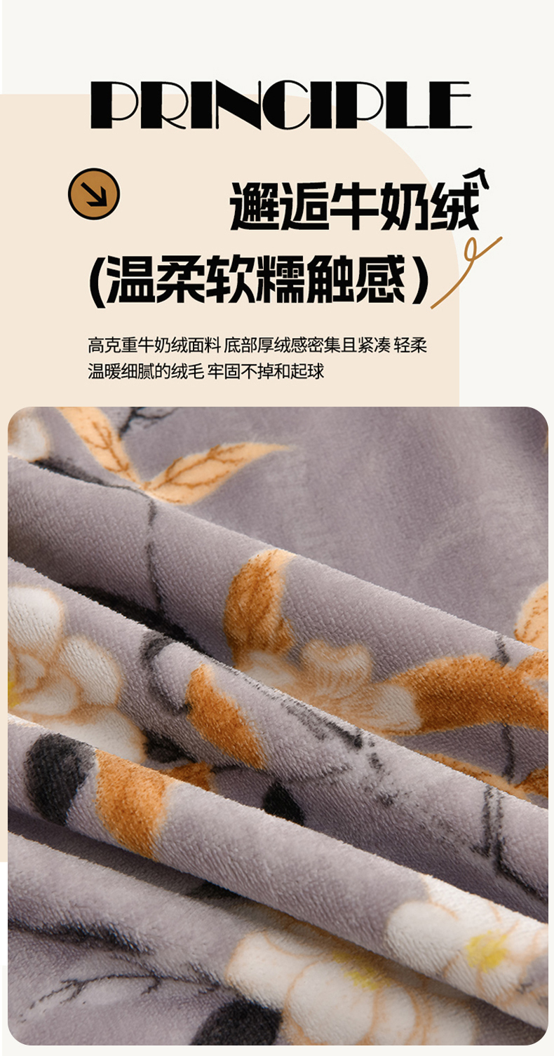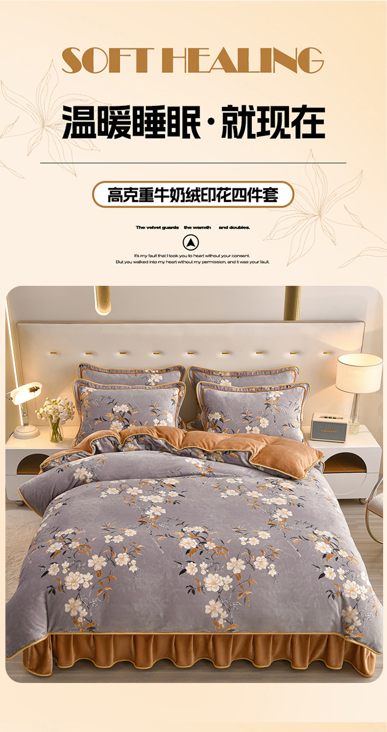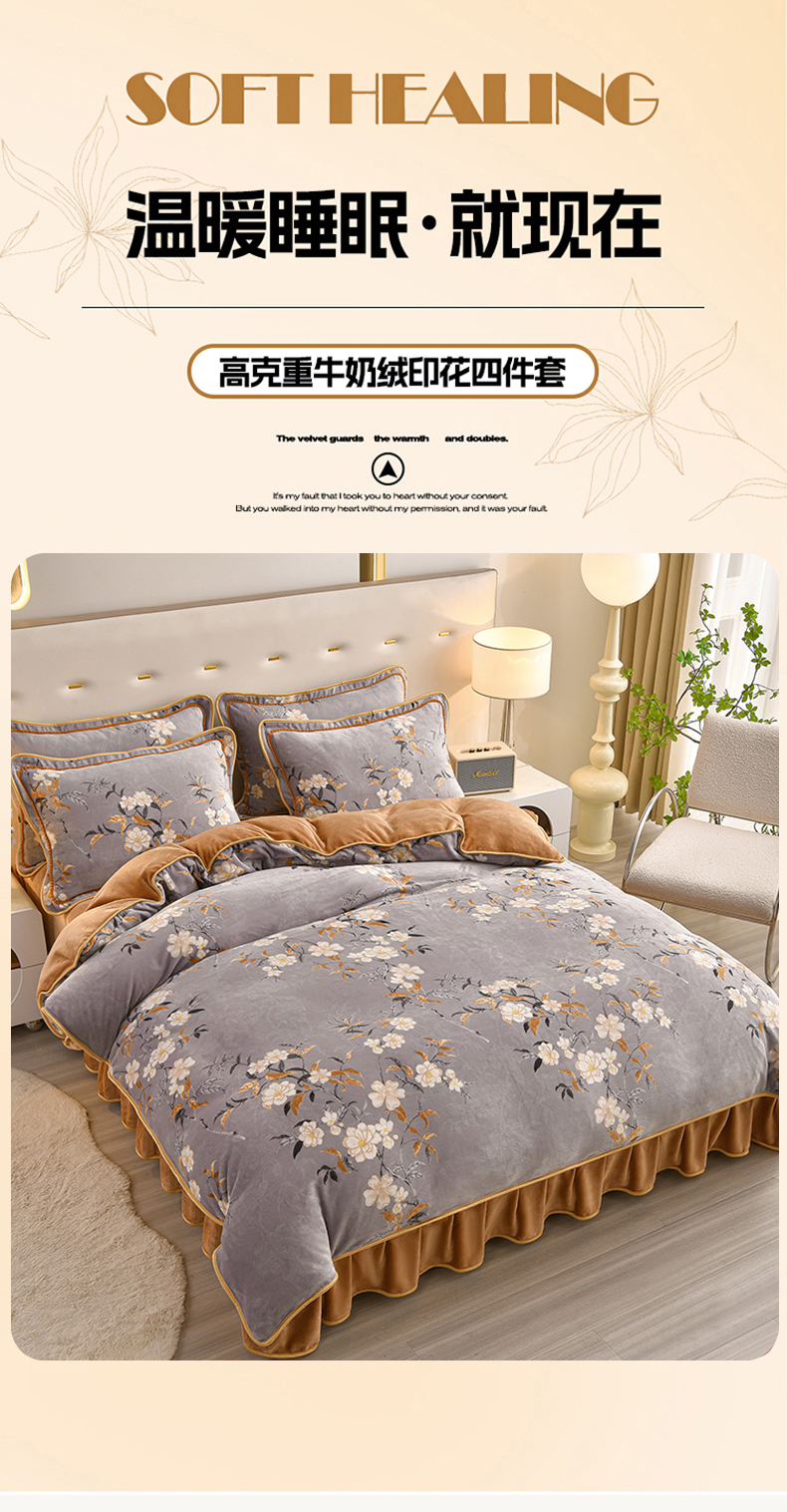 佳一 2025新款高克重8-9斤 印花牛奶绒四件套 花样情怀,花样情怀