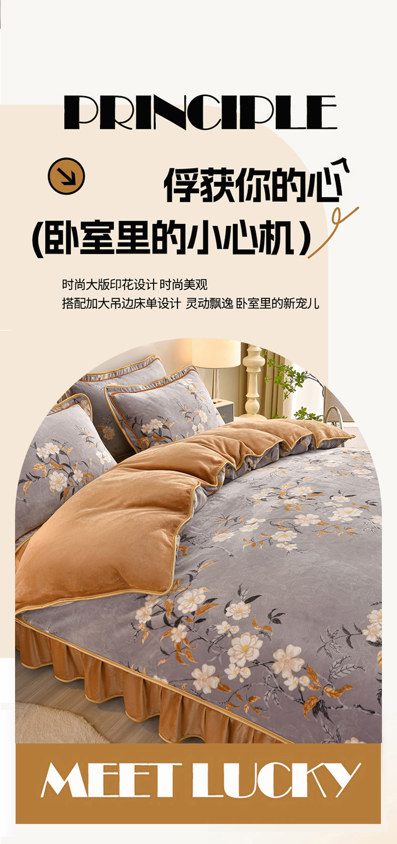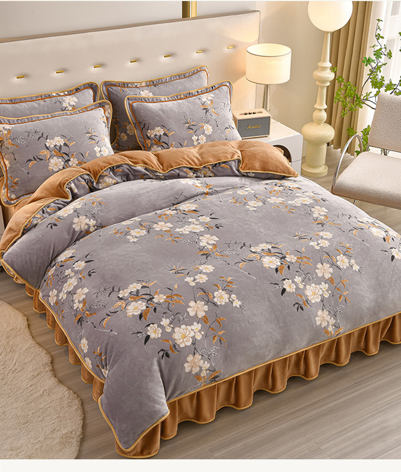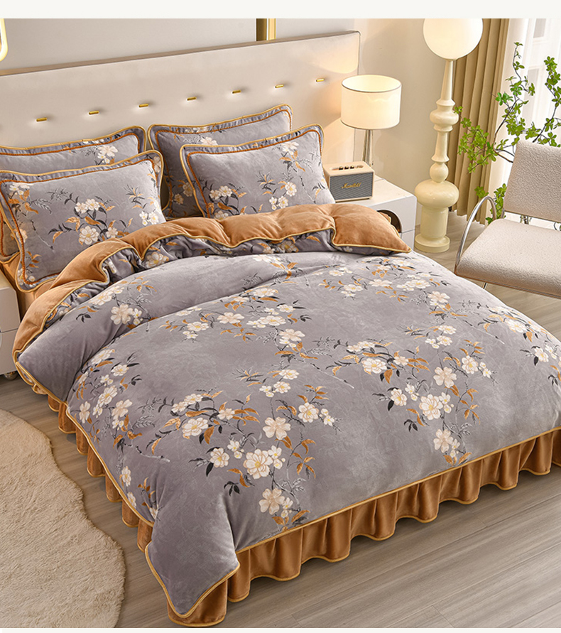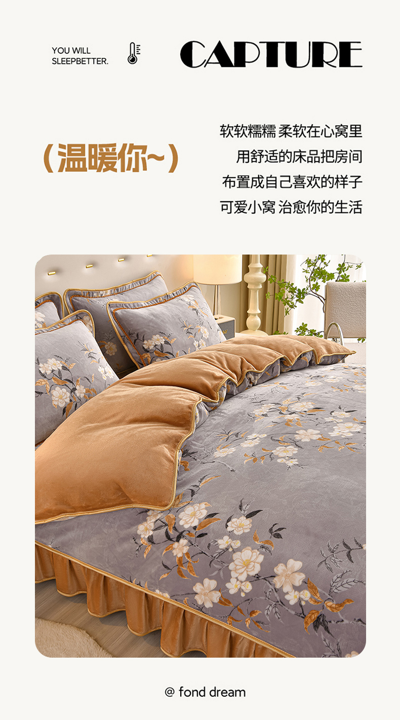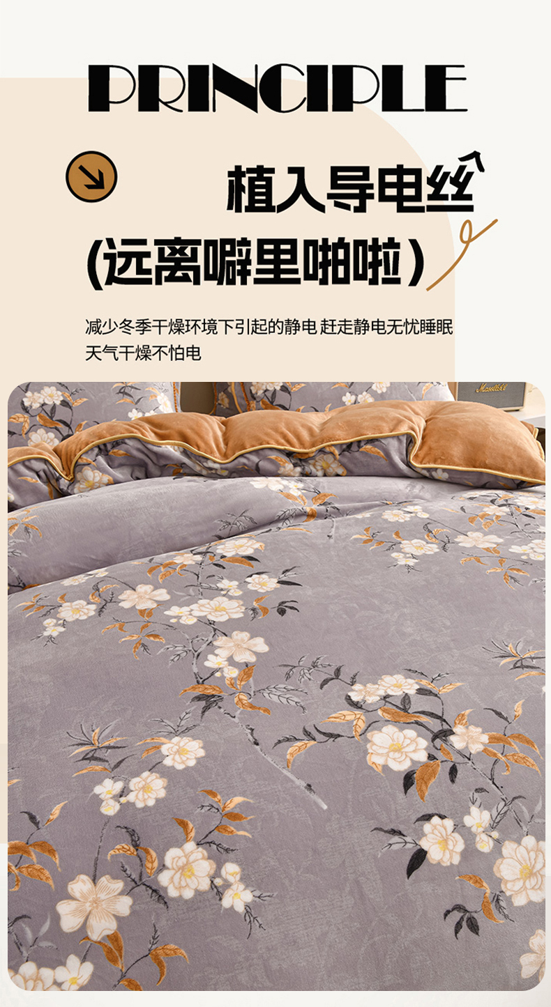 佳一 2025新款高克重8-9斤 印花牛奶绒四件套 花样情怀,花样情怀