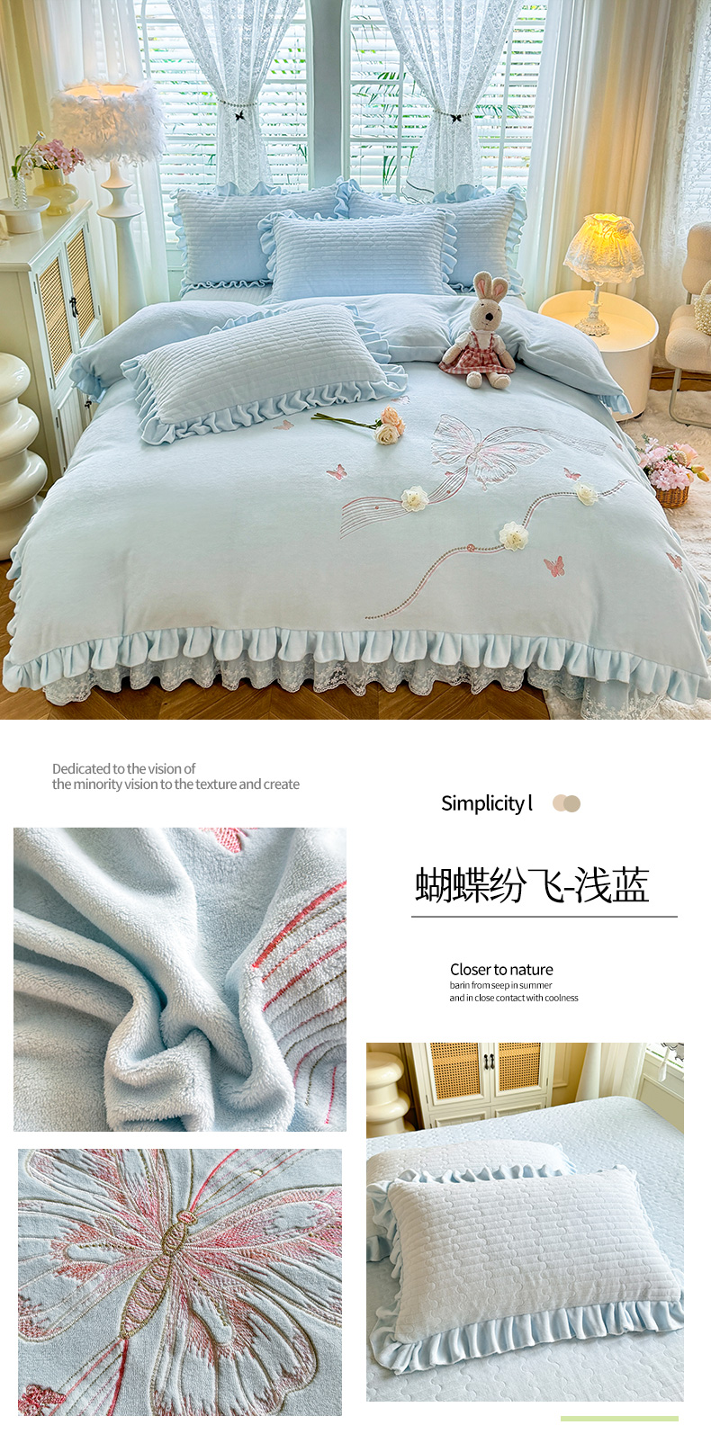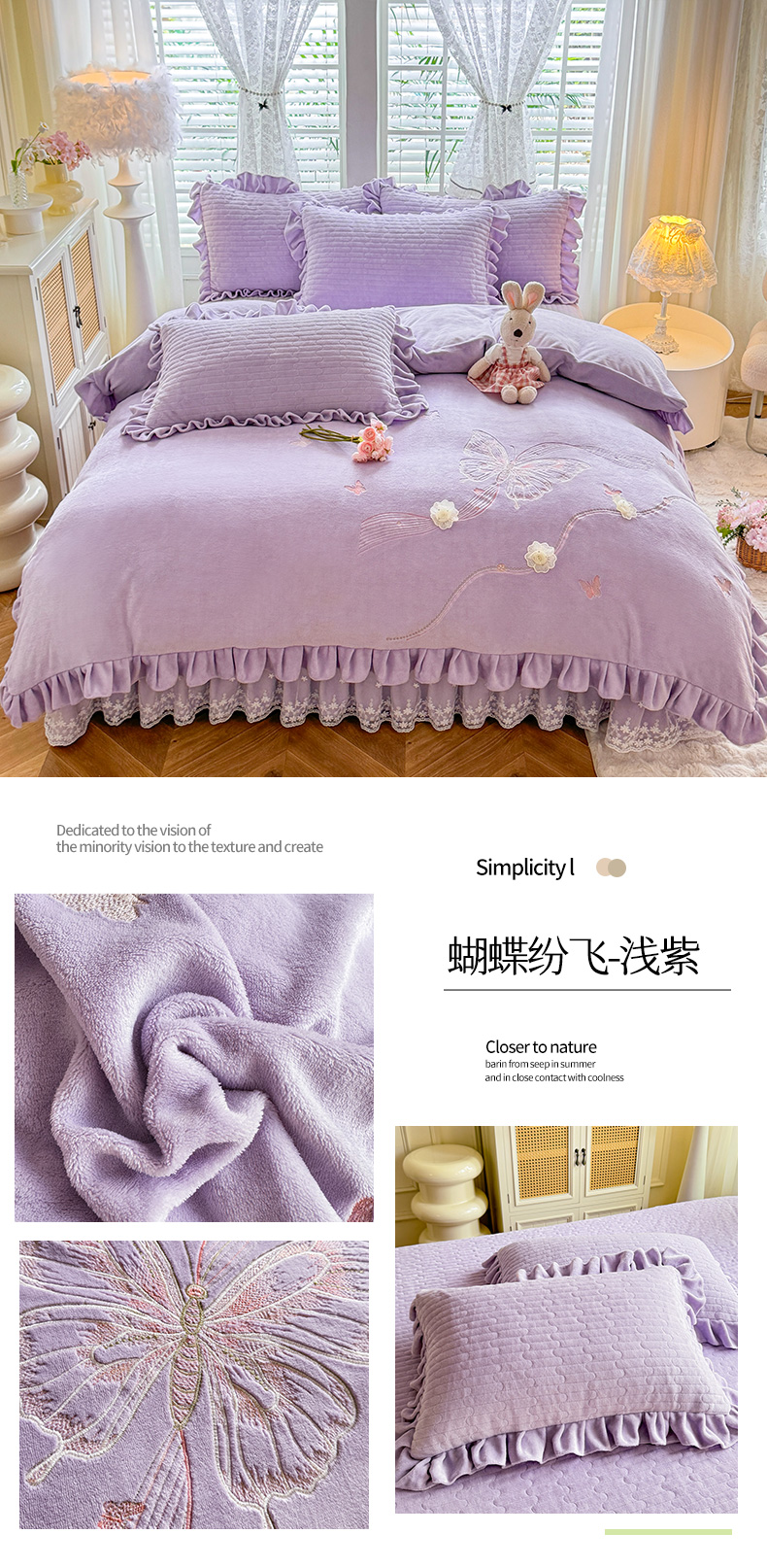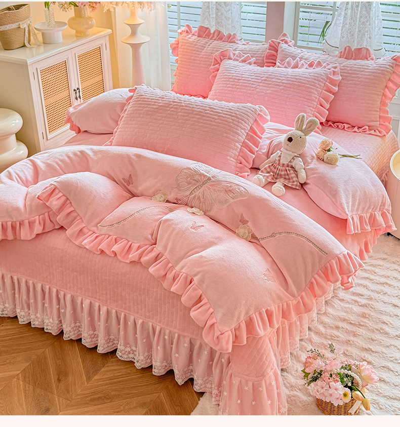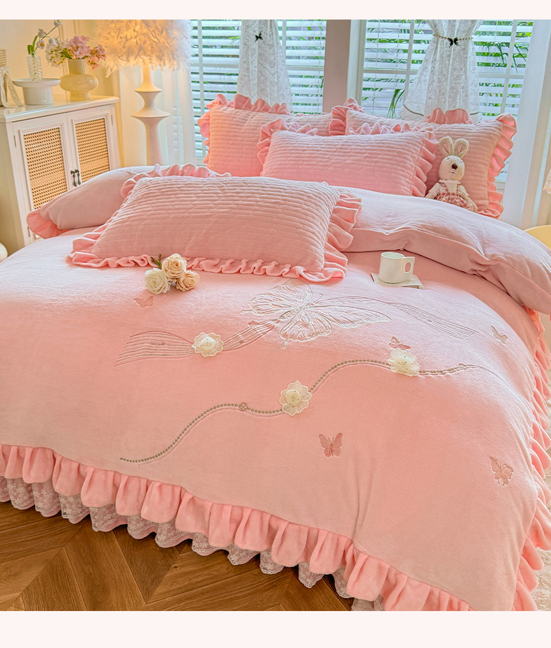 (总)唐人居 2025新款高克重牛奶绒花边夹棉四件套-蝴蝶纷飞,蝴蝶纷飞-浅蓝,蝴蝶纷飞-豆沙,蝴蝶纷飞-浅紫,蝴蝶纷飞-暖橘,蝴蝶纷飞-粉色,蝴蝶纷飞-草绿