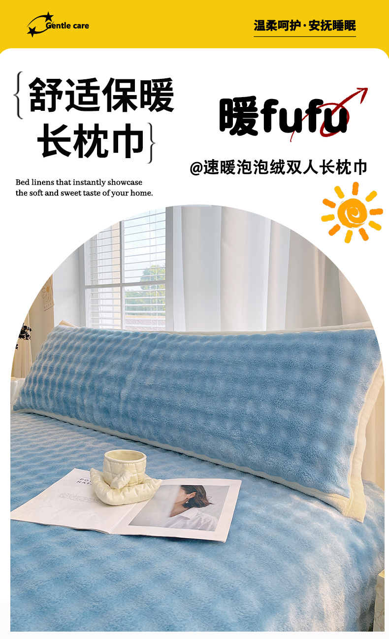 商品名称:雨彤家纺 2025新款泡泡牛奶绒长枕巾 牛奶绒枕巾-天空蓝 50*105cm(适合1米枕头)