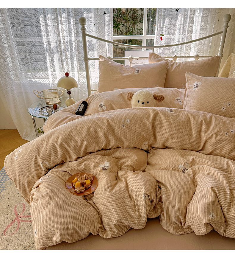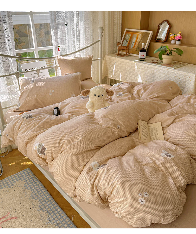 当前位置: 91家纺网 > 商品网购 > 床品套件 > 四件套 > 水洗棉四件套 > 暖芯优选 2025新款加厚爆款小布袋韩国古法水洗棉床单学生三件套床笠款四件套 爱丽丝