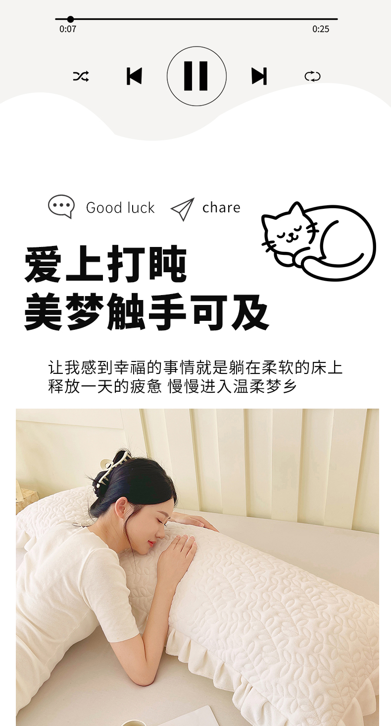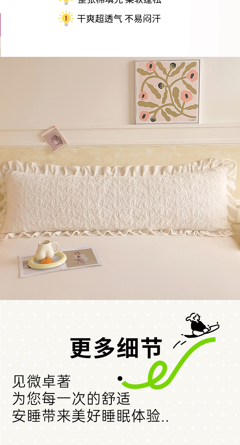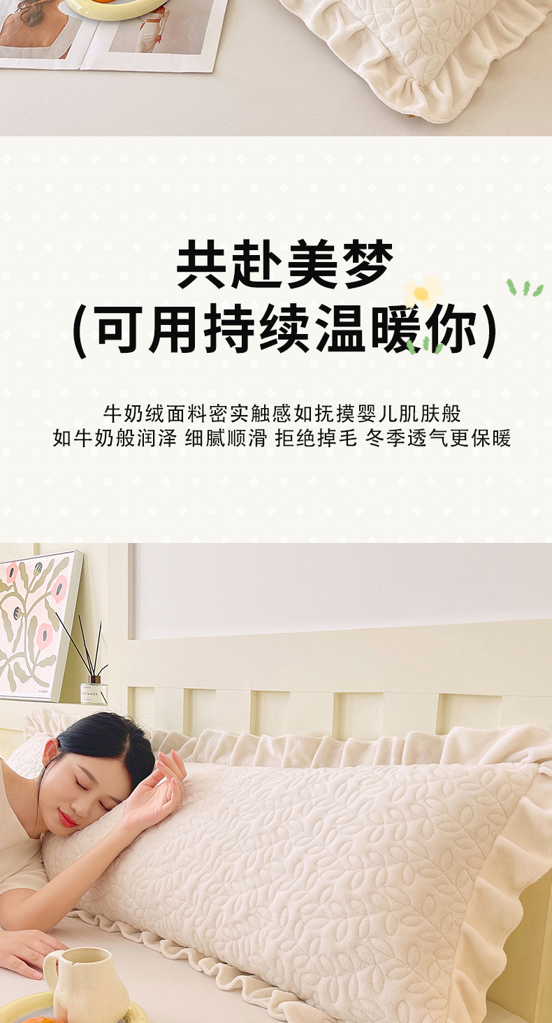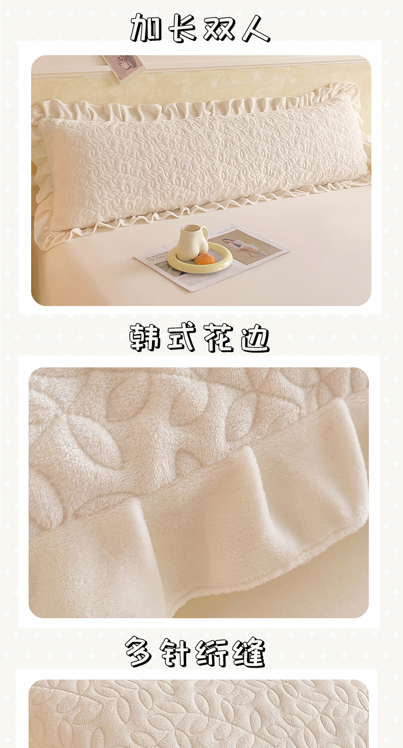 商品名称:雨彤家纺 2025新款牛奶绒花边夹棉长枕套 幸运草-奶白