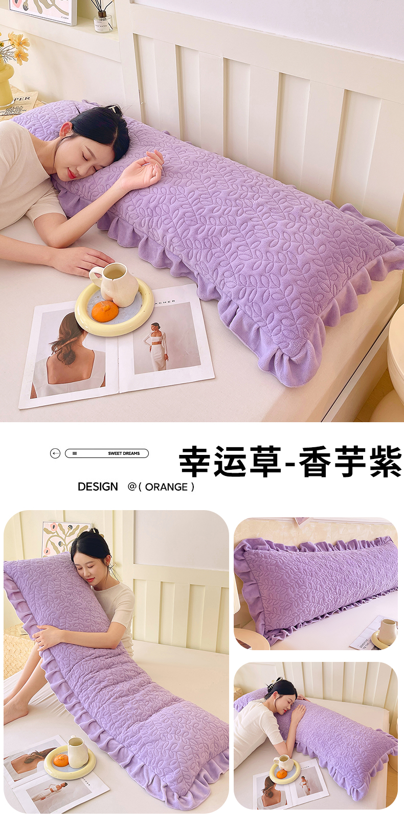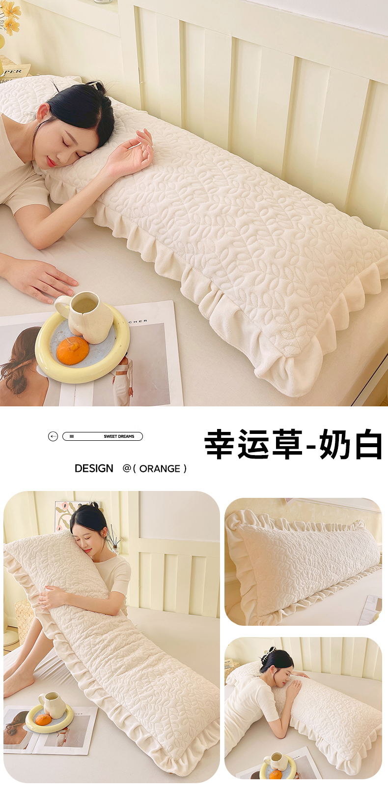 (总)雨彤家纺 2025新款牛奶绒花边夹棉长枕套,幸运草-淡粉,幸运草-鹅黄,幸运草-高级灰,幸运草-经典咖,幸运草-桔色,幸运草-奶白,幸运草-嫩绿,幸运草-雾兰,幸运草-香芋紫,幸运草-银灰