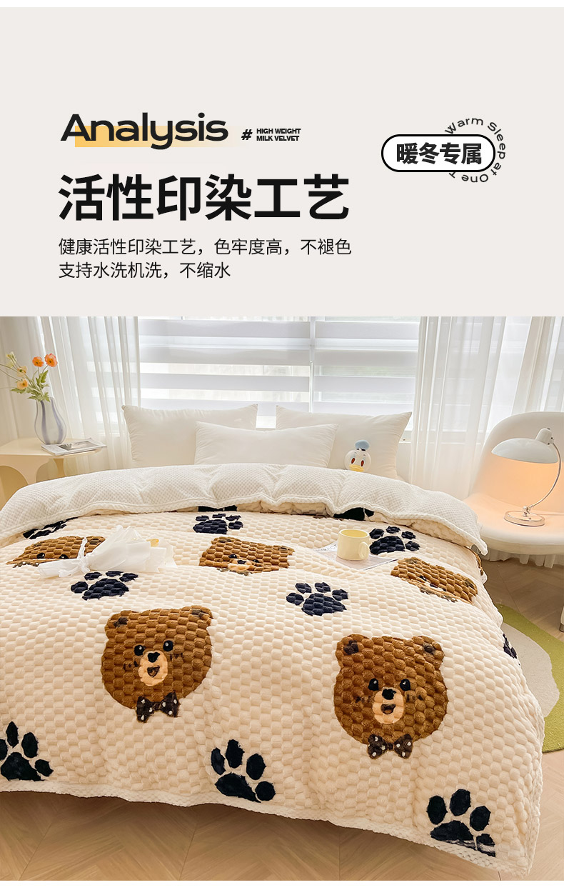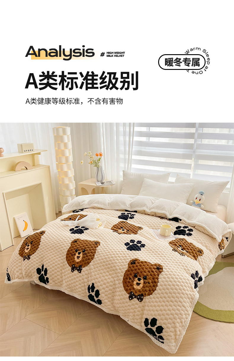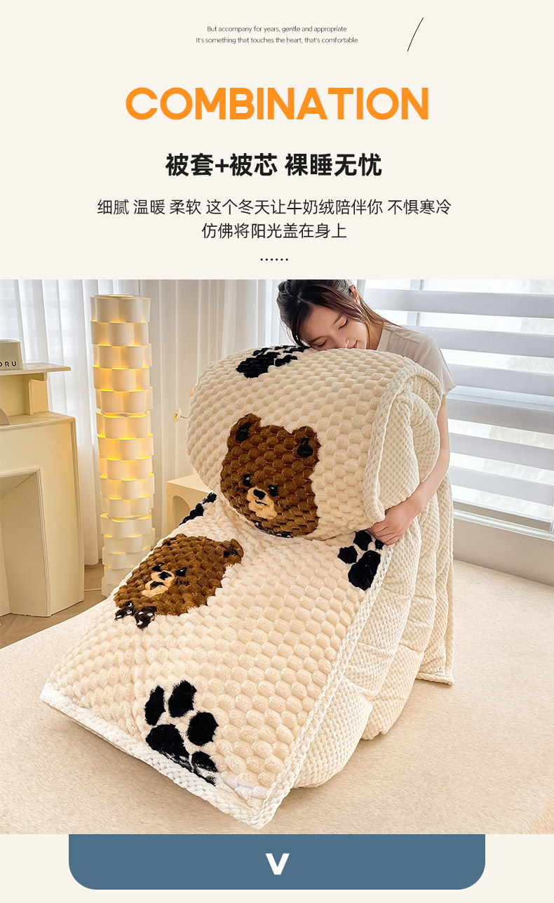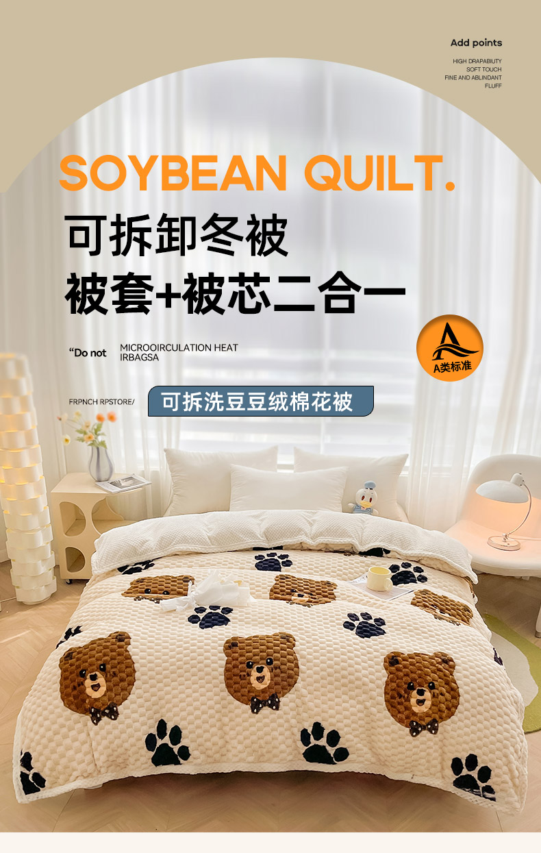 • 91家纺网 家纺一手货源 找家纺 熙宴家纺 2025新款可拆卸冬被被套+被芯二合一可拆洗豆豆绒棉花被子被芯 大脚熊