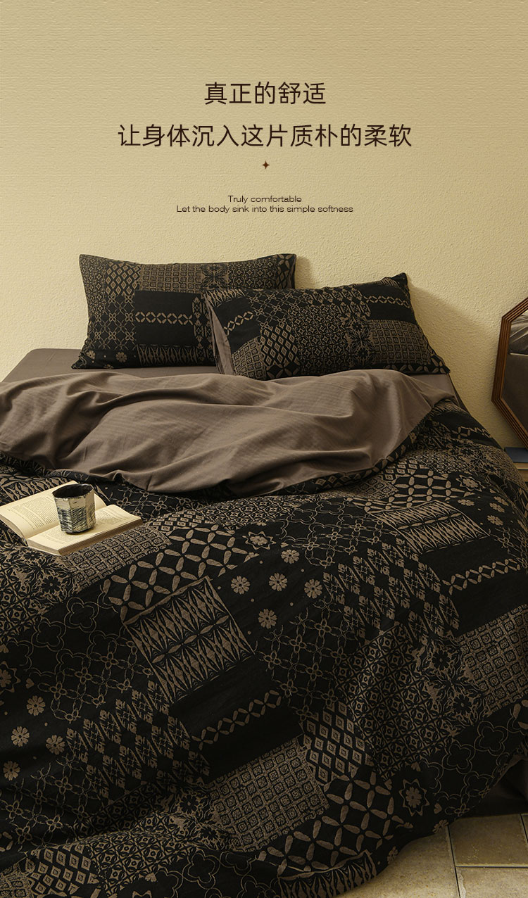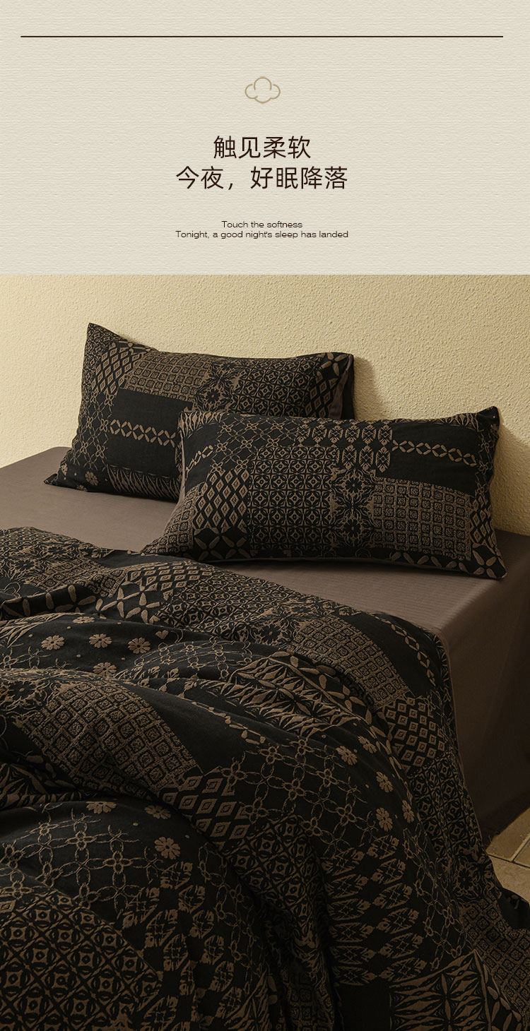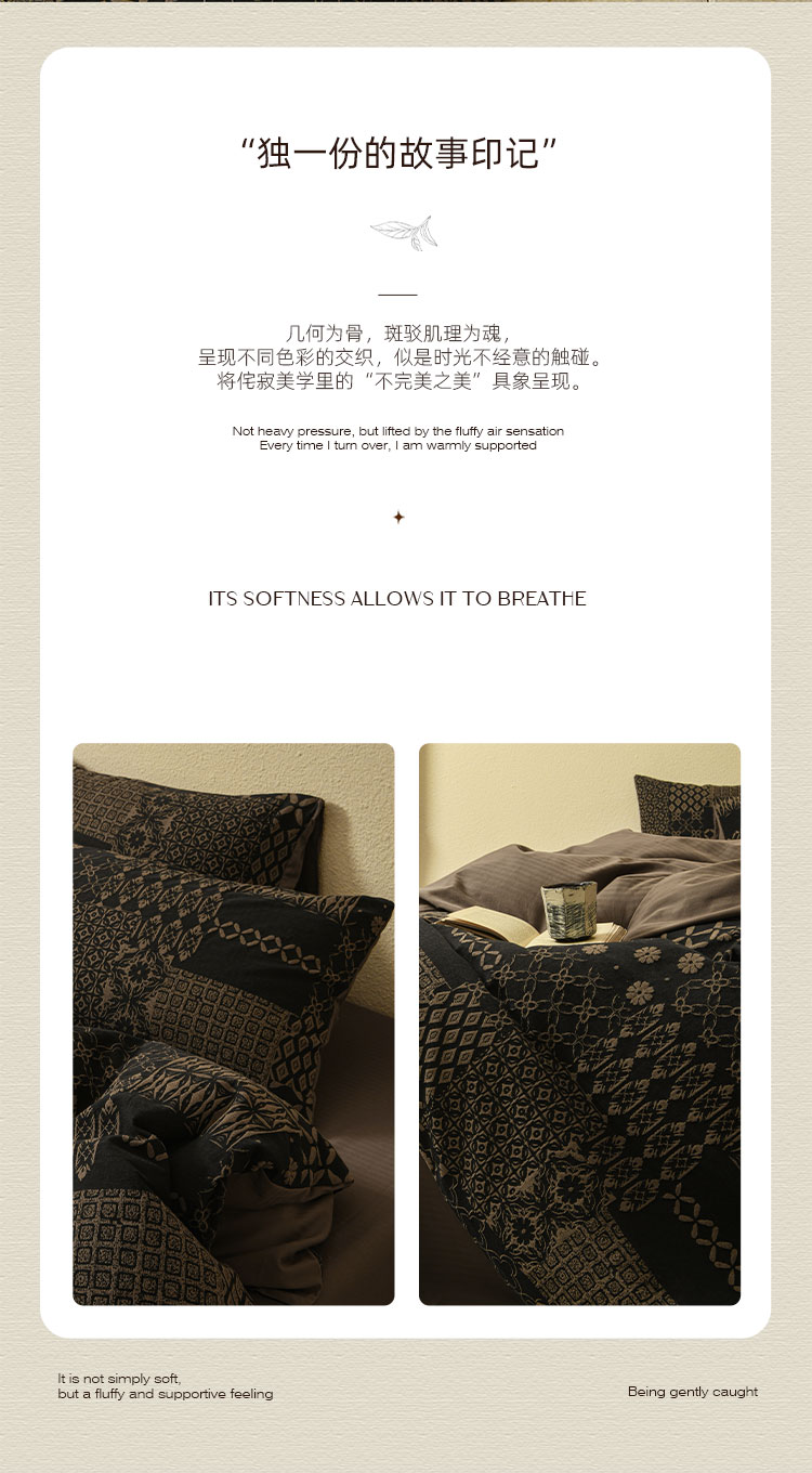 (总)山舍家居 2026新款全棉纯棉双层皱皱纱四件套,豹你入怀,芷与芷安