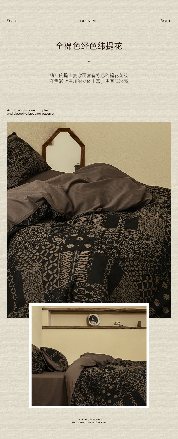 山舍家居 2025新款全棉色织提花磨毛四件套-霍德华庄园(提供买家秀) 霍德华庄园-咖
