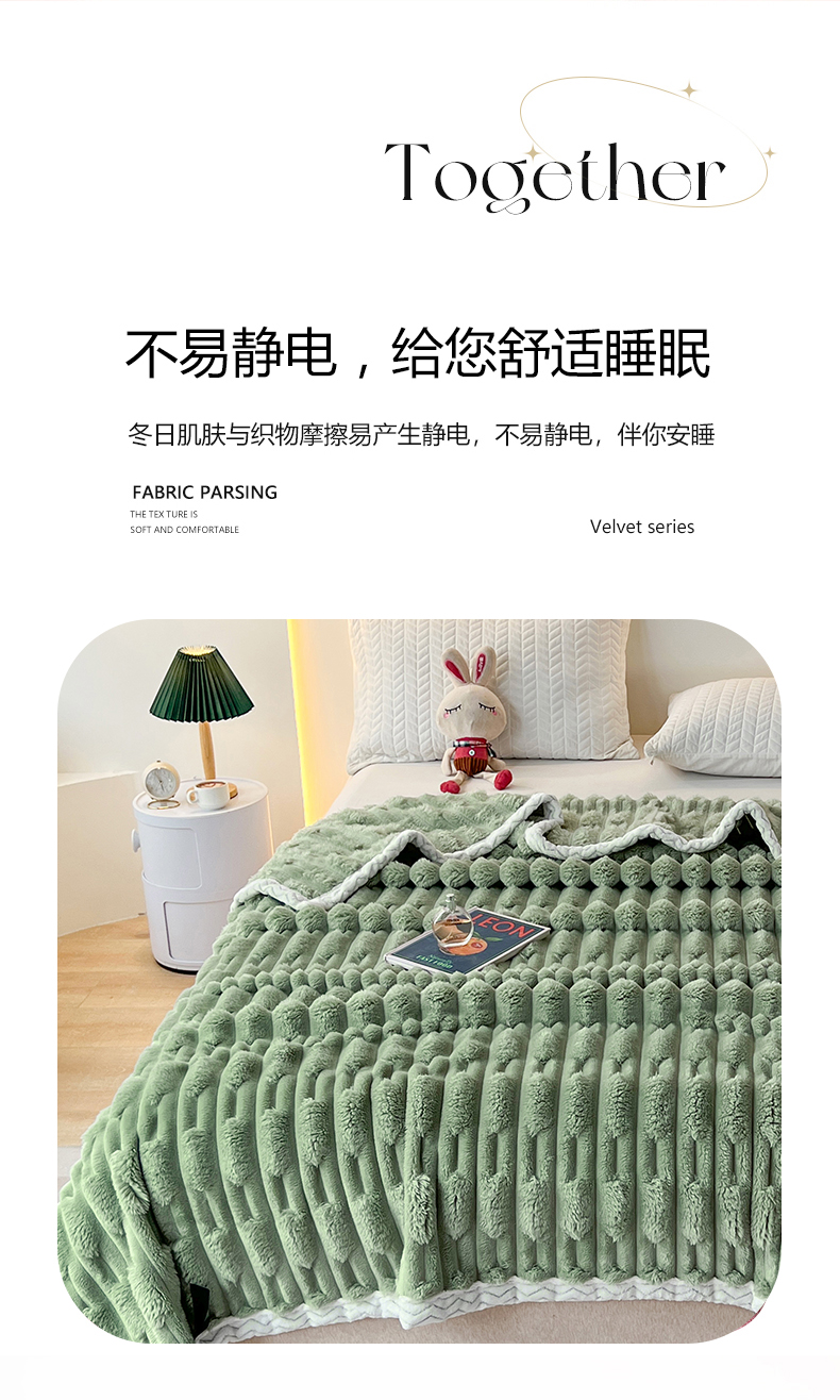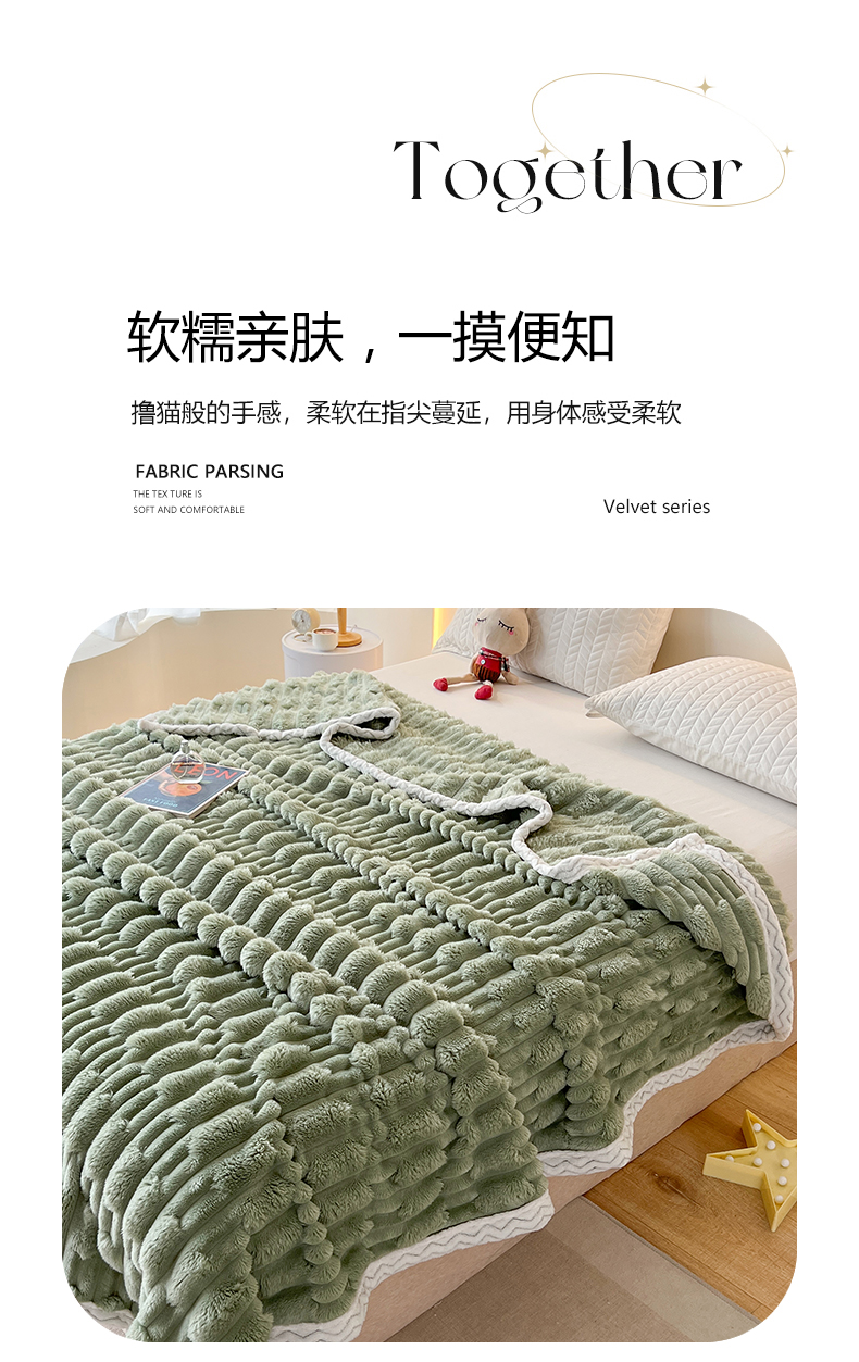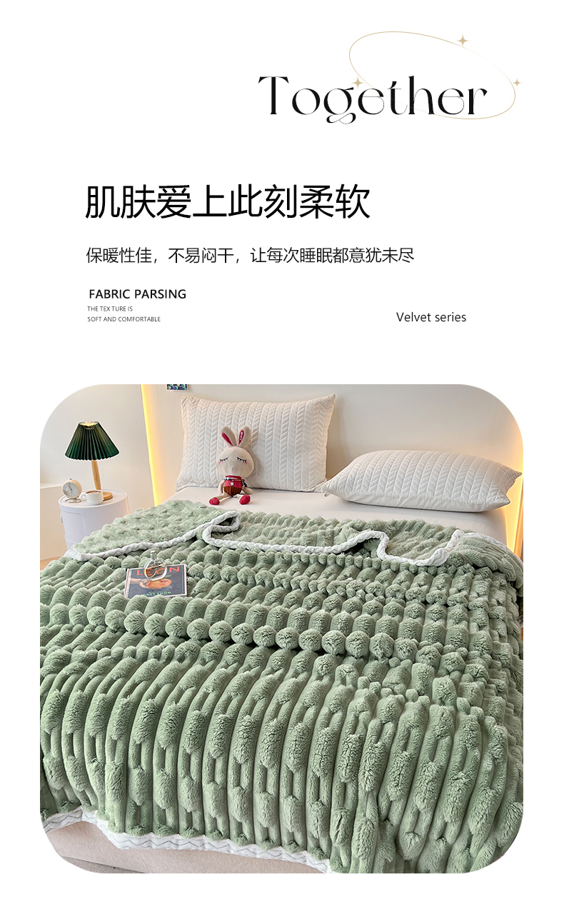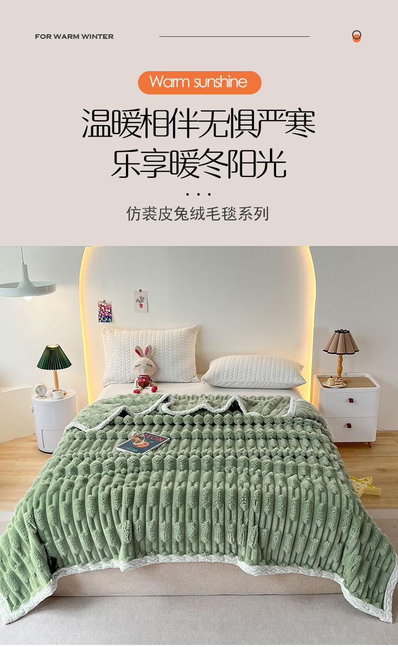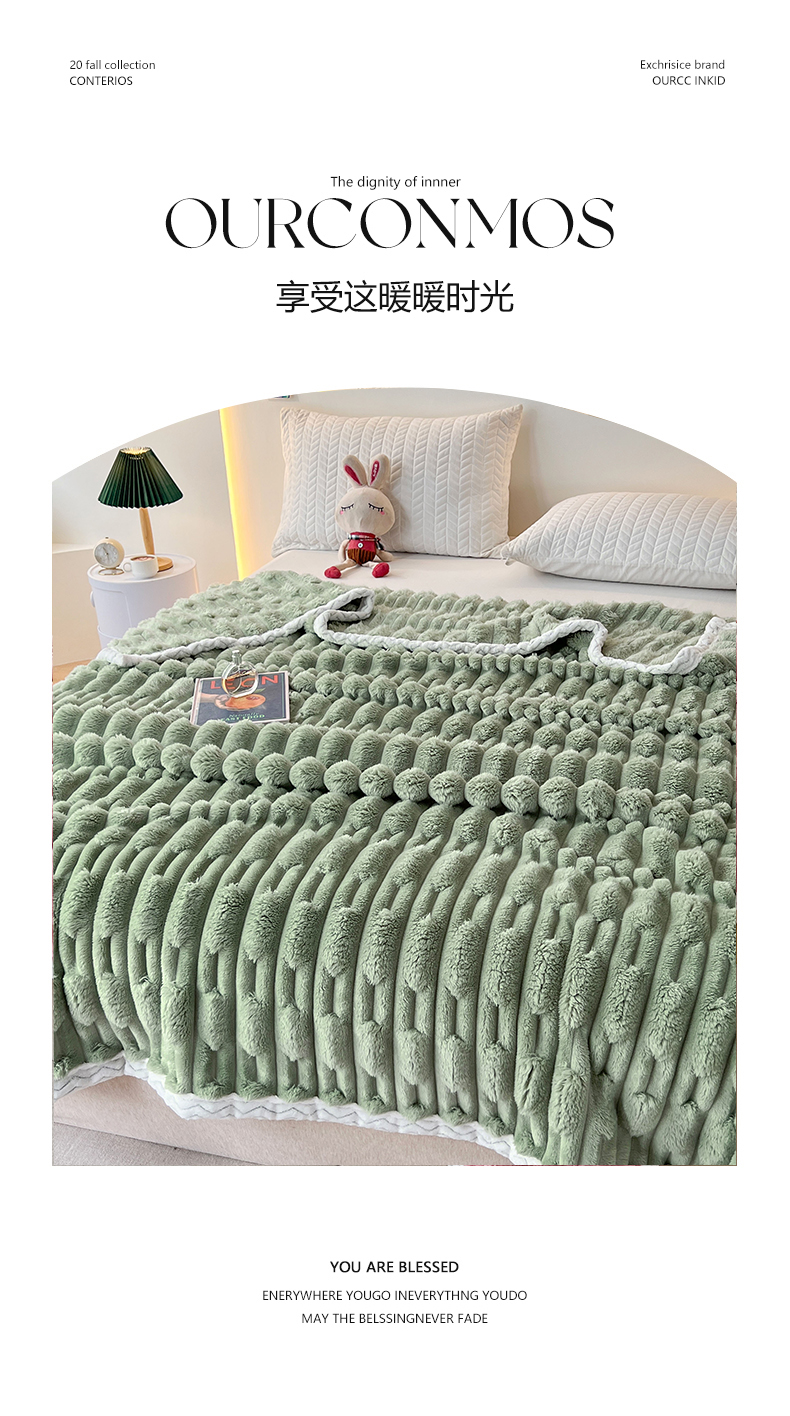 yyds网供 2025新款超柔仿裘皮兔绒竹节绒毛毯高克重盖毯沙发毯冬季多功能绒毯子 竹节绒-抹茶绿