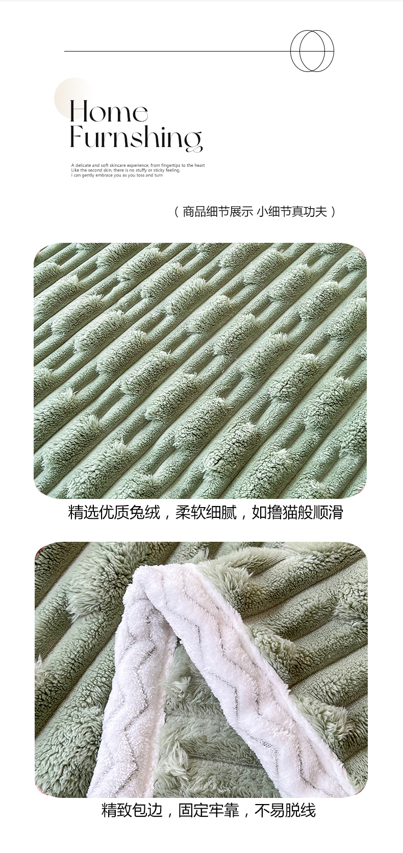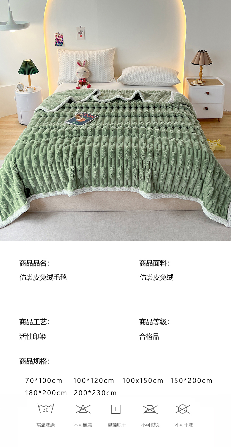 商品名称:yyds网供 2025新款超柔仿裘皮兔绒竹节绒毛毯高克重盖毯沙发毯冬季多功能绒毯子 竹节绒-抹茶绿