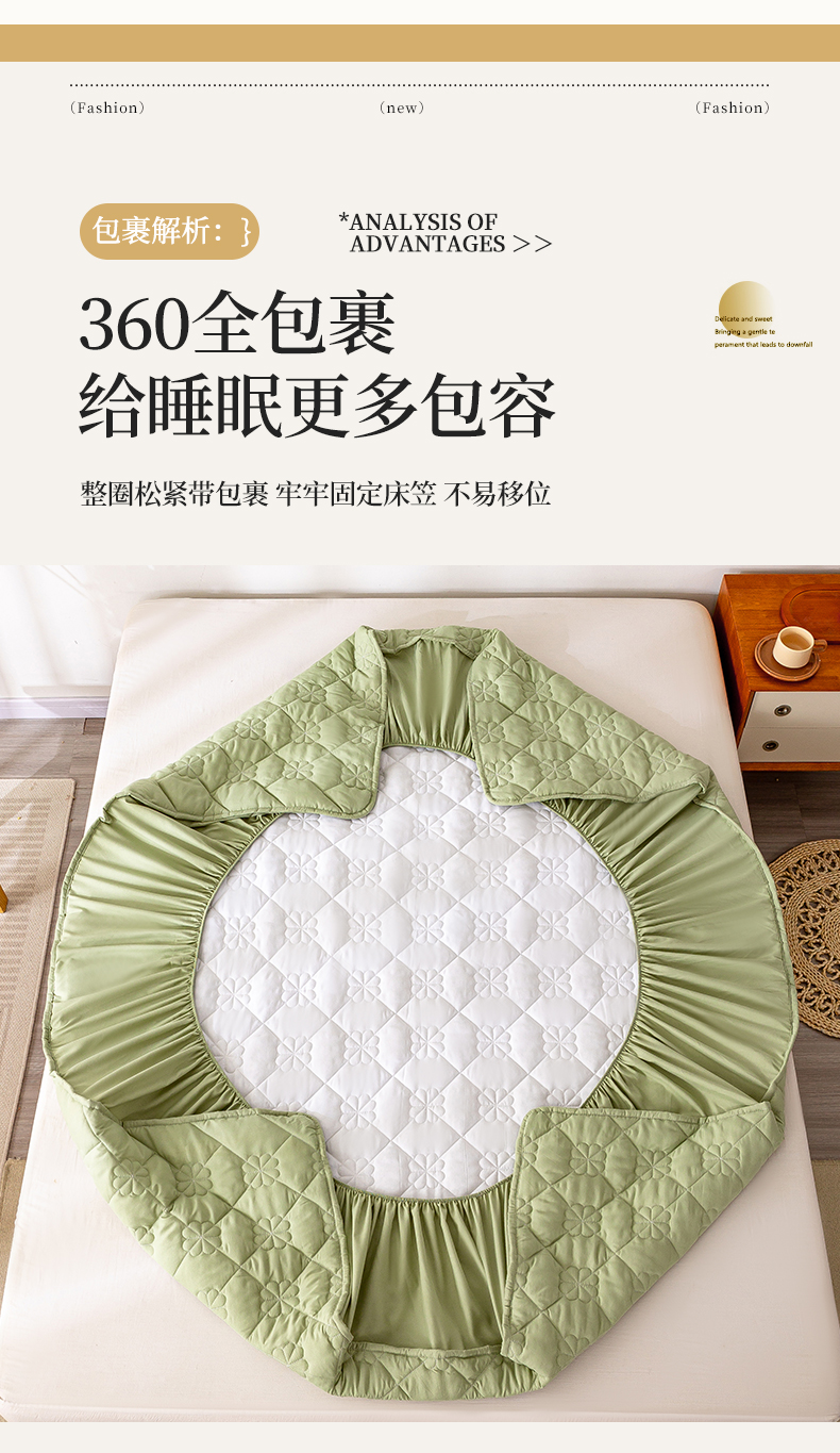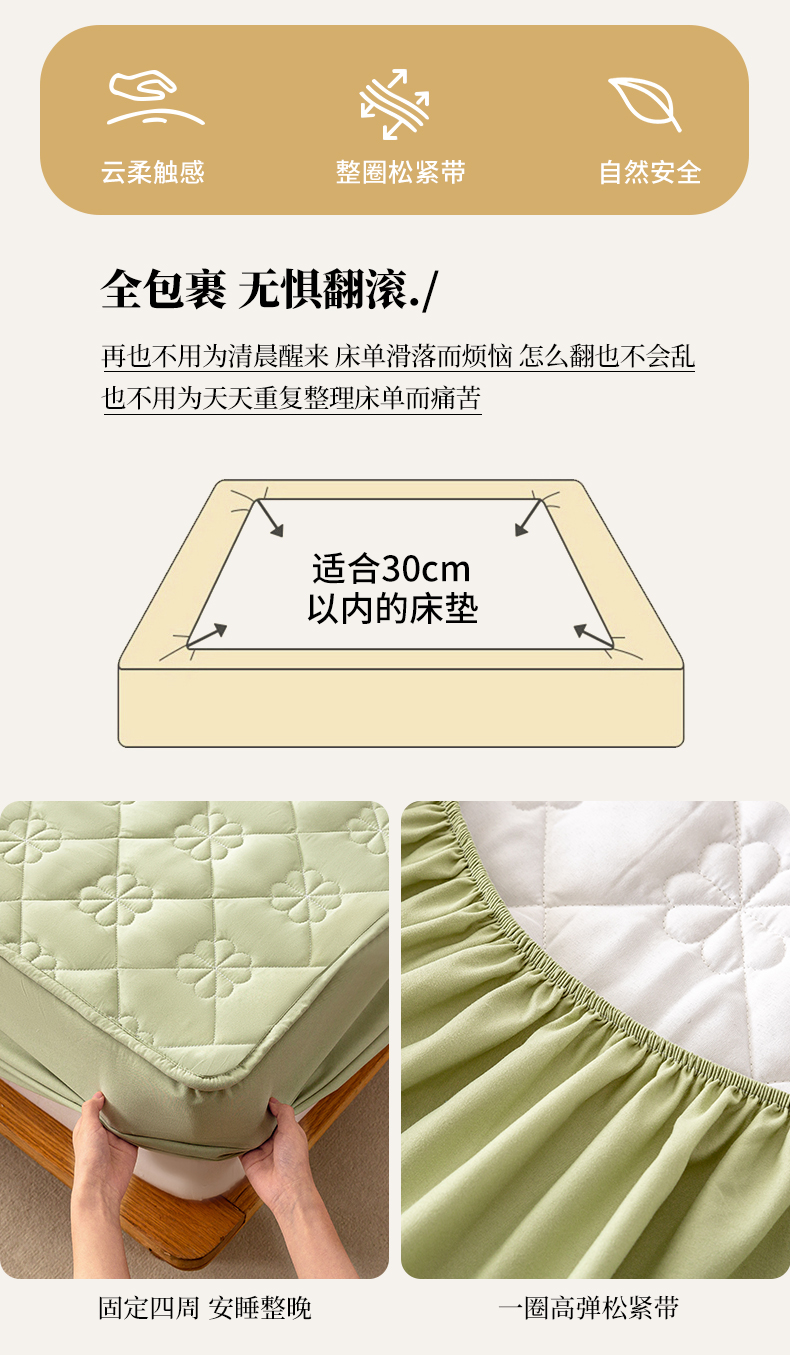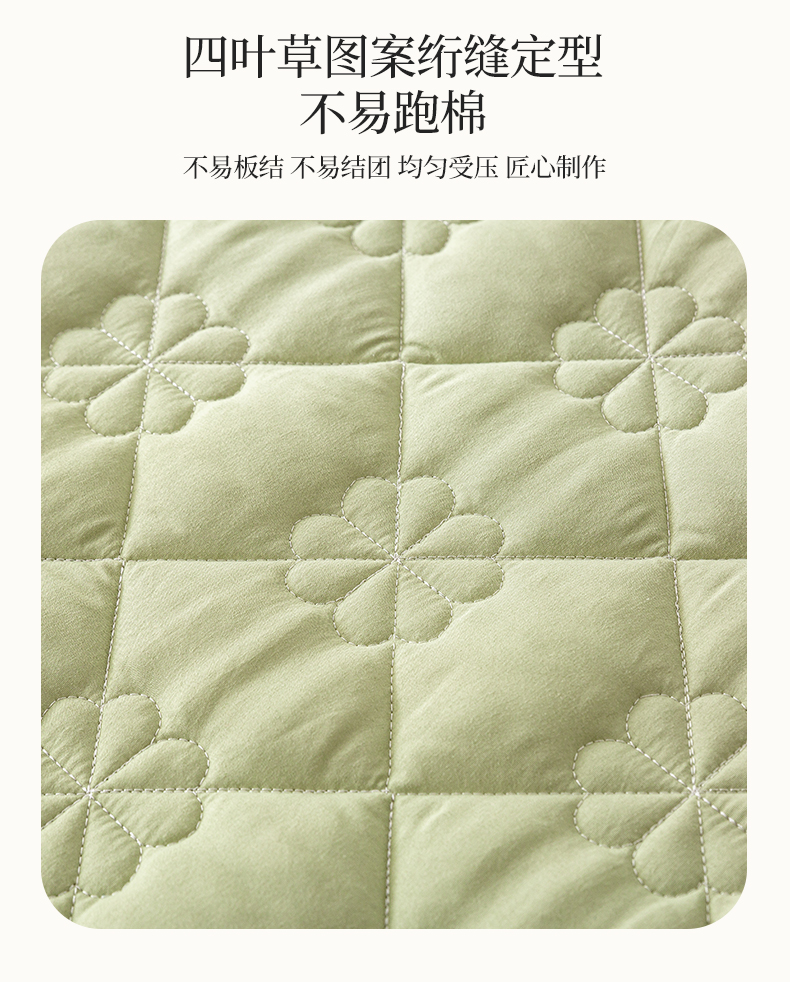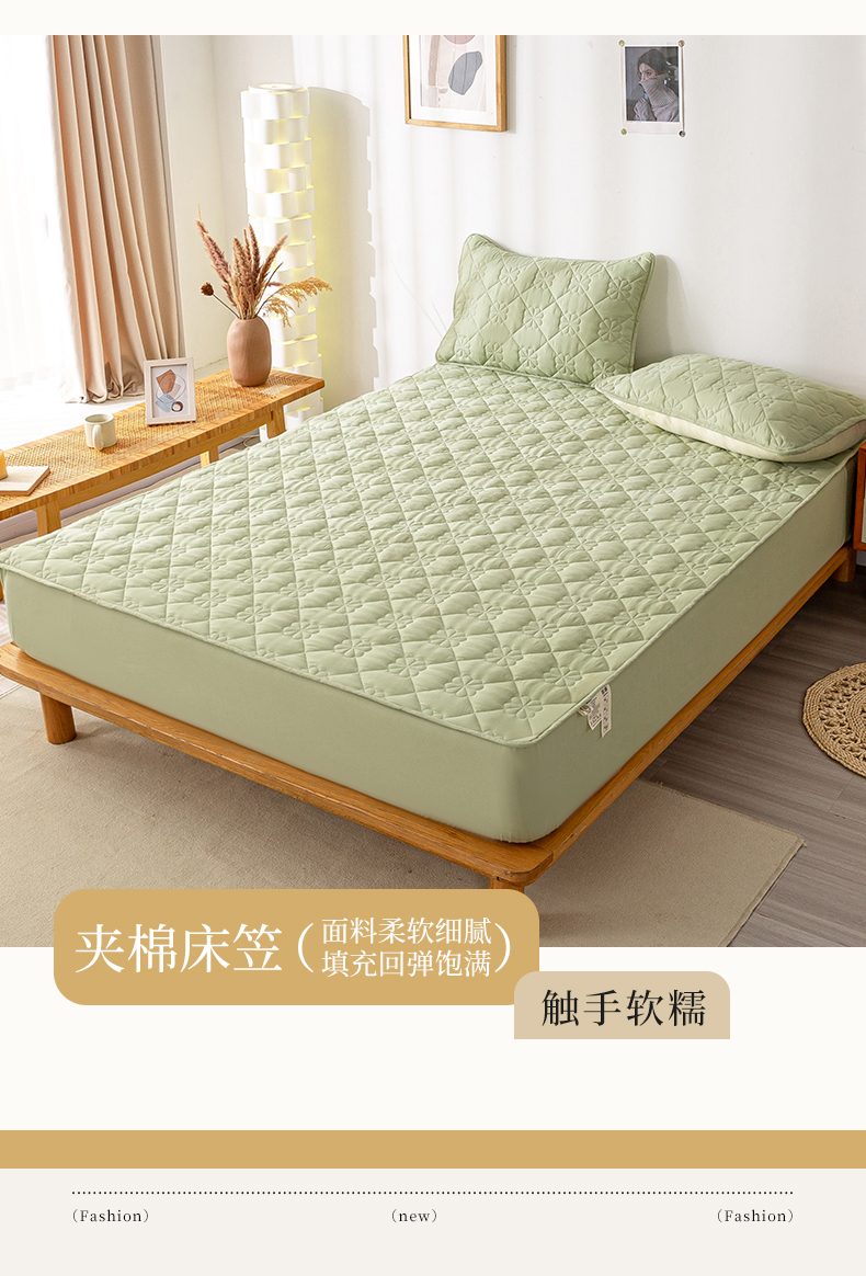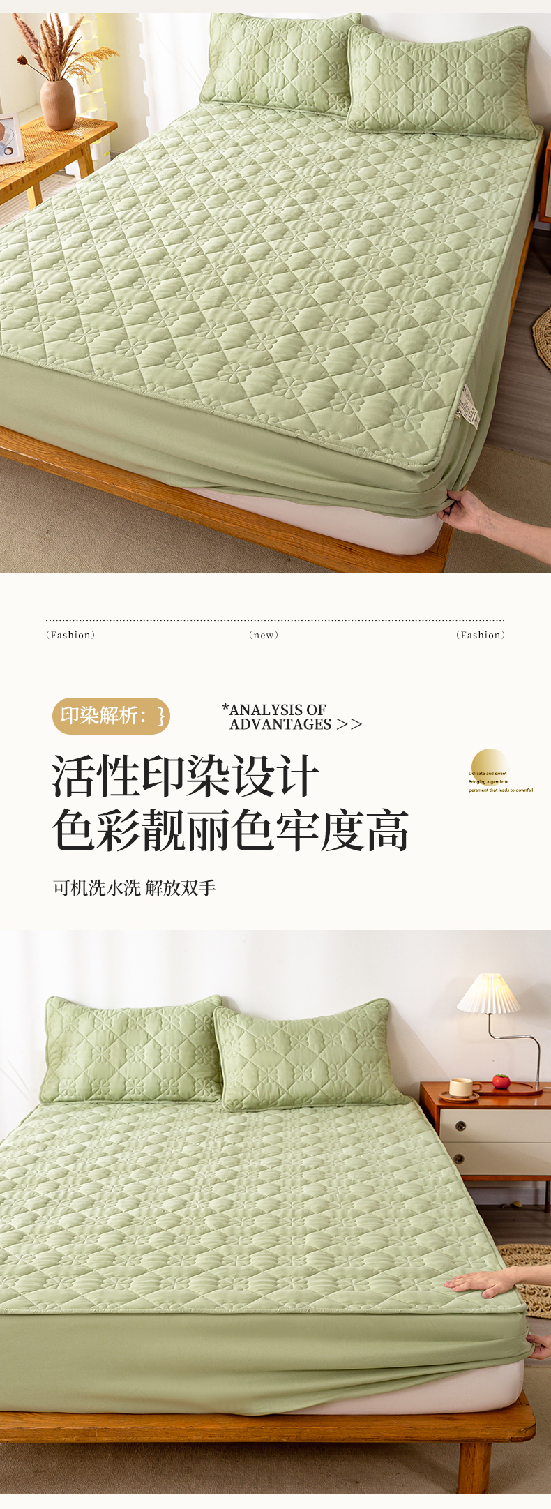 恬澳家纺 2025新款简约亲肤夹棉床笠-四叶草 四叶草-豆绿