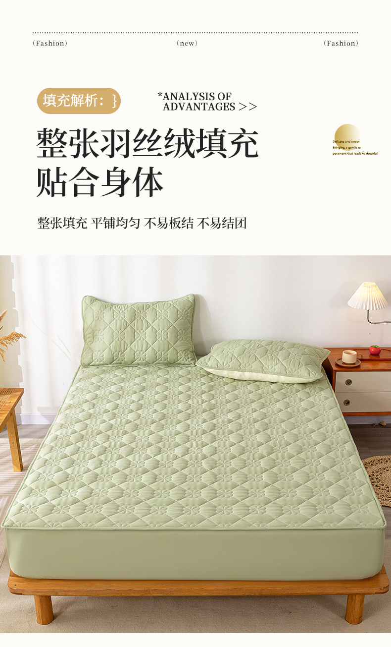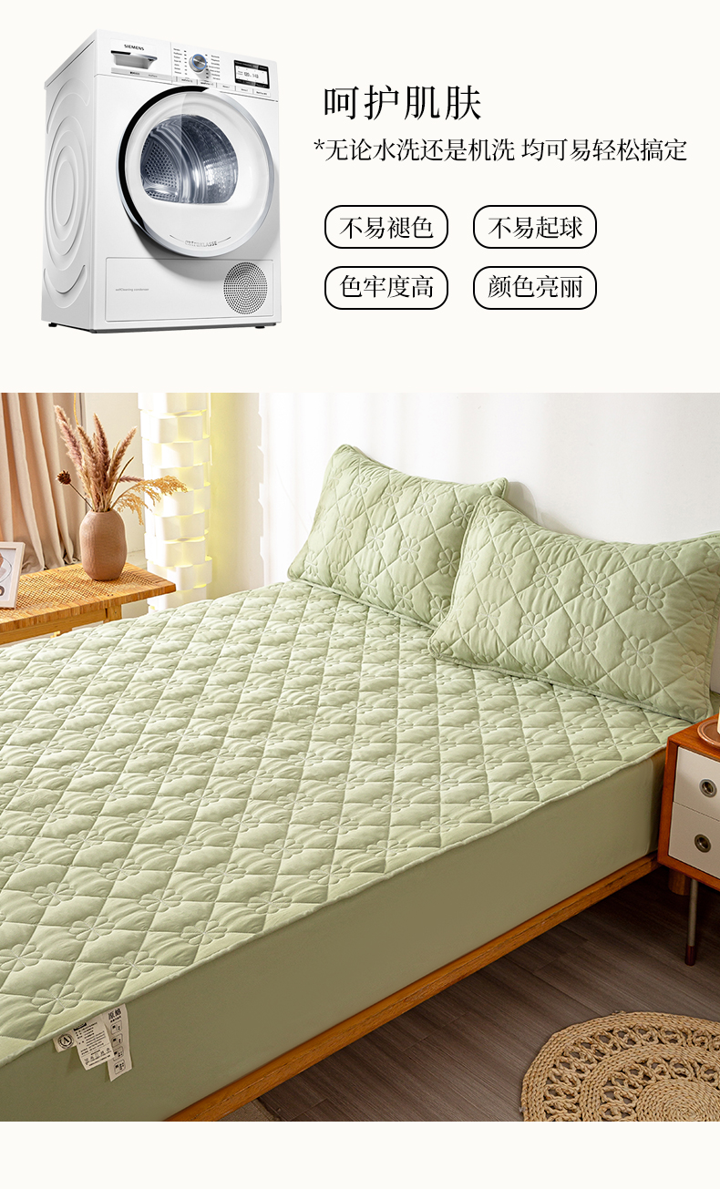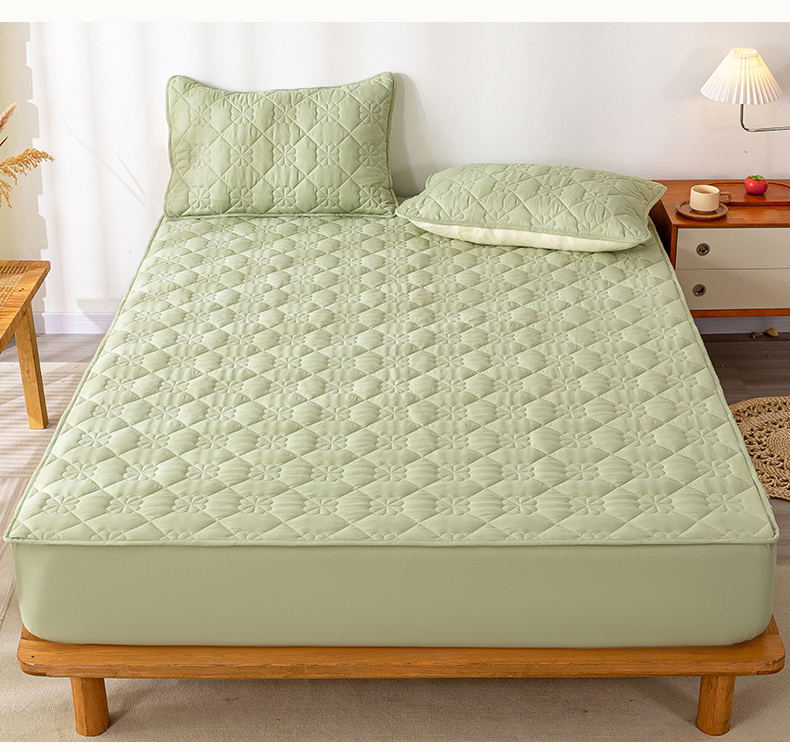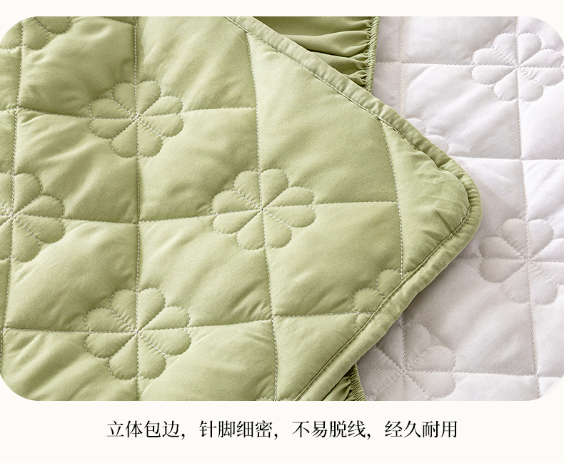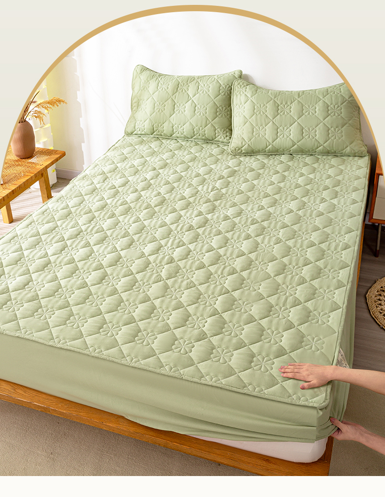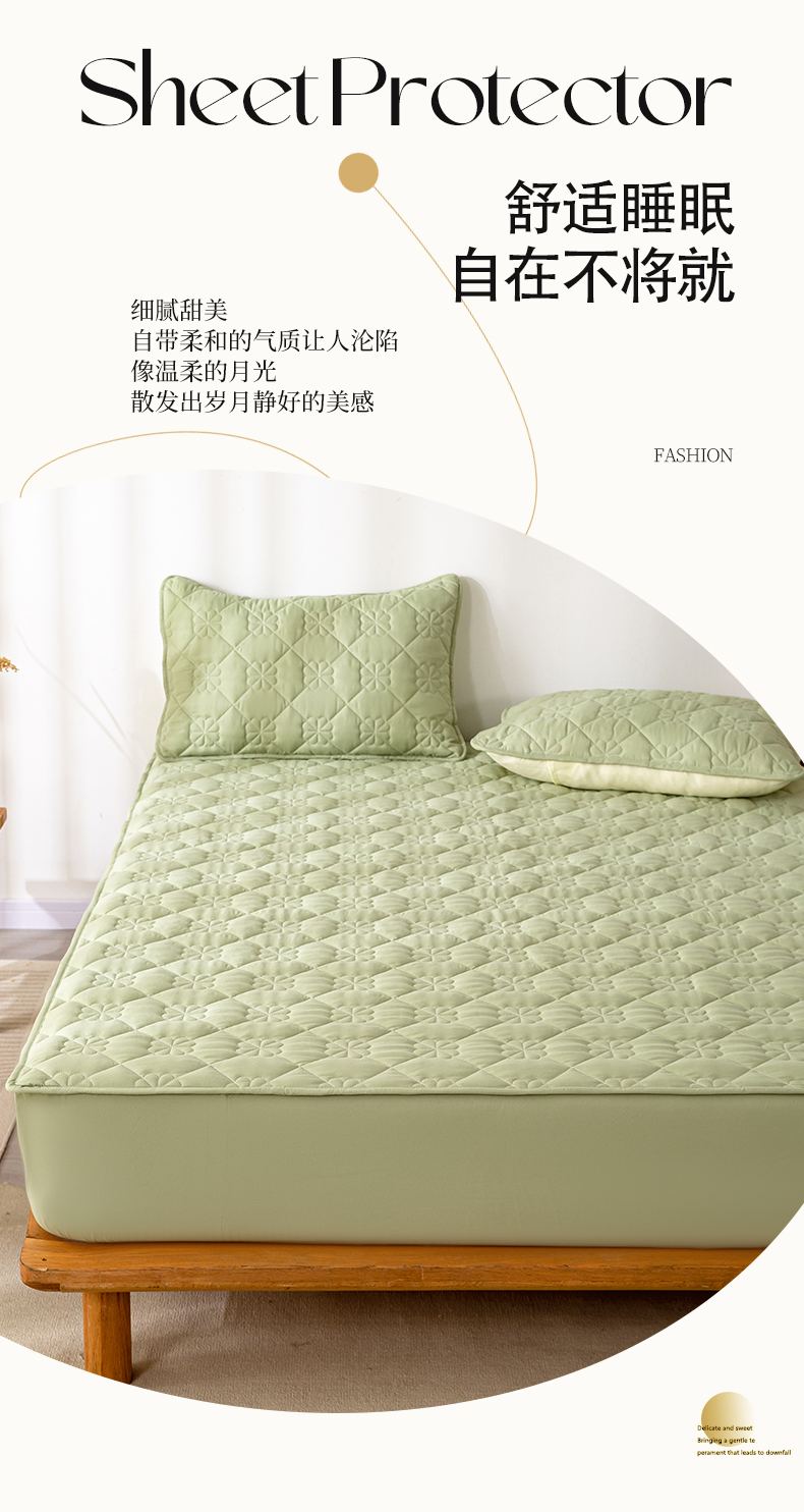恬澳家纺 2025新款简约亲肤夹棉床笠-四叶草 四叶草-豆绿