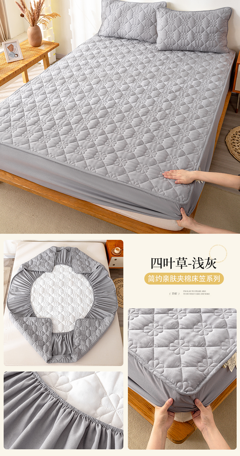 (总)恬澳家纺 2025新款简约亲肤夹棉床笠-四叶草,四叶草-本白,四叶草-豆绿,四叶草-粉玉,四叶草-湖蓝,四叶草-浅灰,四叶草-深灰