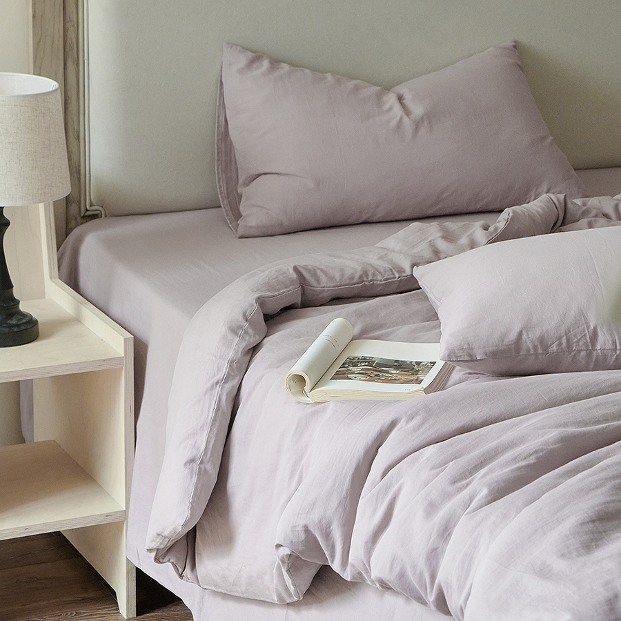 商品名称:子和家居 2025新款80支高密全棉双层纱四件套-云憩 云憩-马鞭草紫