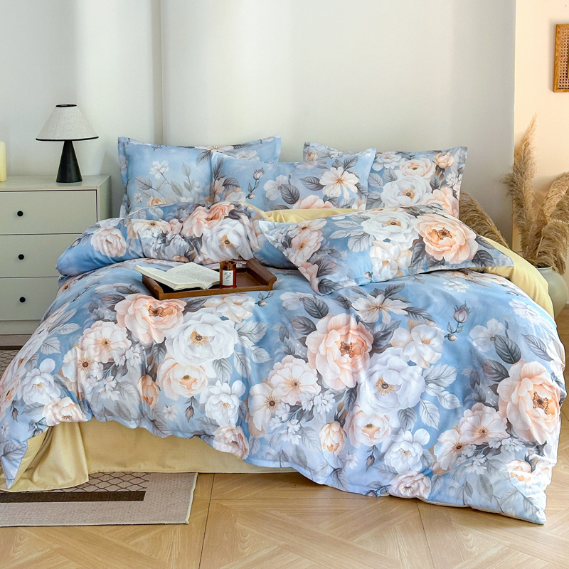 桔禾家纺 2025新款田园花卉小清新直播加厚植物羊绒四件套高克重磨毛跨境四件套 大量现货 烟雨江南