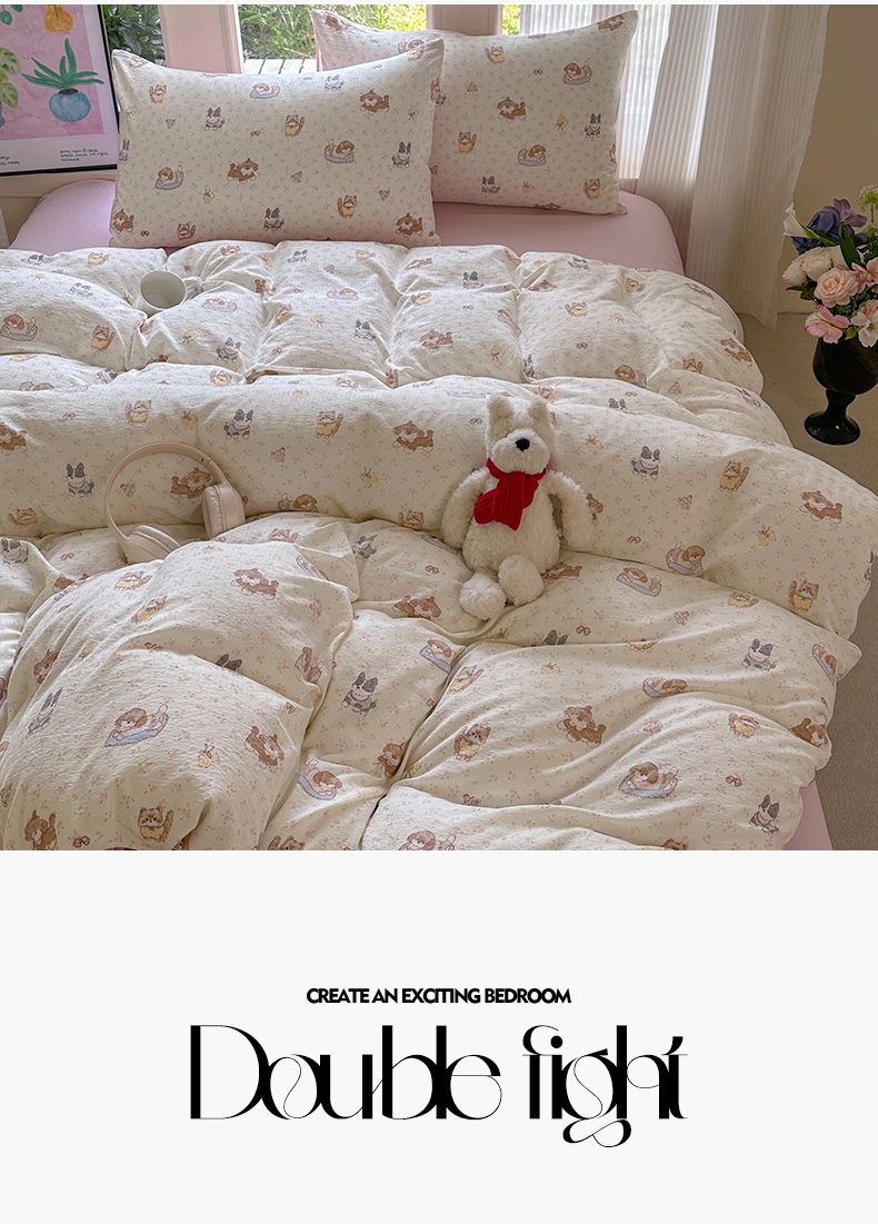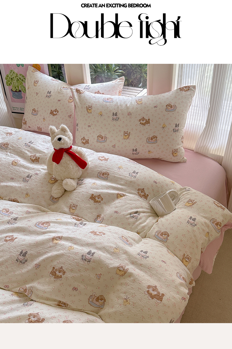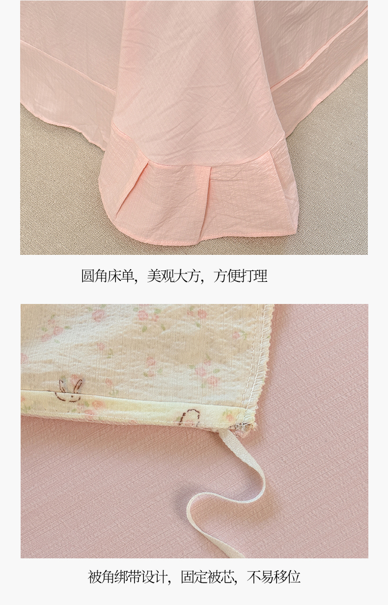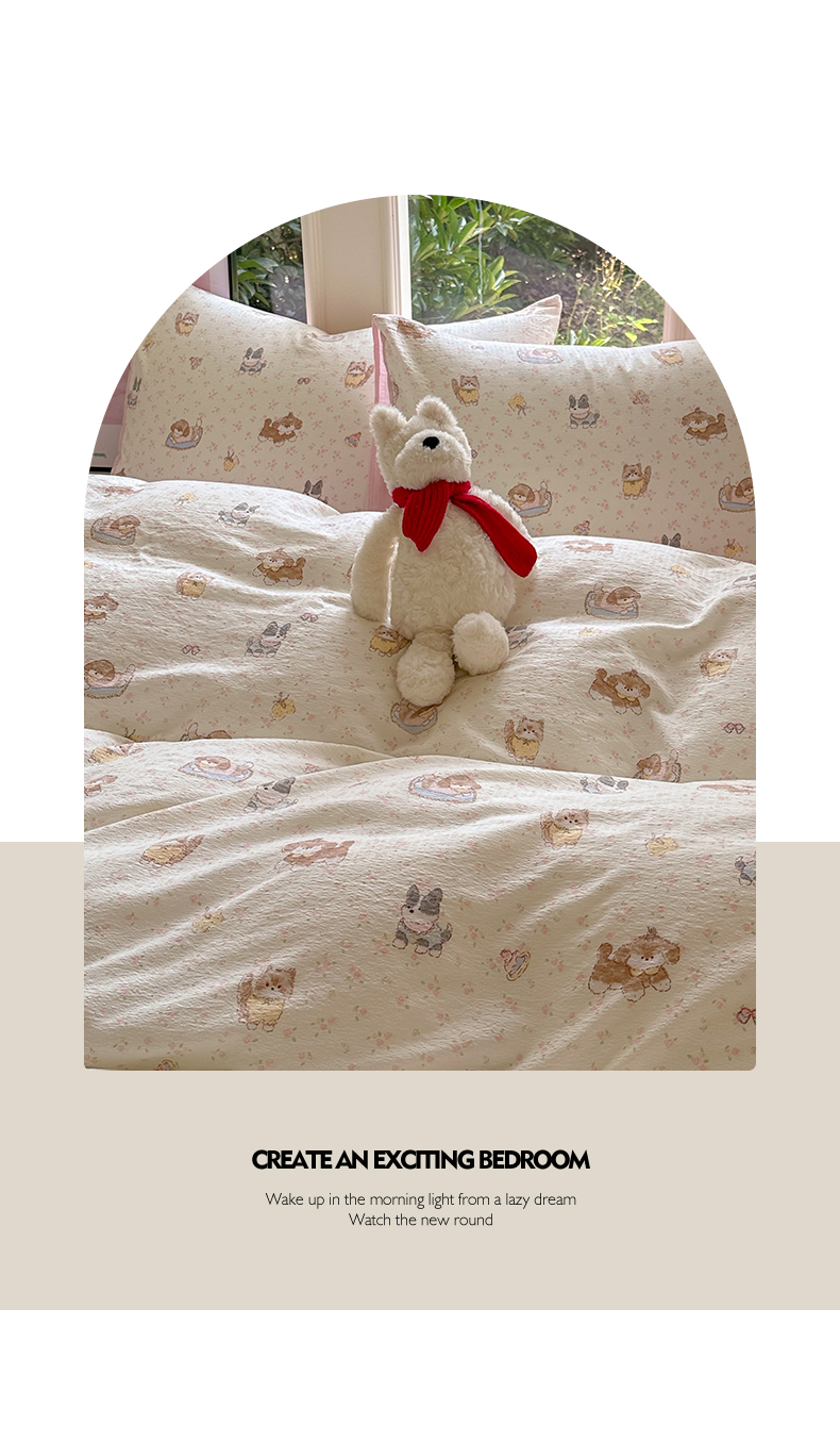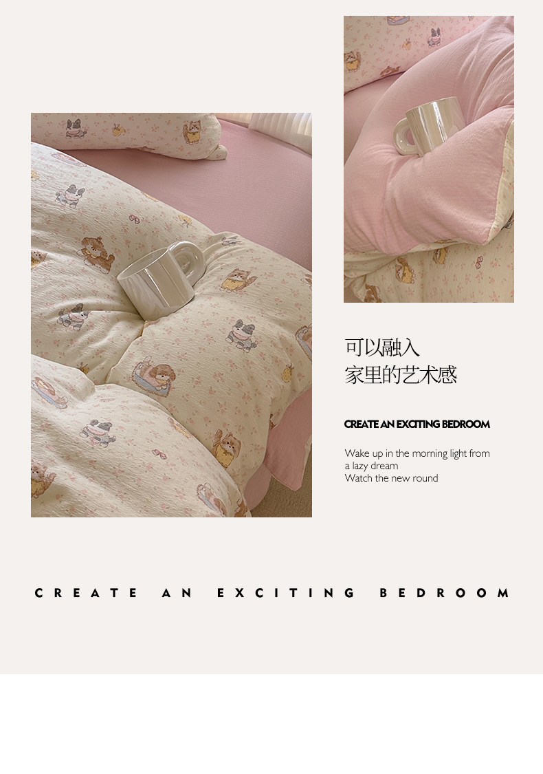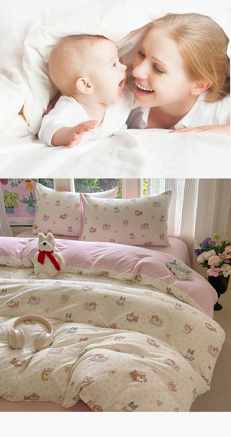 当前位置: 91家纺网 > 商品网购 > 床品套件 > 四件套 > 化纤普通四件套 > 桔禾家纺 2025新款小清新水洗棉有氧双层纱印花云感木棉皱皱纱四件套 萌宠格子铺