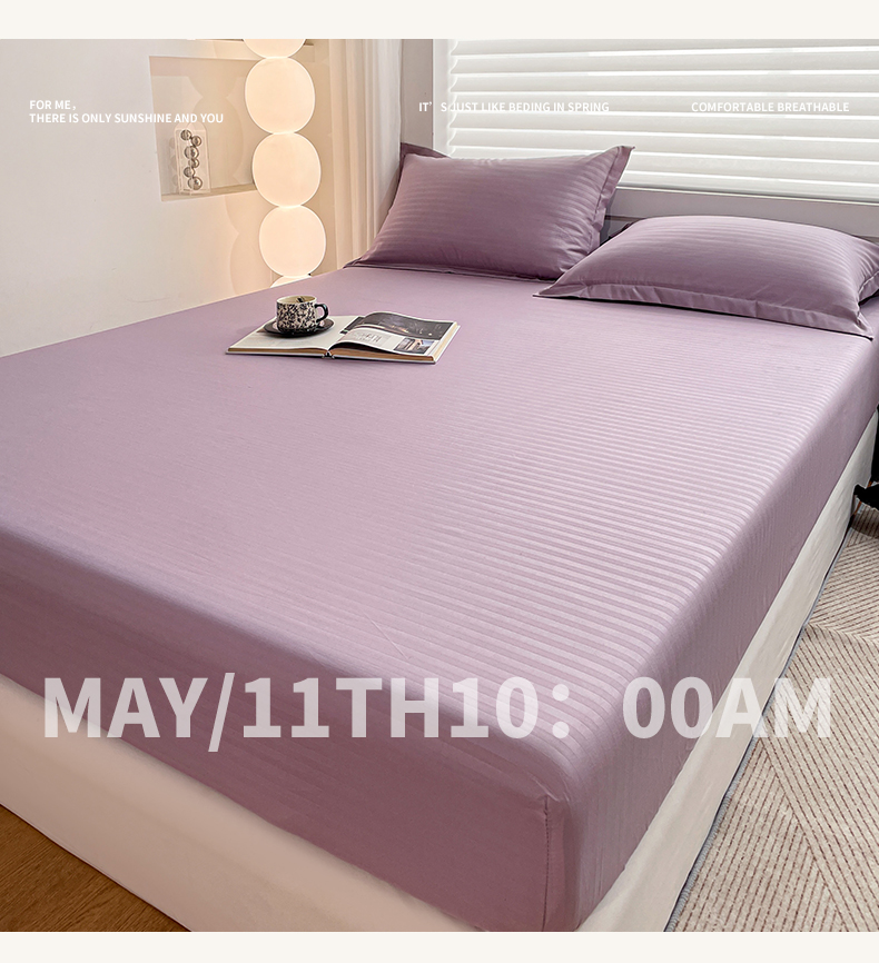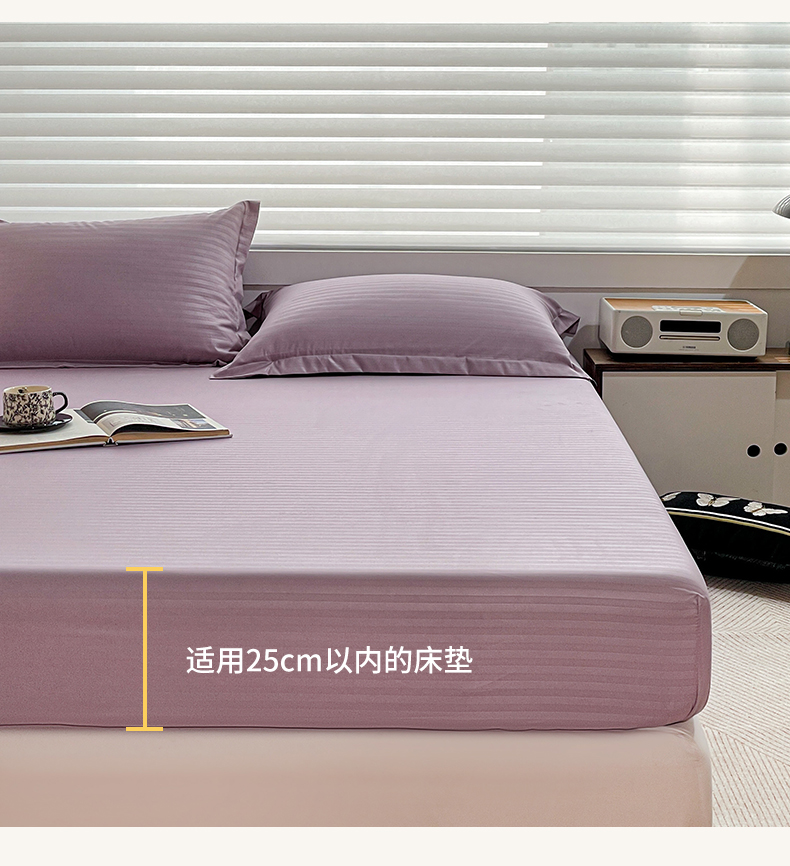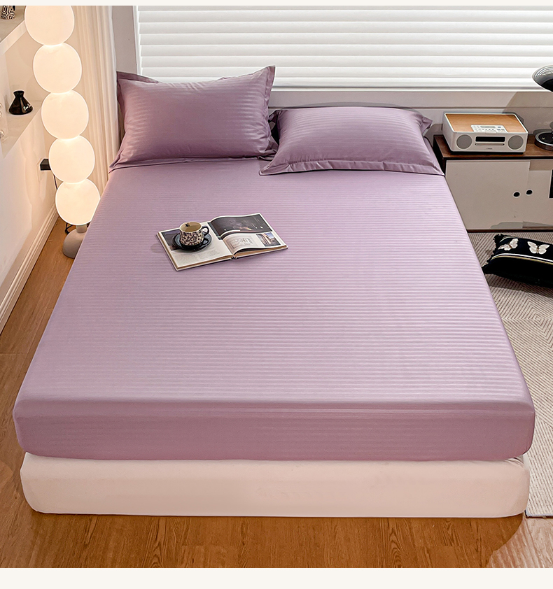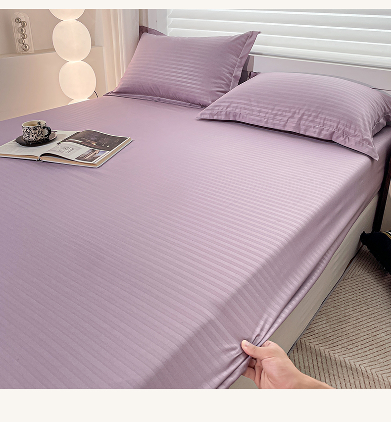 • 91家纺网 家纺一手货源 找家纺 恬澳家纺 2025新款简约磨毛压花床笠外贸跨境电商亚马逊速卖通单床笠三件套欧美尺寸多多跨境平台-场景二 条纹-紫