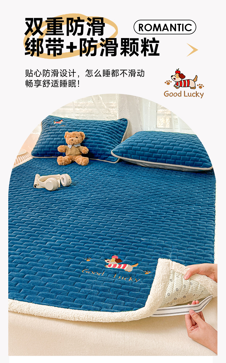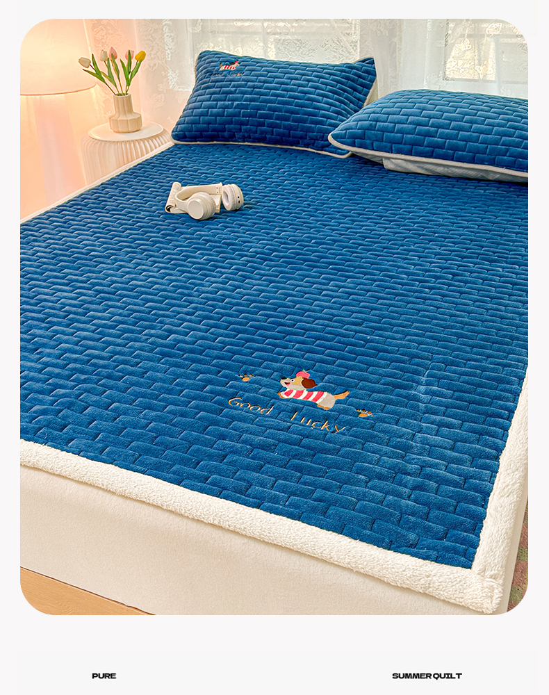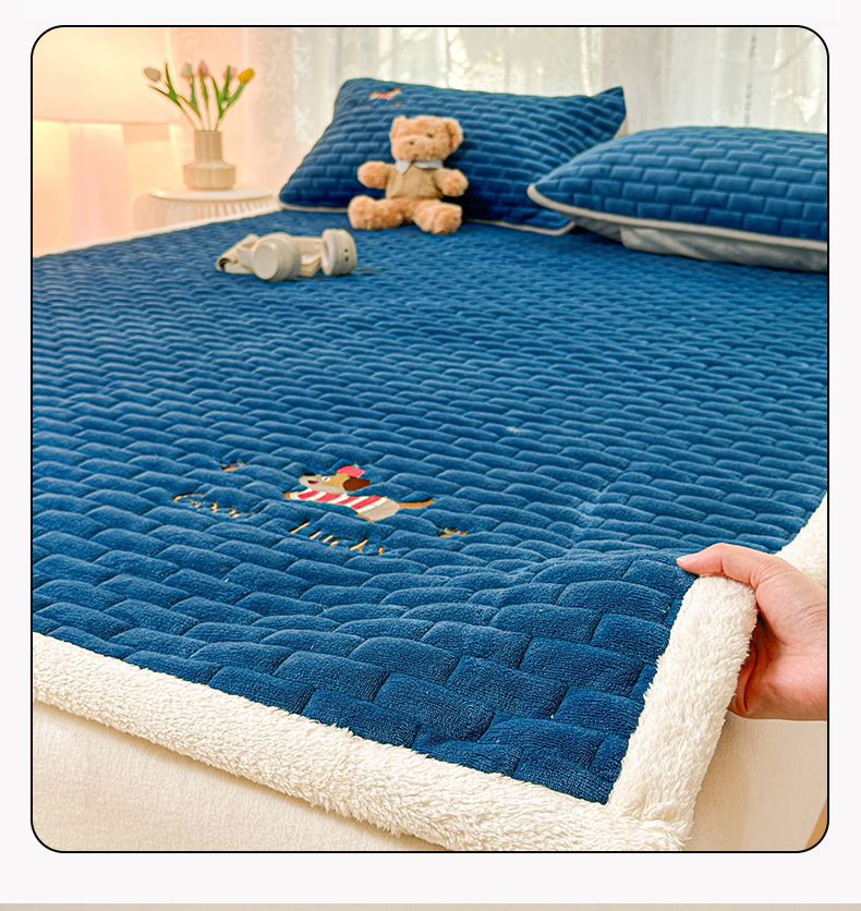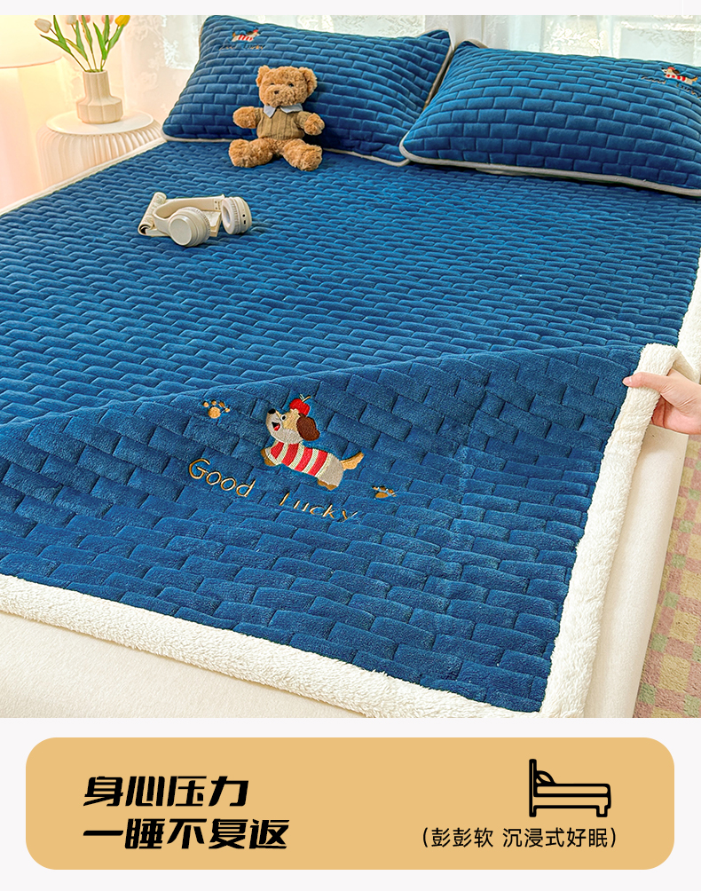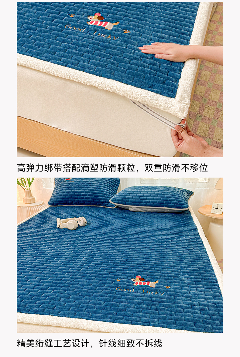 商品名称:恋绒家纺 2025新款加厚牛奶绒夹棉床褥床护垫床垫 幸运狗-湛蓝