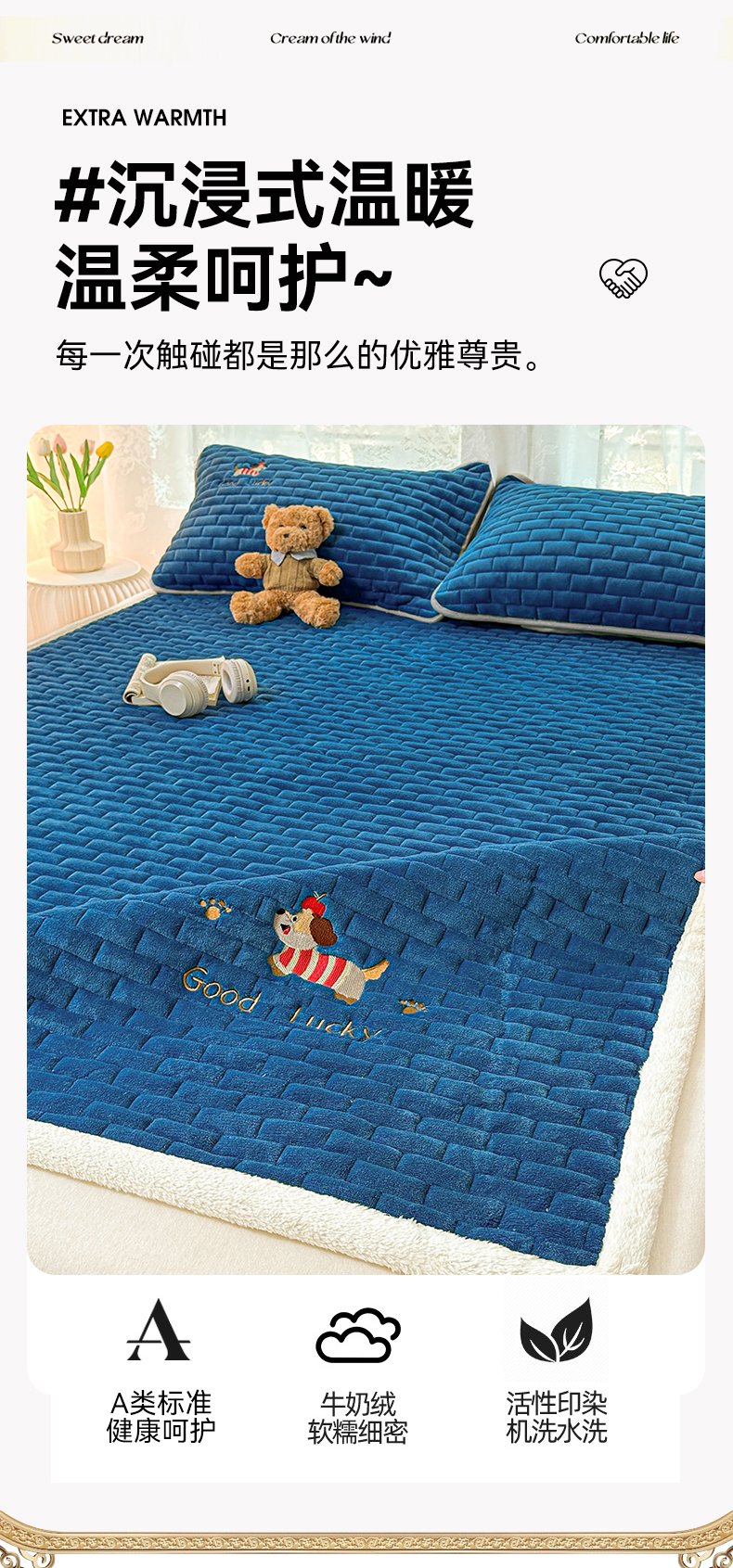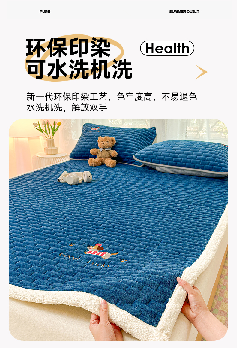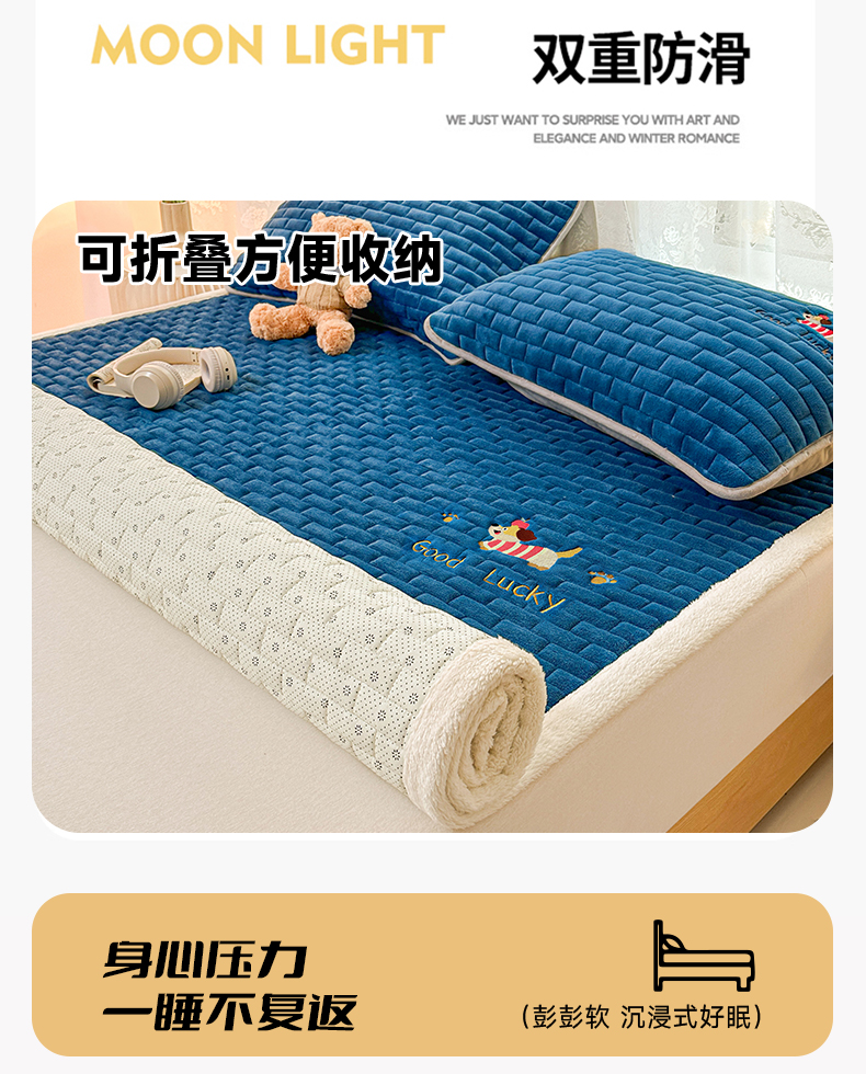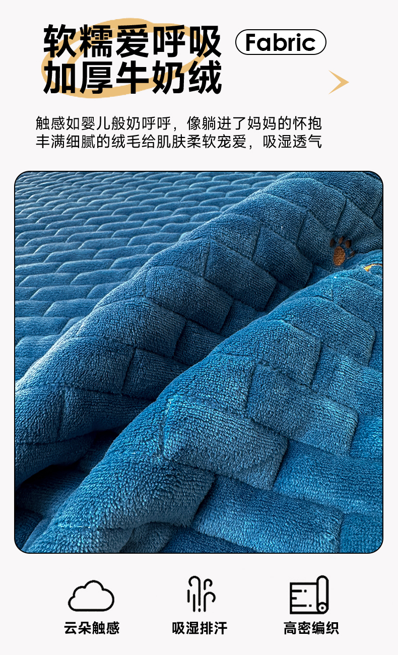 商品名称:恋绒家纺 2025新款加厚牛奶绒夹棉床褥床护垫床垫 幸运狗-湛蓝