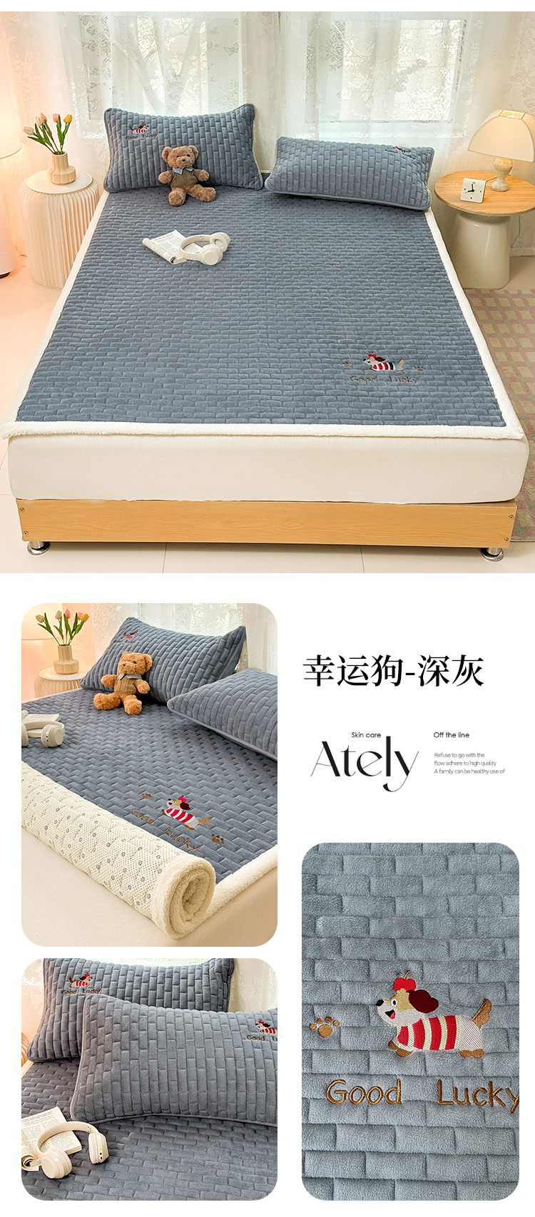 (总)恋绒家纺 2025新款加厚牛奶绒夹棉床褥床护垫床垫,幸运狗-杏黄,幸运狗-浅咖,幸运狗-深灰,幸运狗-香槟,幸运狗-银灰,幸运狗-湛蓝