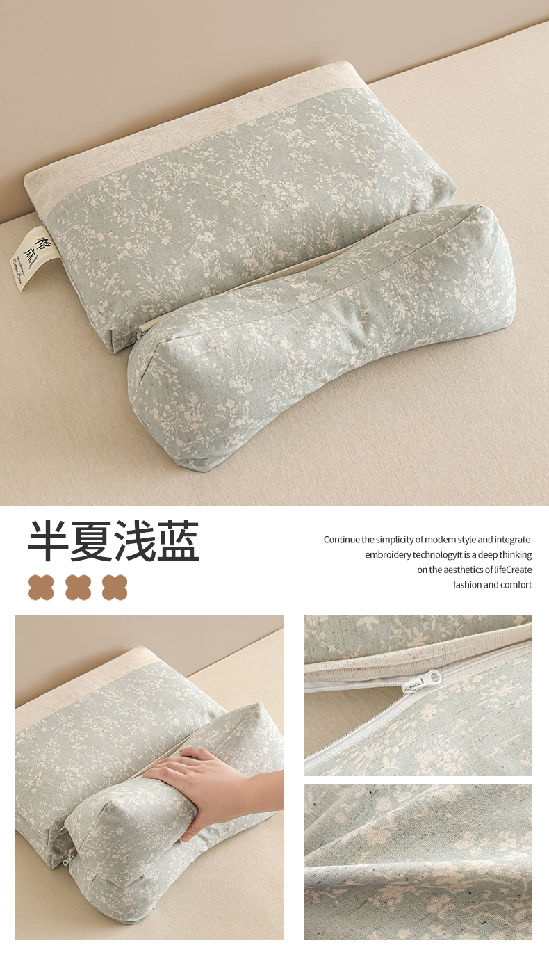 当前位置: 91家纺网 > 商品网购 > 枕头/枕芯/保健枕/颈椎枕 > 枕头枕芯 > 麦肯锡 2025新款棉麻古朴三角牵引荞麦枕 枕头枕芯 半夏浅蓝/对
