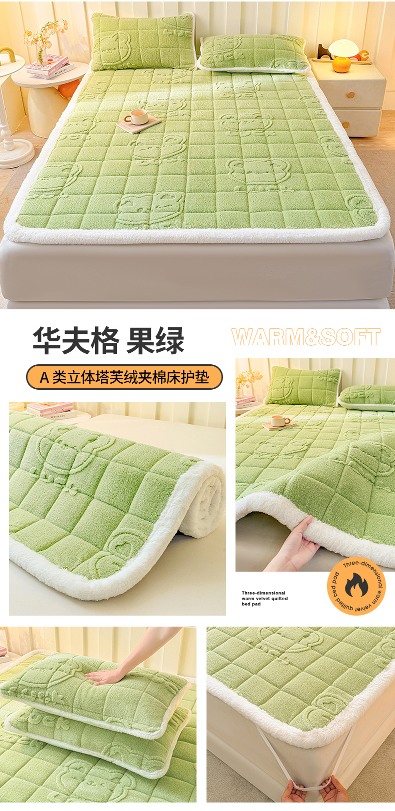(总)予梦家纺 2025新款加厚塔芙绒床垫床褥床护垫(带卖点图和买家秀),绅士熊 果绿,绅士熊 卡其,华夫格 星灰,华夫格 卡其,华夫格 果绿,绅士熊 星灰,华夫格 苍蓝,绅士熊 苍蓝