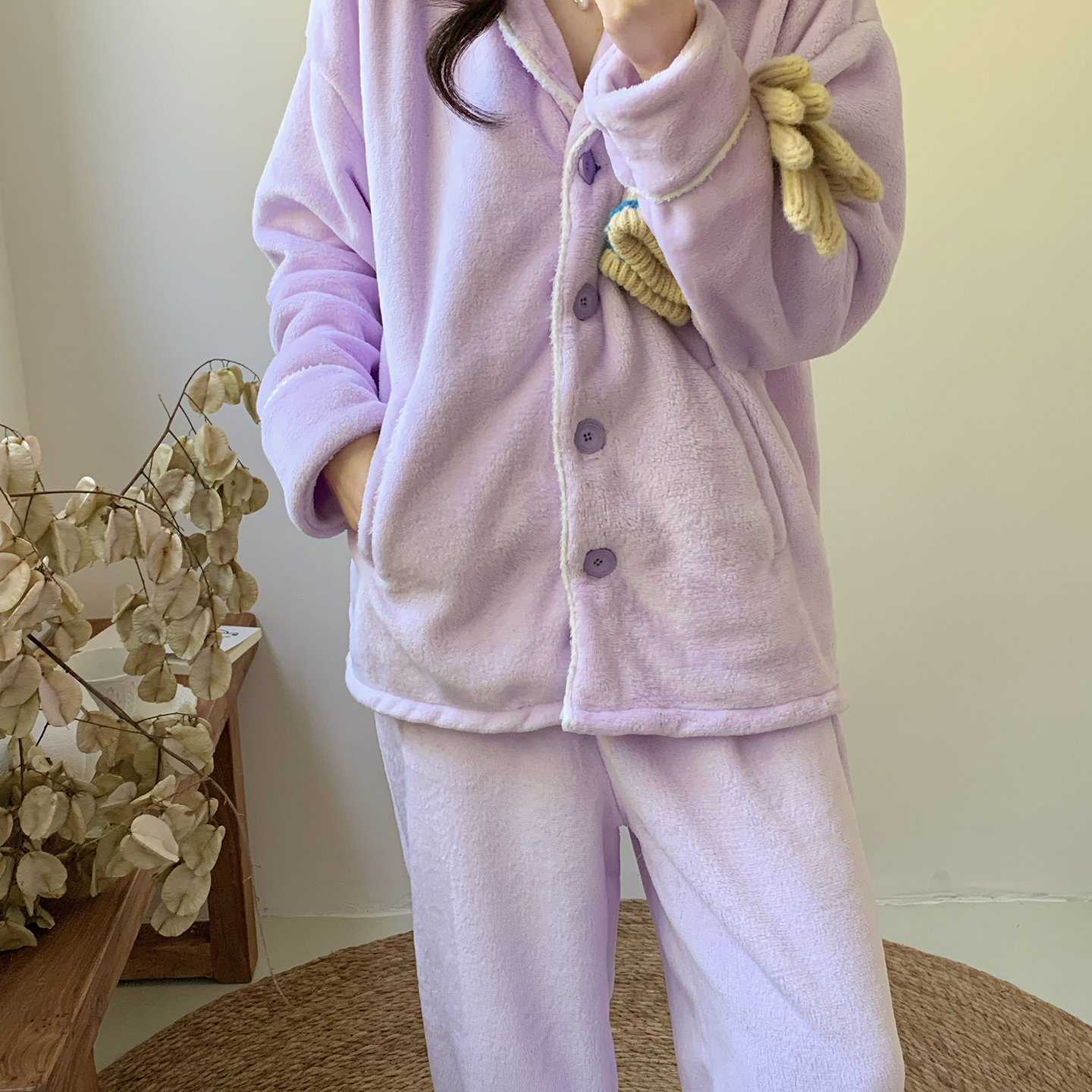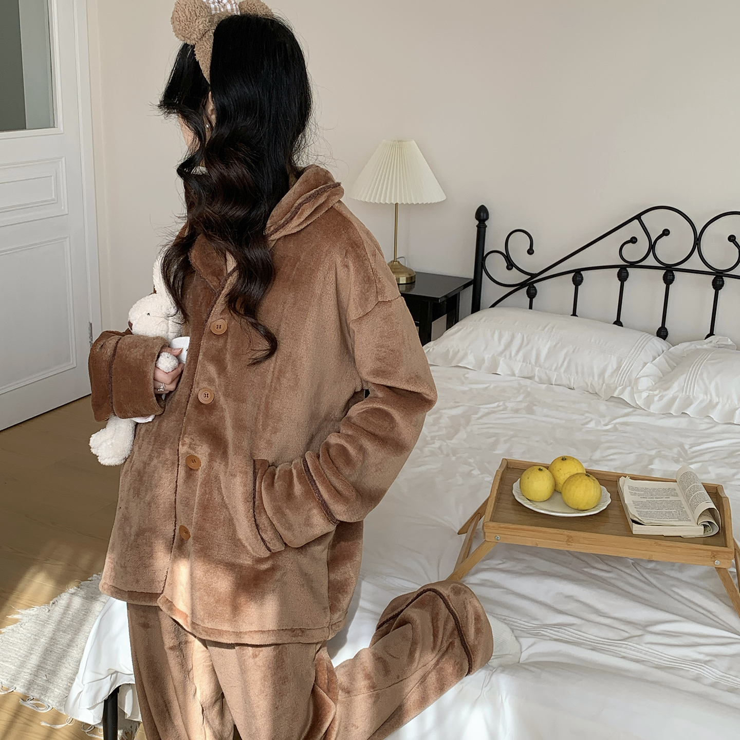 (总)多乐娜 2025新款出口日单高定款半边绒家居服重量高达1600g高级出口品质非市面普货(控价!请不要低于165元销售!!!!!),暖棕色,青奈色