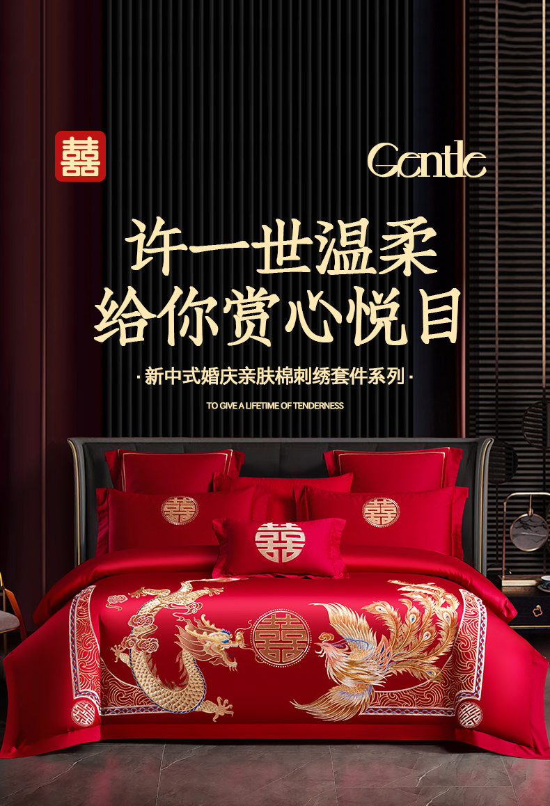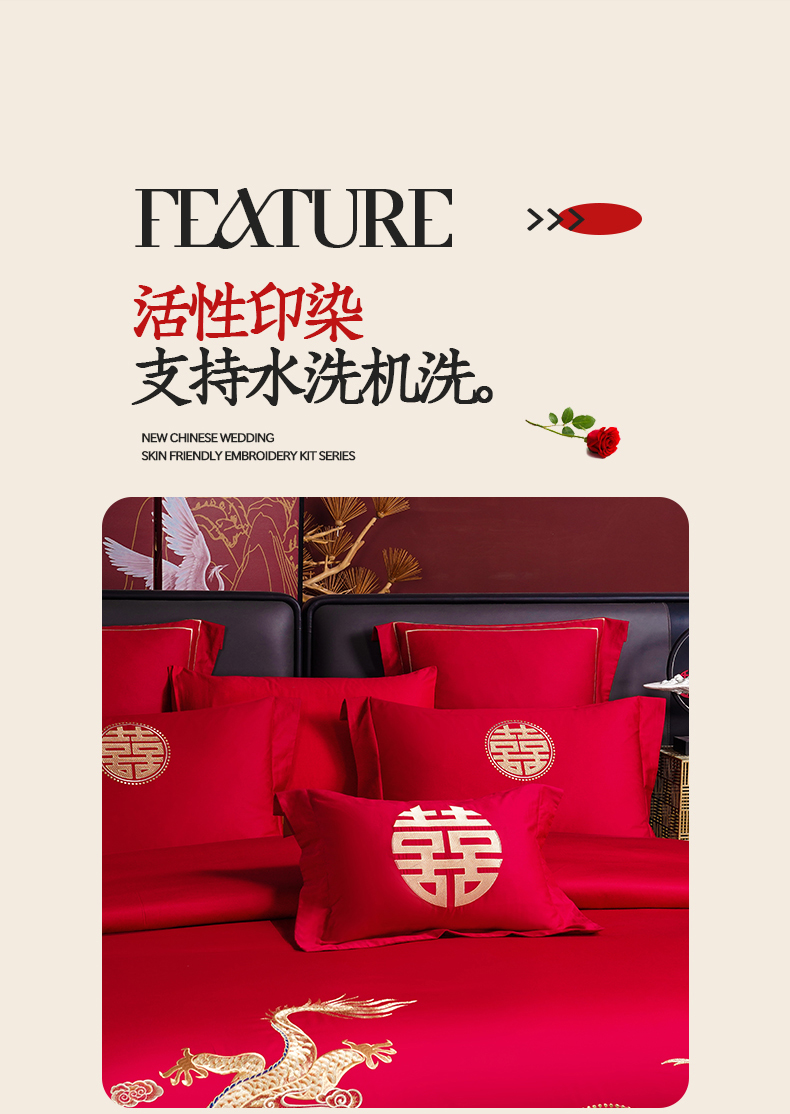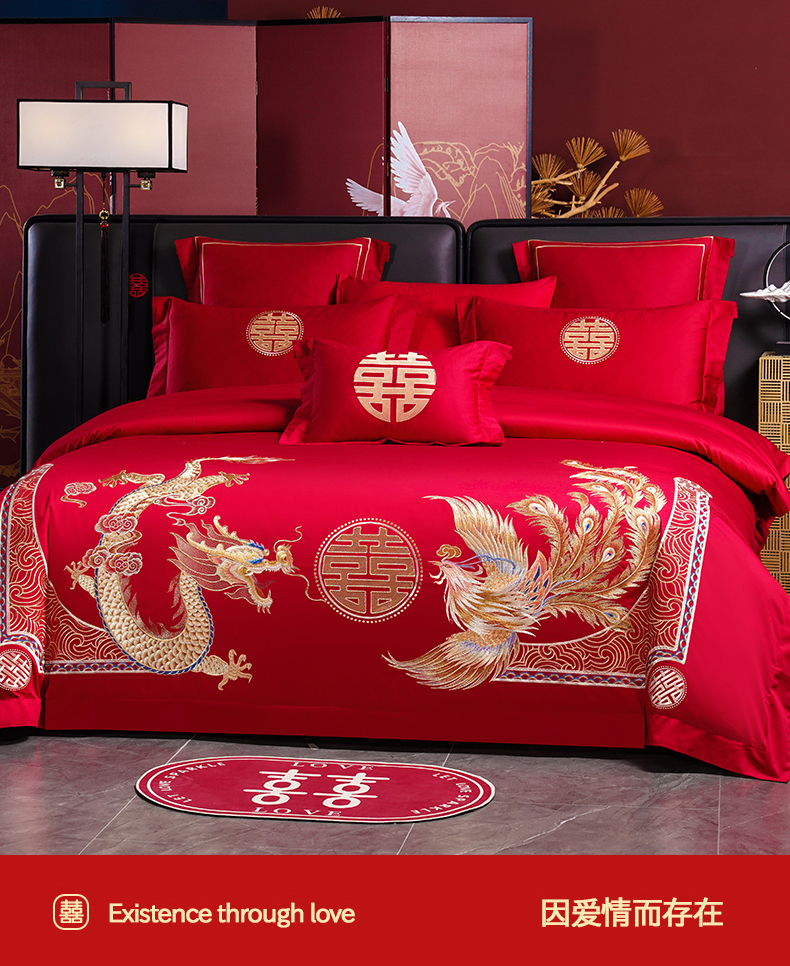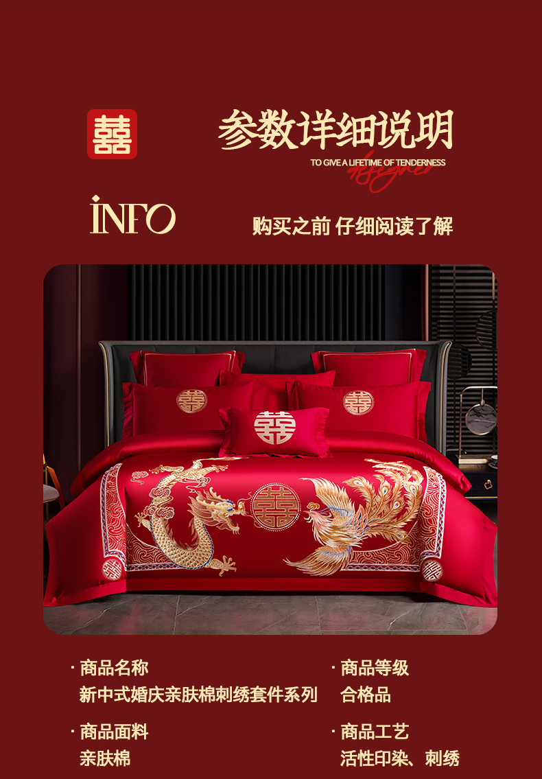 当前位置: 91家纺网 > 商品网购 > 床品套件 > 四件套 > 婚庆四件套 > 置顶家纺 2025新款新中式婚庆亲肤棉绣花四件套 龙凤祥瑞-金大红