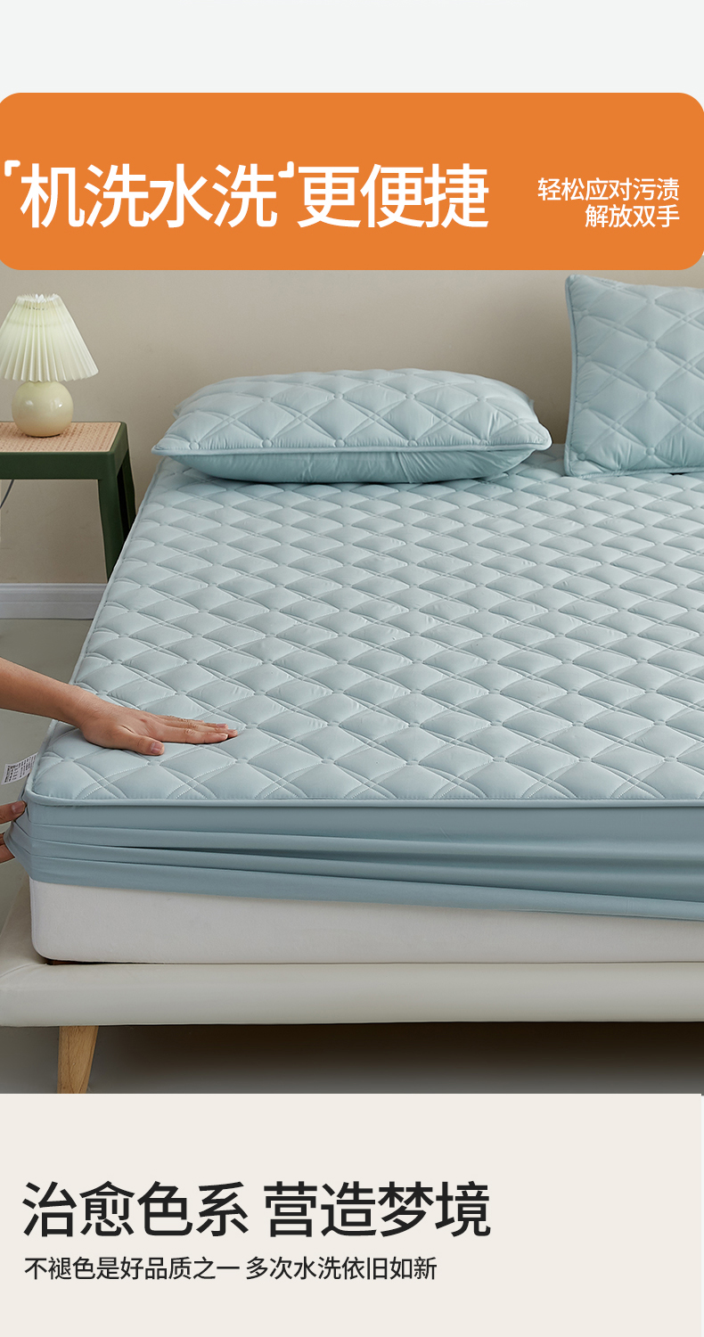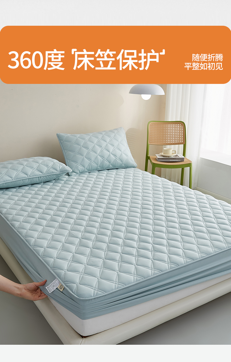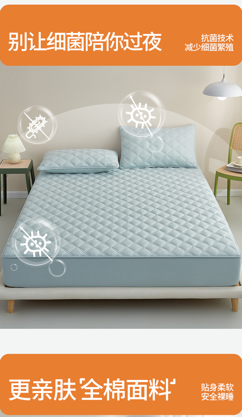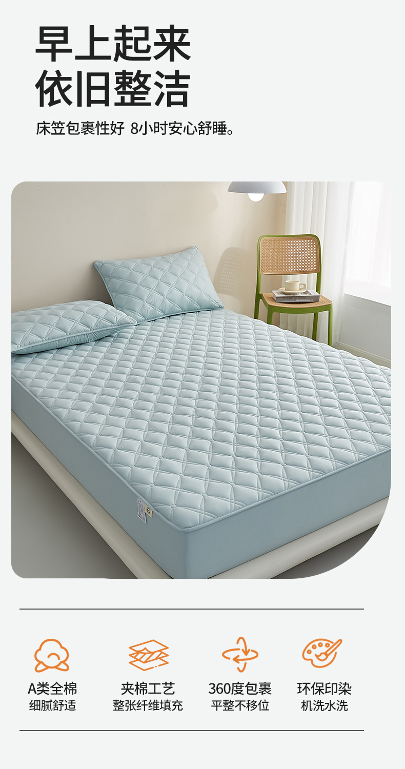 红淳家纺 2025新款A类抗菌全棉夹棉轻奢款床笠单品床笠床笠单件 全棉轻奢-水绿