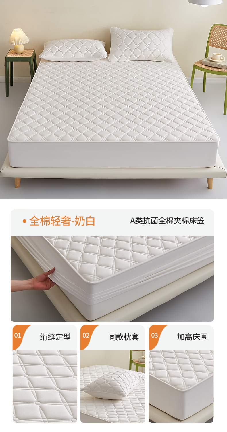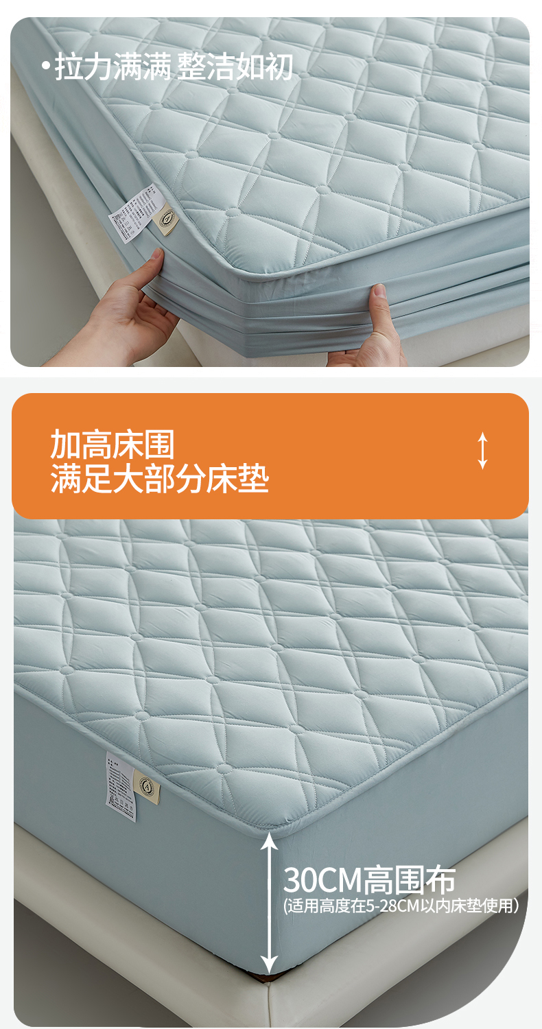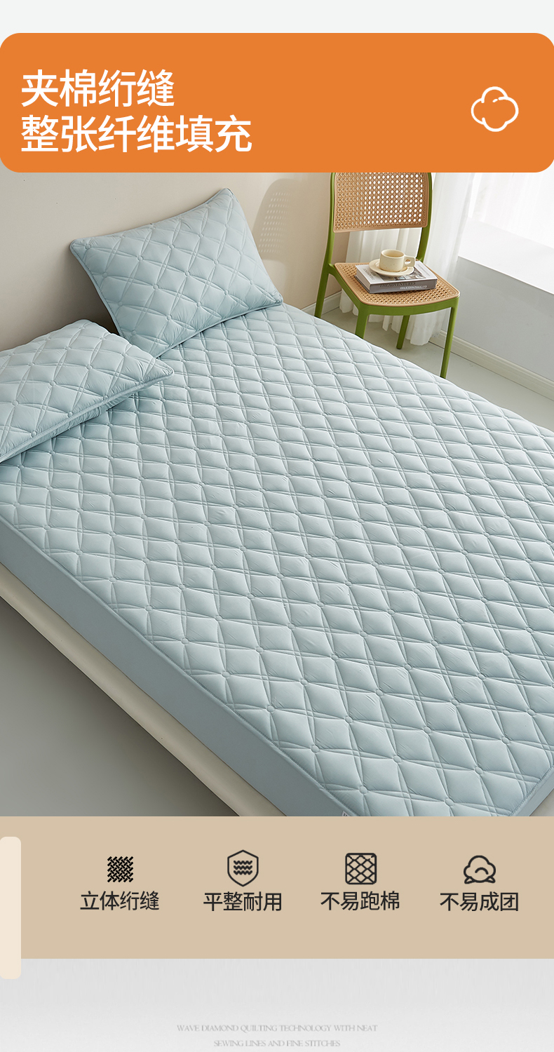 红淳家纺 2025新款A类抗菌全棉夹棉轻奢款床笠单品床笠床笠单件 全棉轻奢-水绿