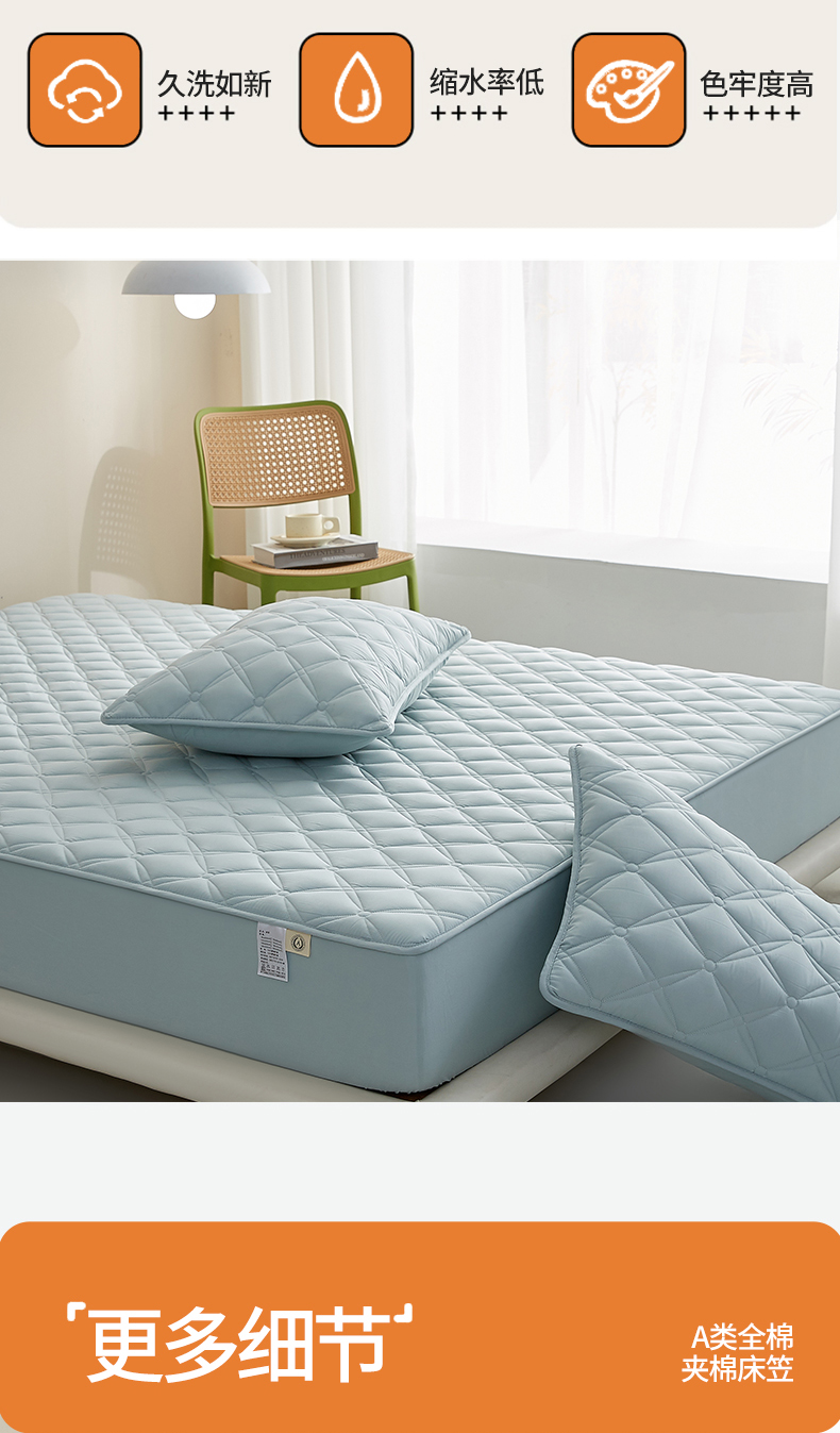 商品名称:红淳家纺 2025新款A类抗菌全棉夹棉轻奢款床笠单品床笠床笠单件 全棉轻奢-水绿