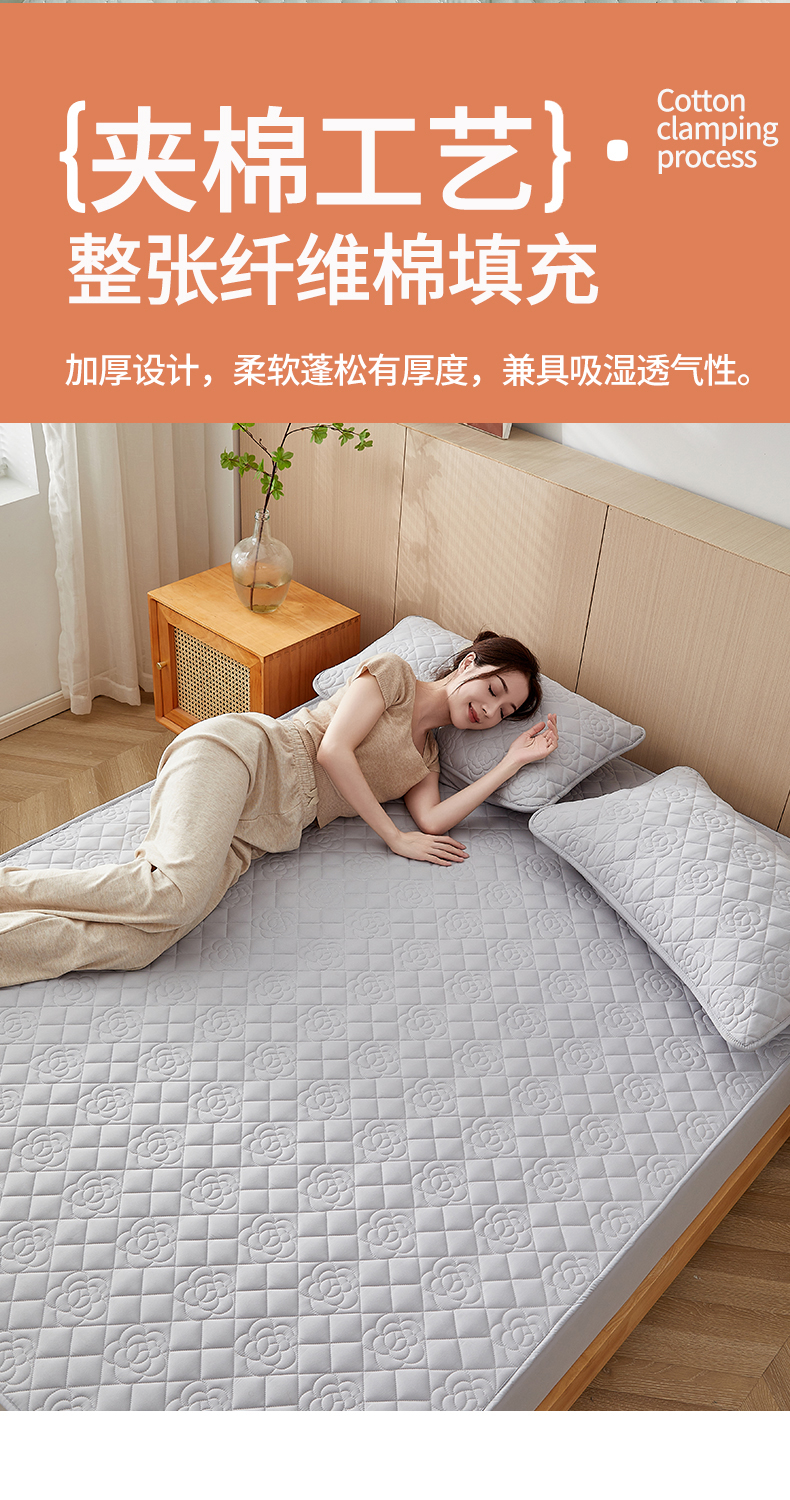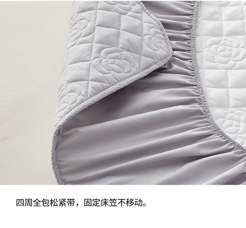 商品名称:红淳家纺 2025新款山茶花款防水夹棉床笠单品床笠床笠单件 山茶花-浅灰