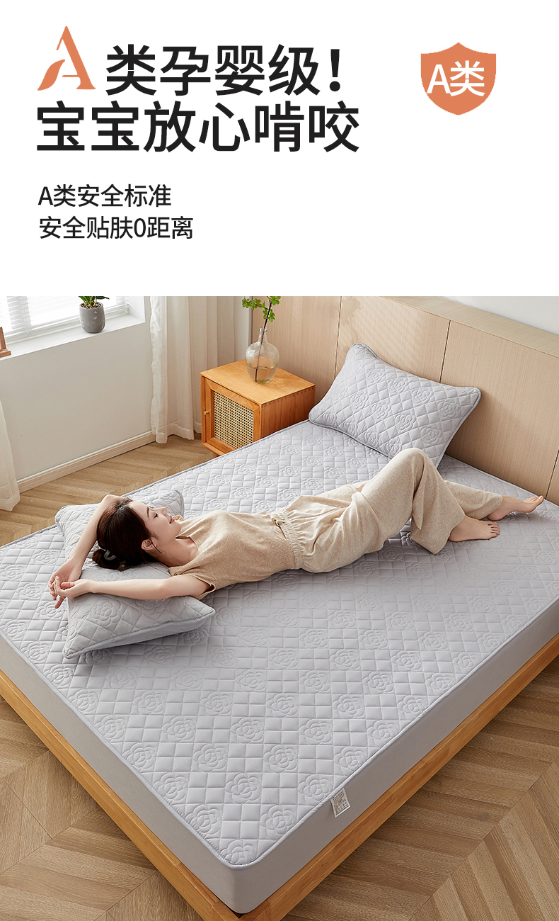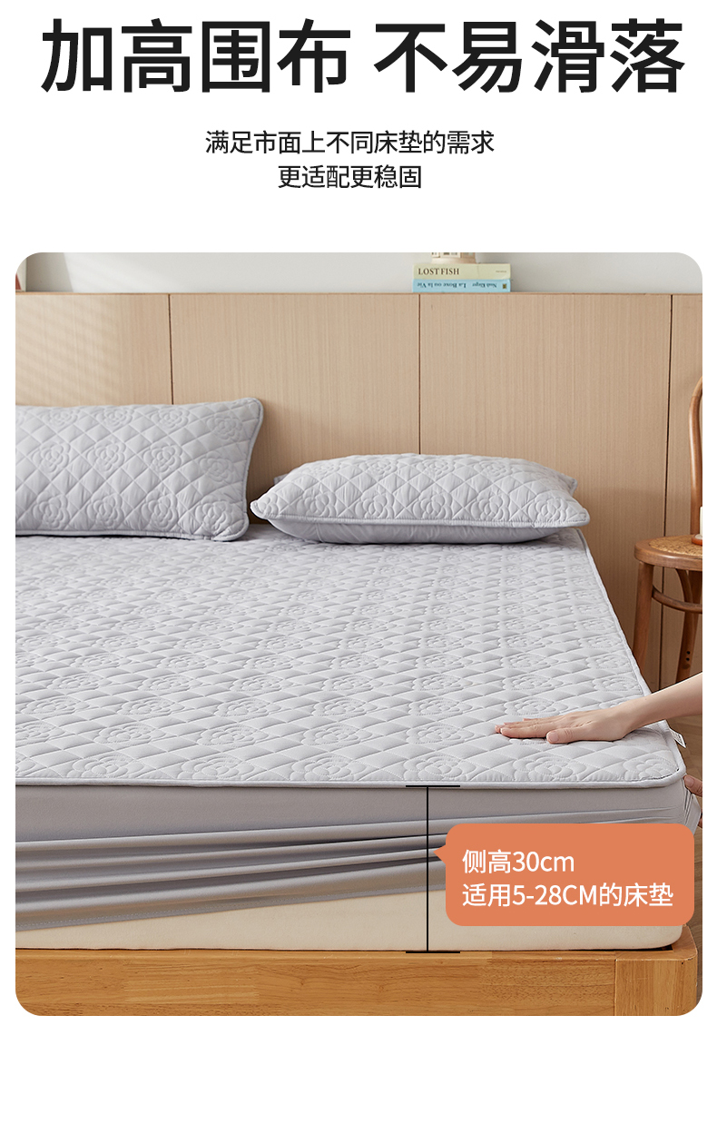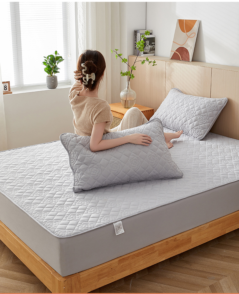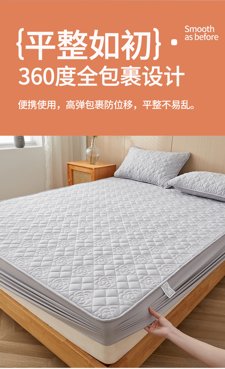 红淳家纺 2025新款山茶花款防水夹棉床笠单品床笠床笠单件 山茶花-浅灰