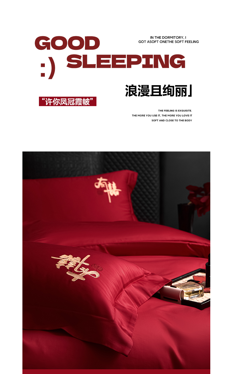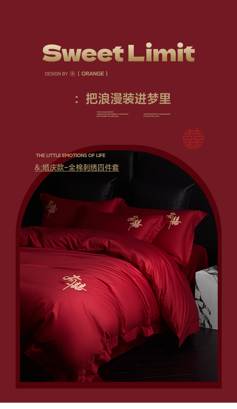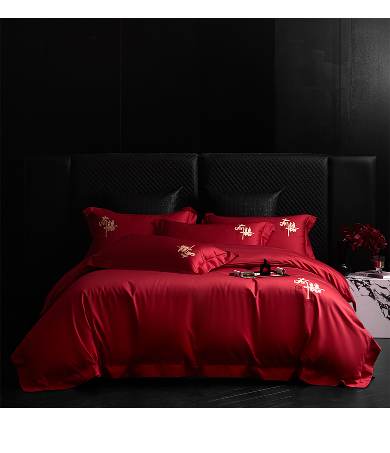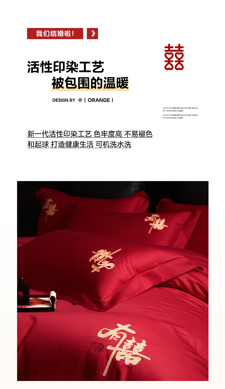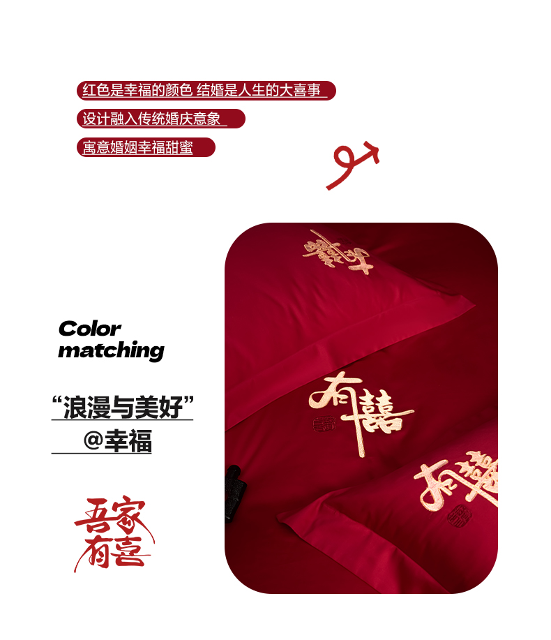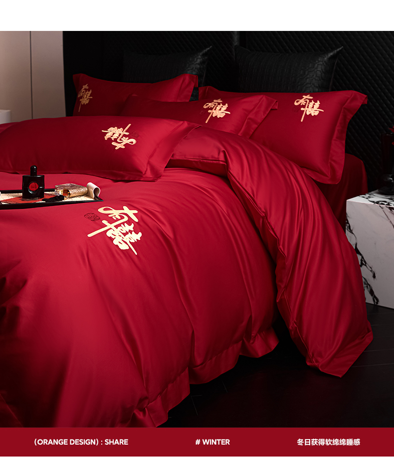 商品名称:(总)帝王家纺 2026新款亲肤棉磨毛全刺绣婚庆四件套红色结婚床上用品
