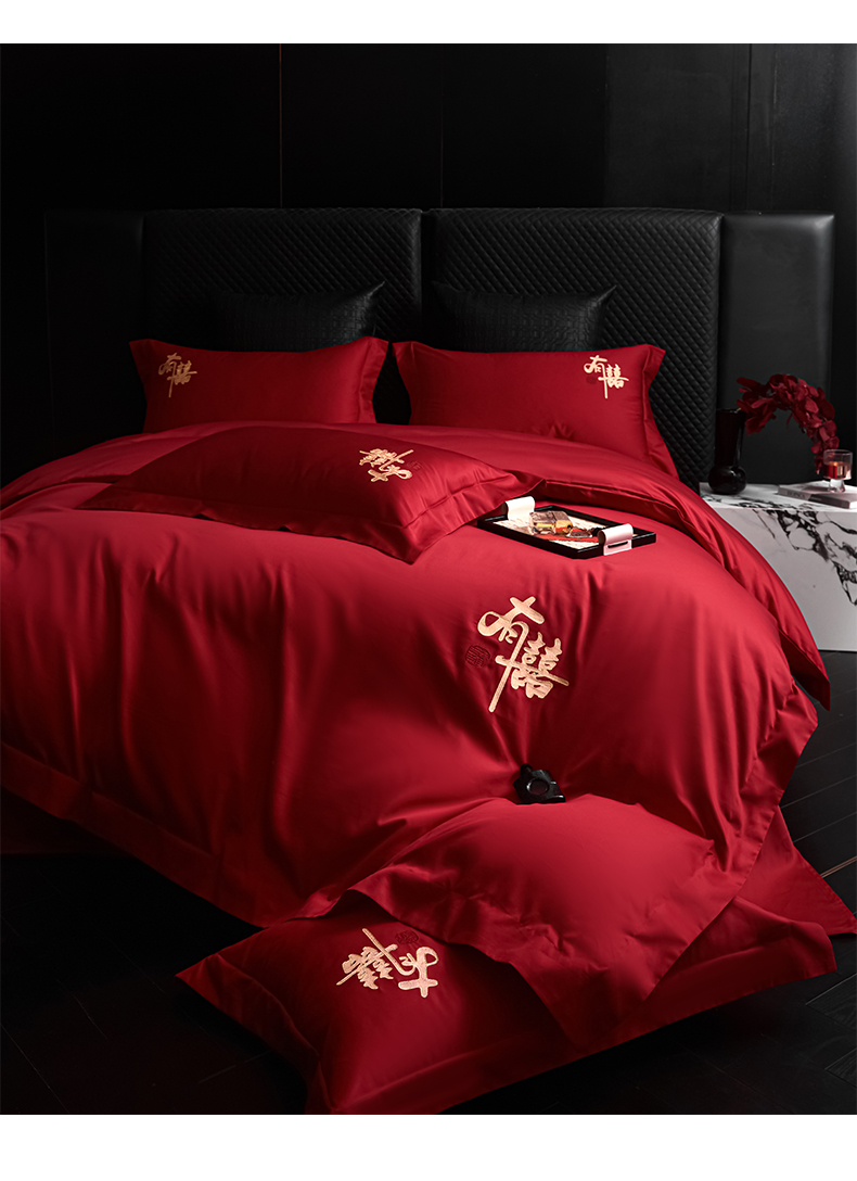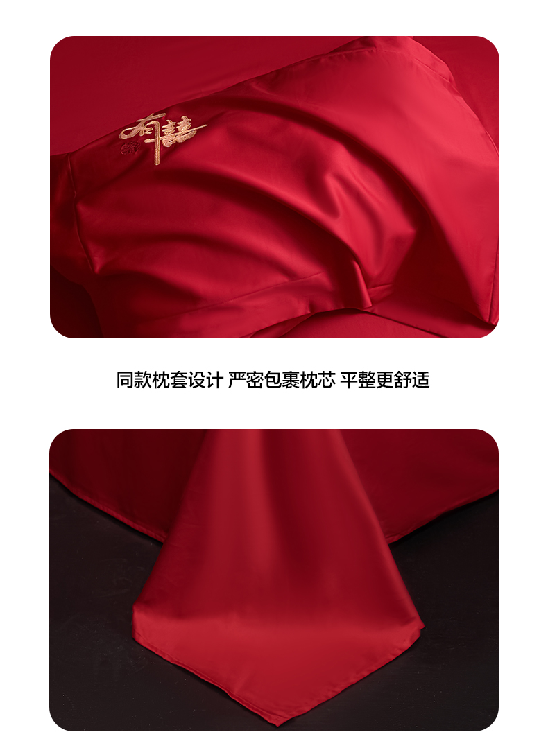 (总)帝王家纺 2025新款贡缎提花贴布磨毛刺绣婚庆四件套红色结婚床上用品,一囍迎门