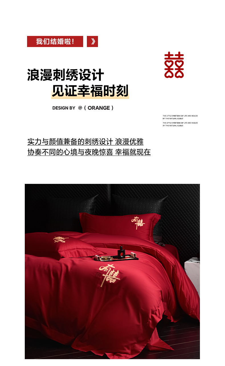 (总)帝王家纺 2025新款加厚保暖牛奶绒婚庆刺绣四件套珊瑚绒红色结婚床品,囍嫁