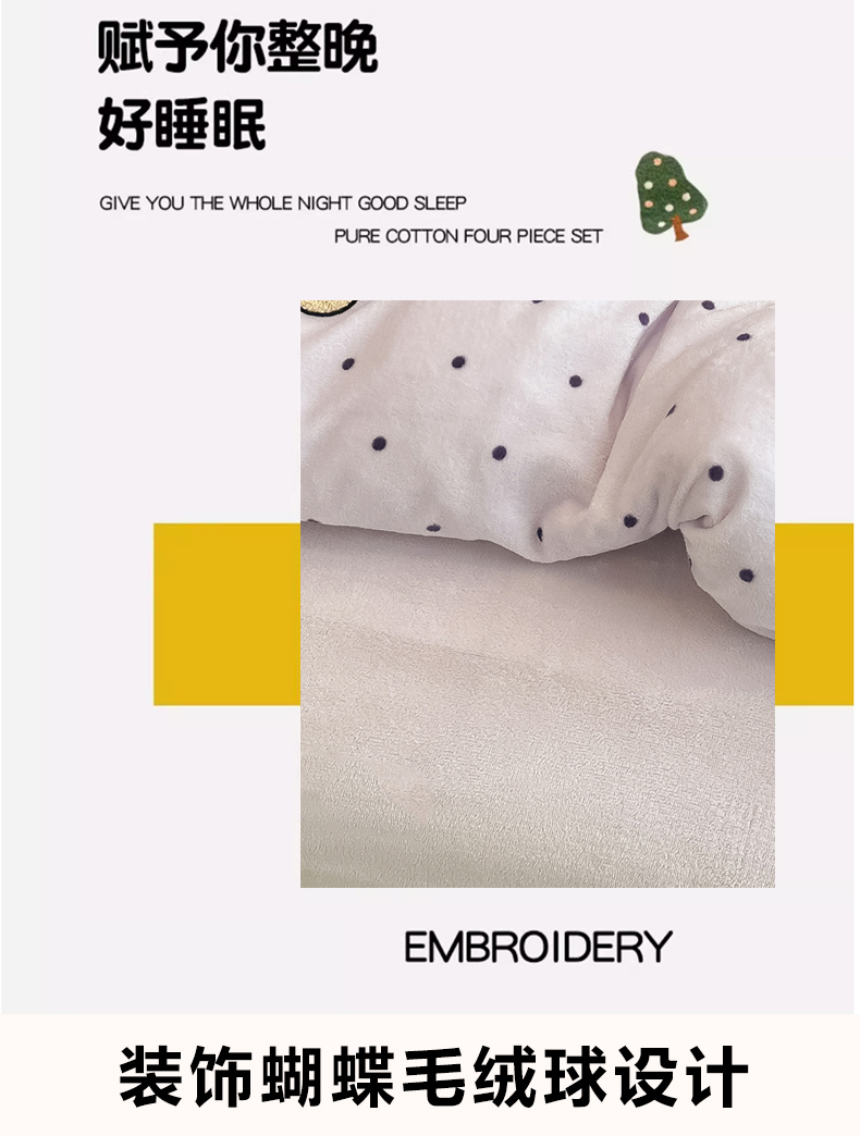 (总)子钦家纺 2025秋冬新款加厚牛奶绒蝴蝶结公主风毛巾绣床单床笠四件套,牛奶绒公主风-粉波点,牛奶绒公主风-紫波点,牛奶绒公主风-奶波点