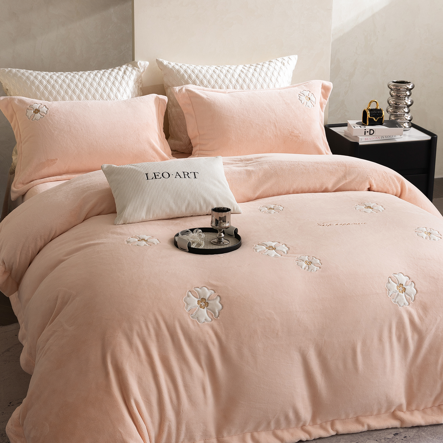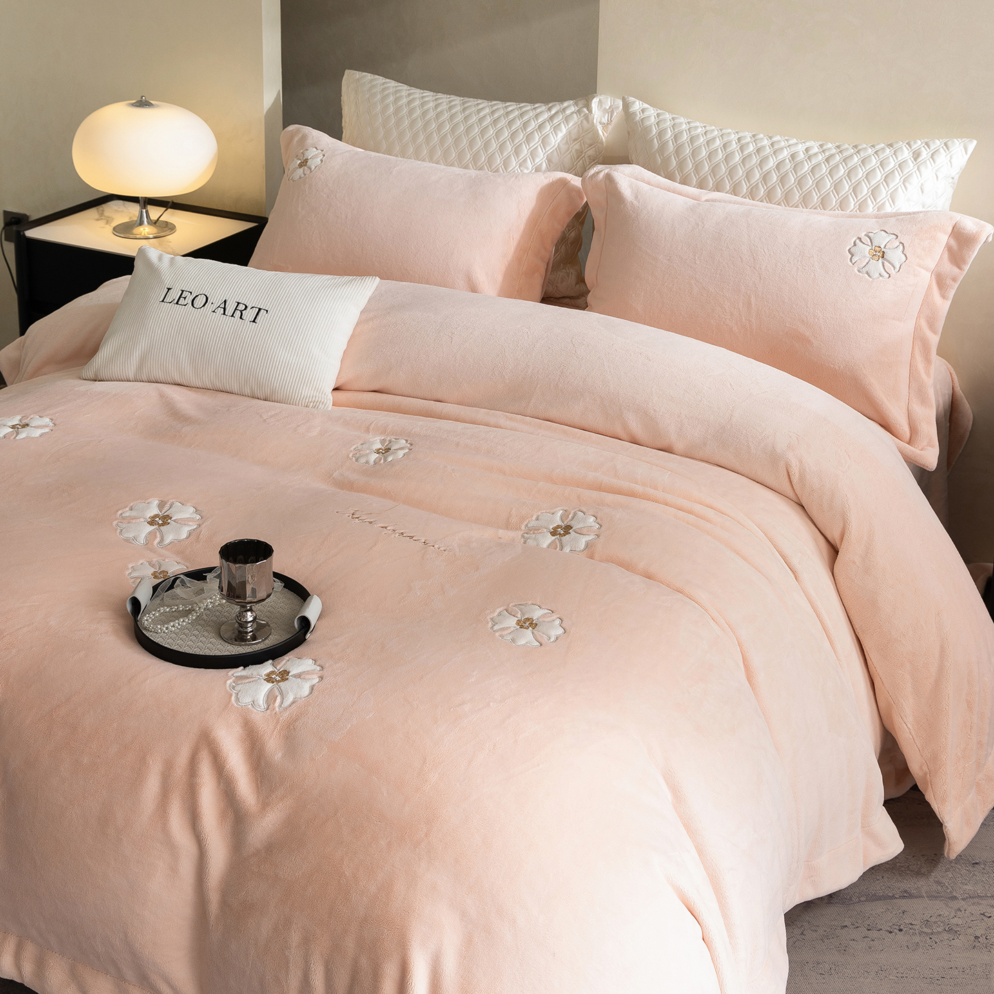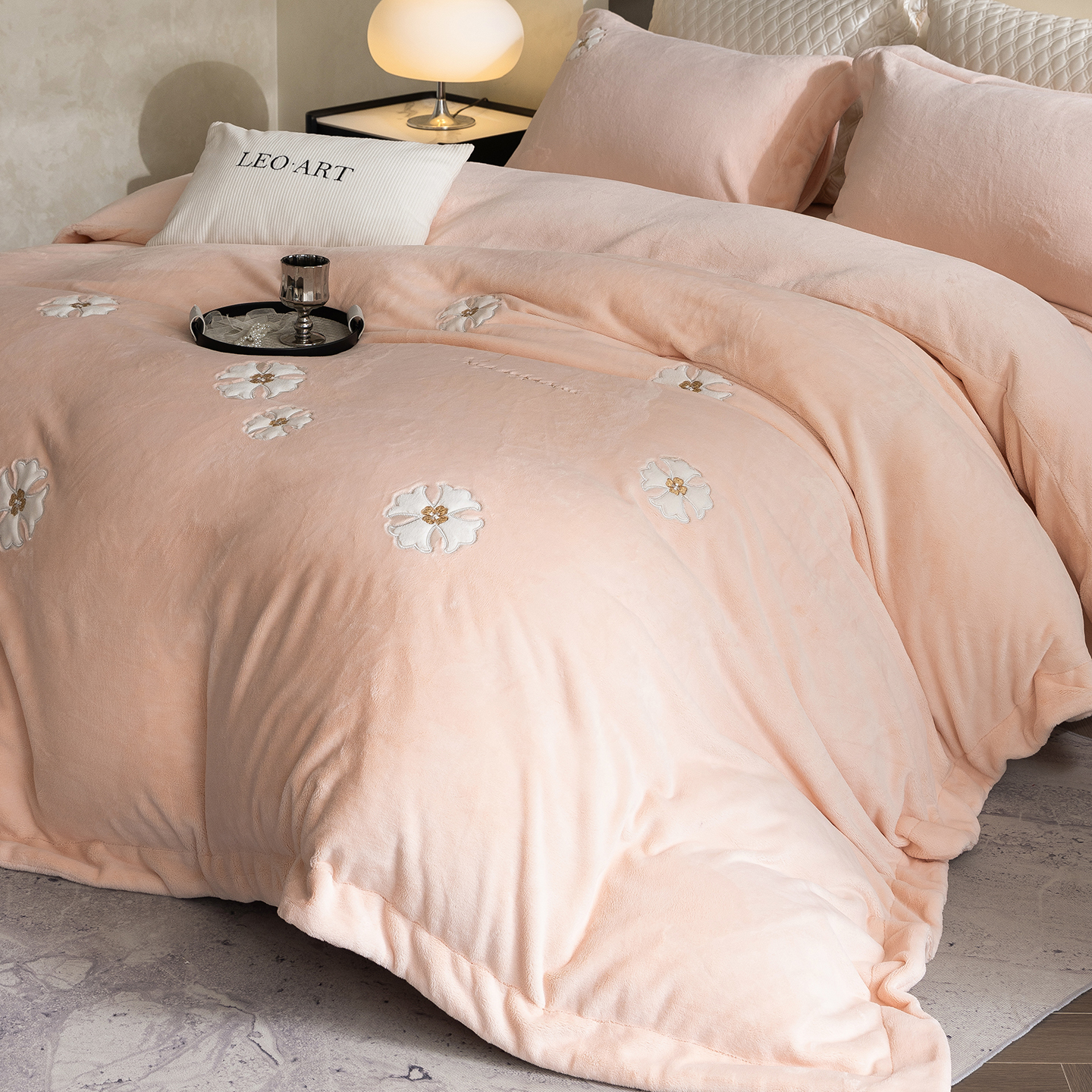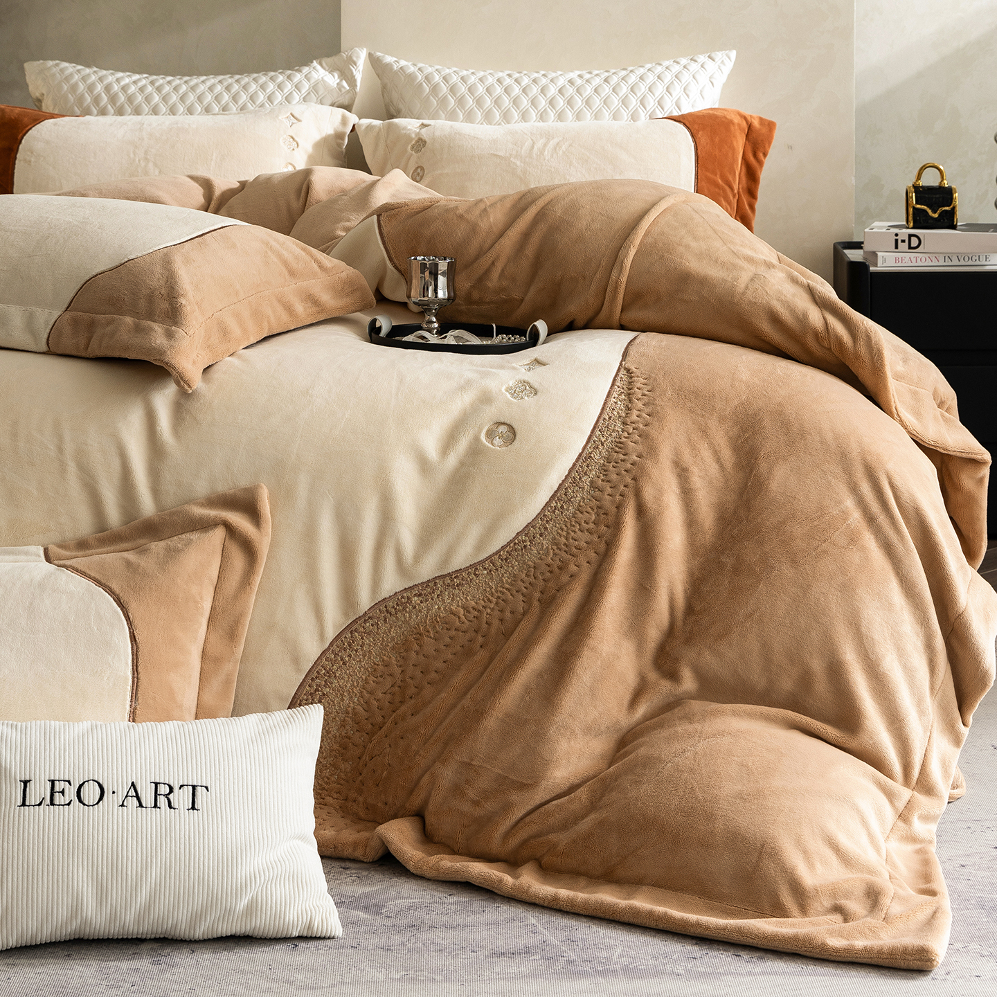 商品名称:涞澳家纺 2025新款牛奶绒绣花四件套(利威亚&心熠欢眠) 利威亚-卡其