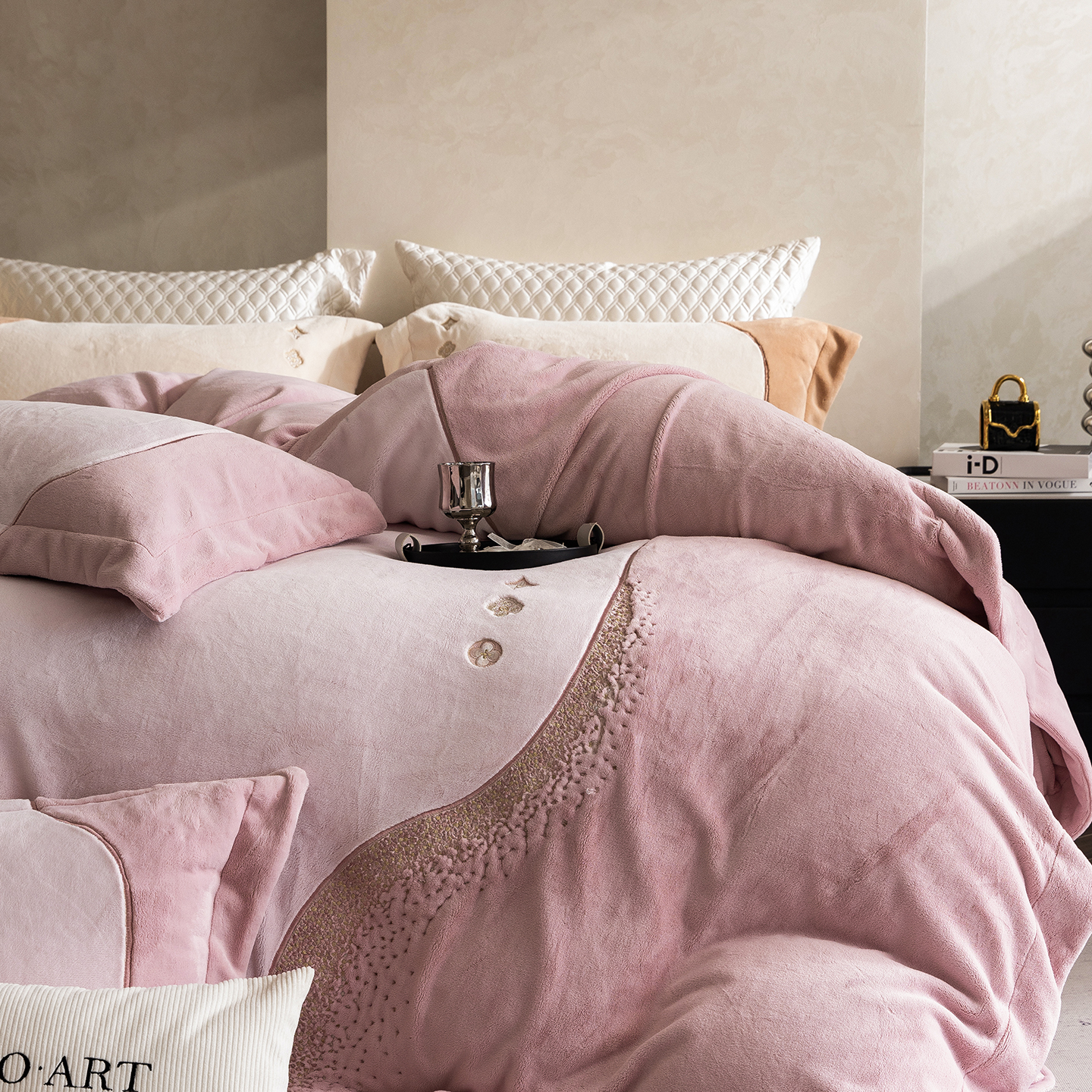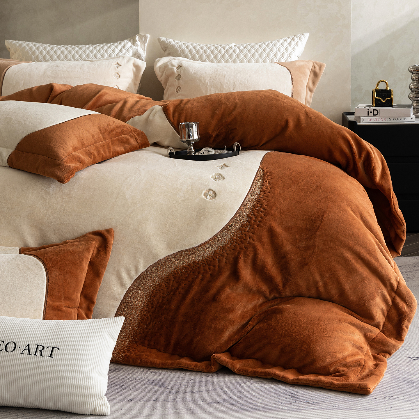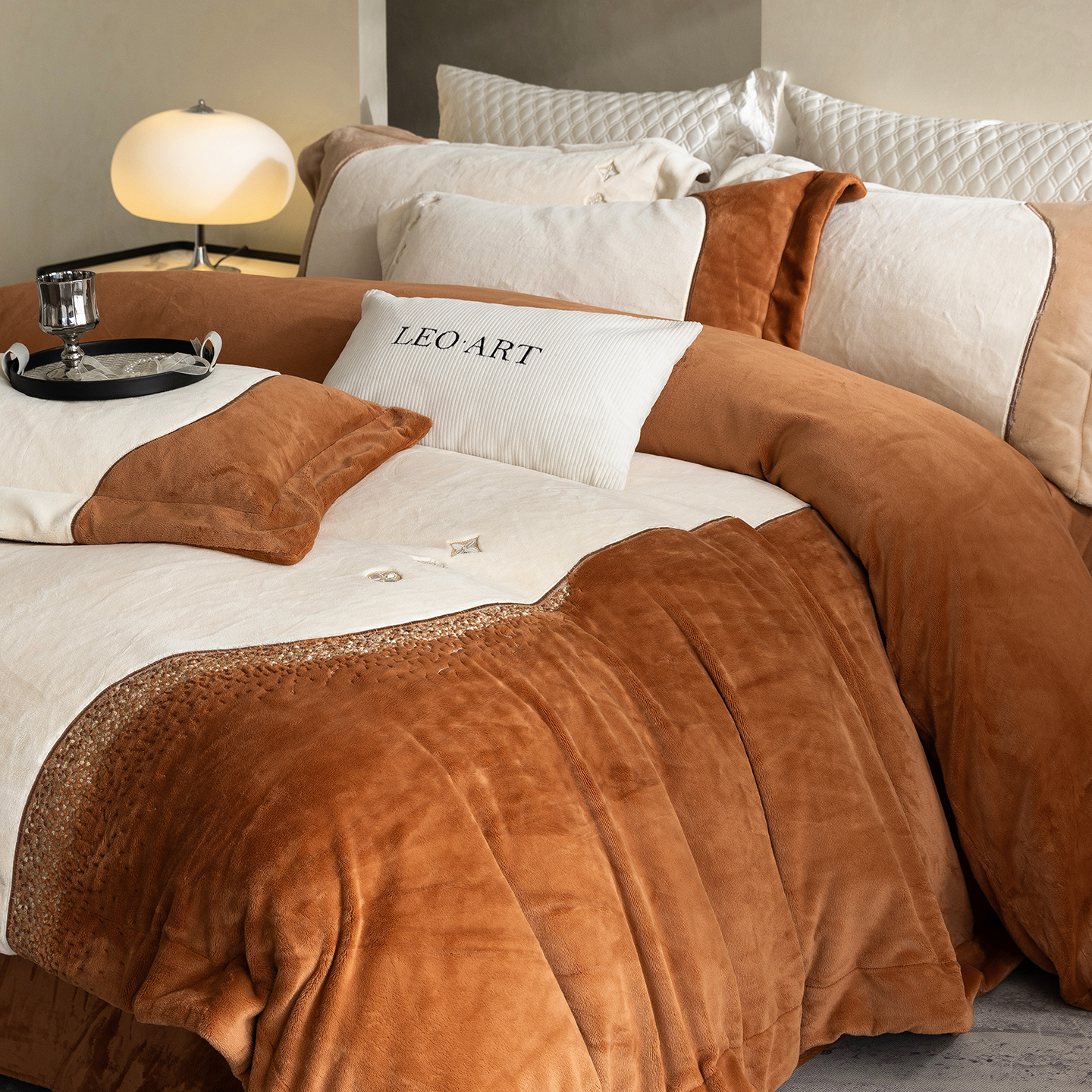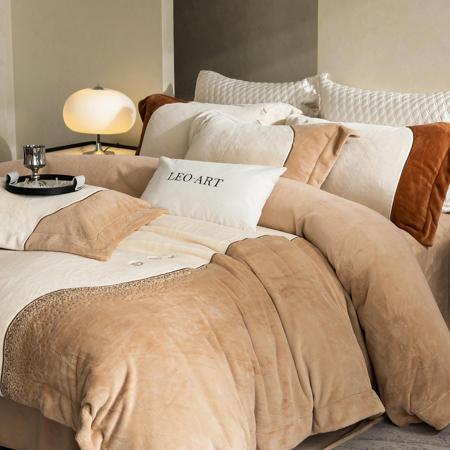 涞澳家纺 2025新款牛奶绒绣花四件套(利威亚&心熠欢眠) 利威亚-卡其