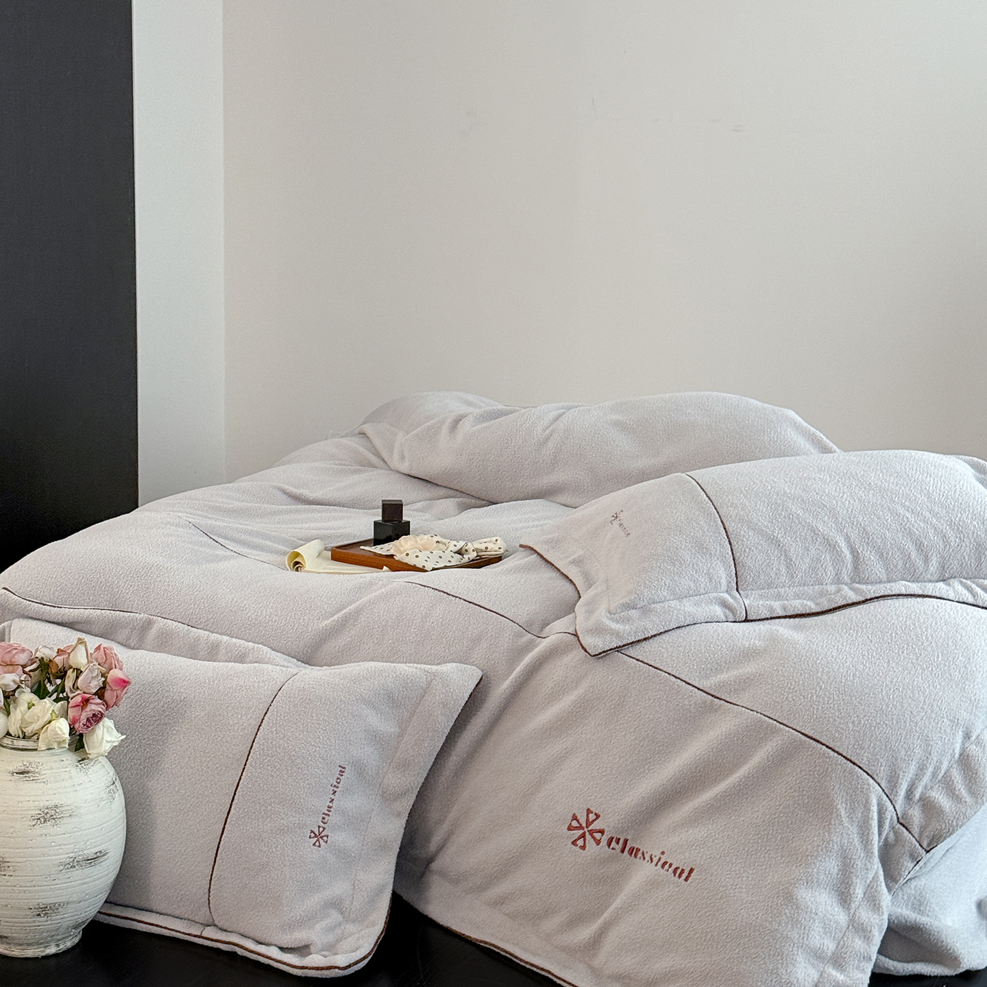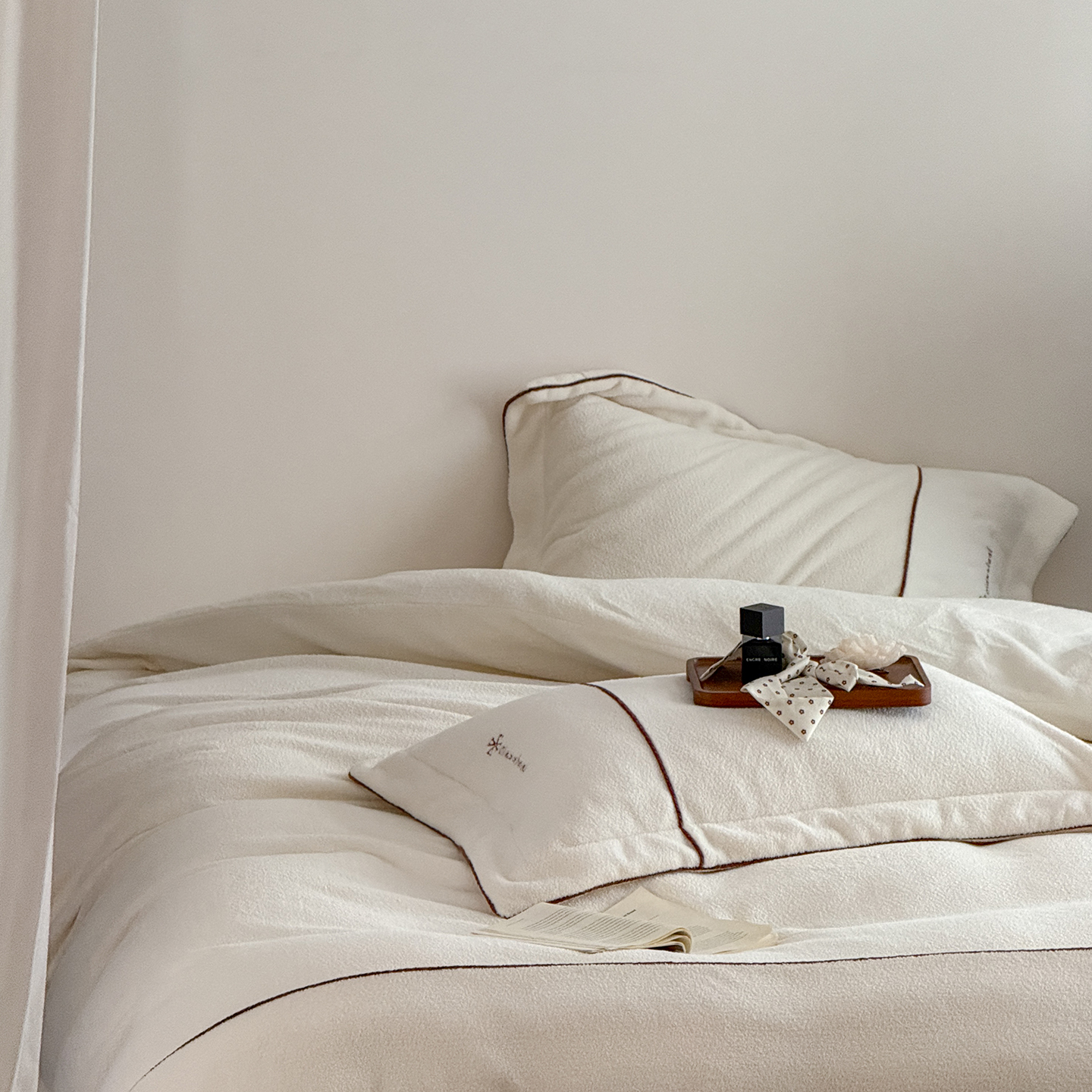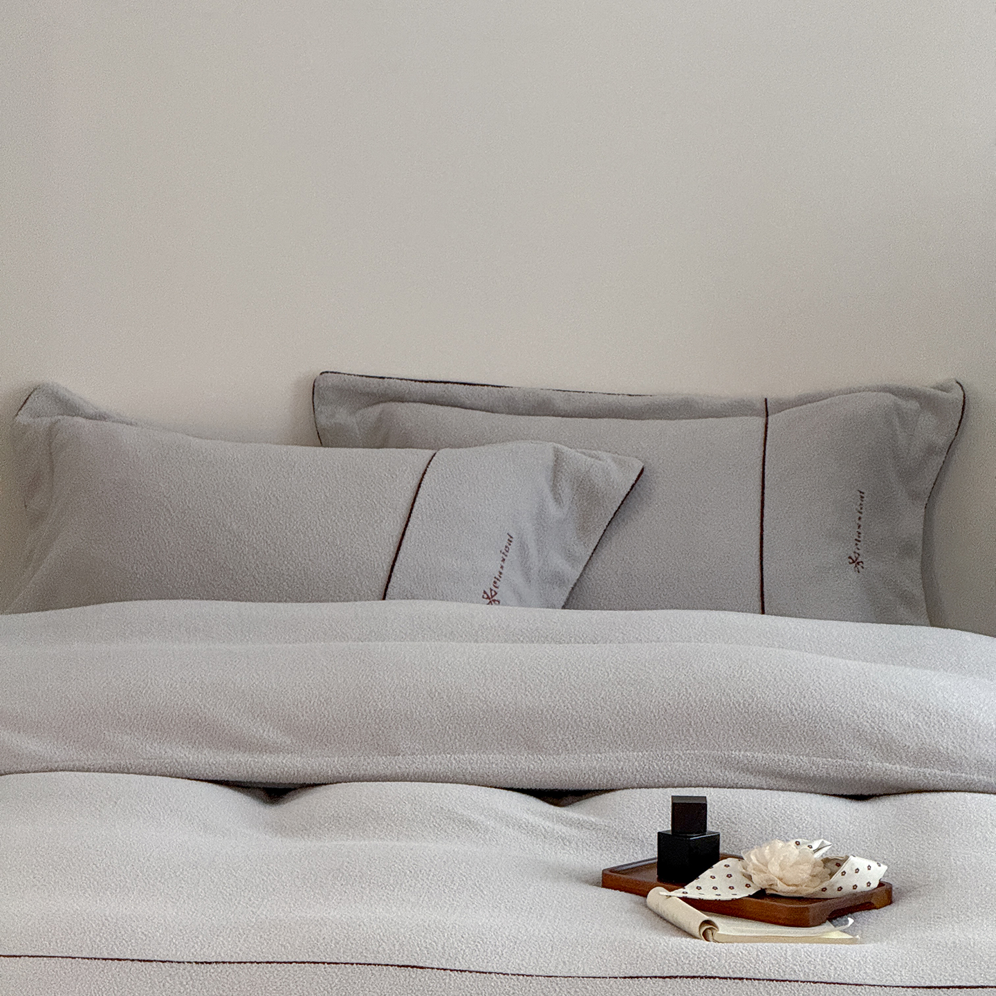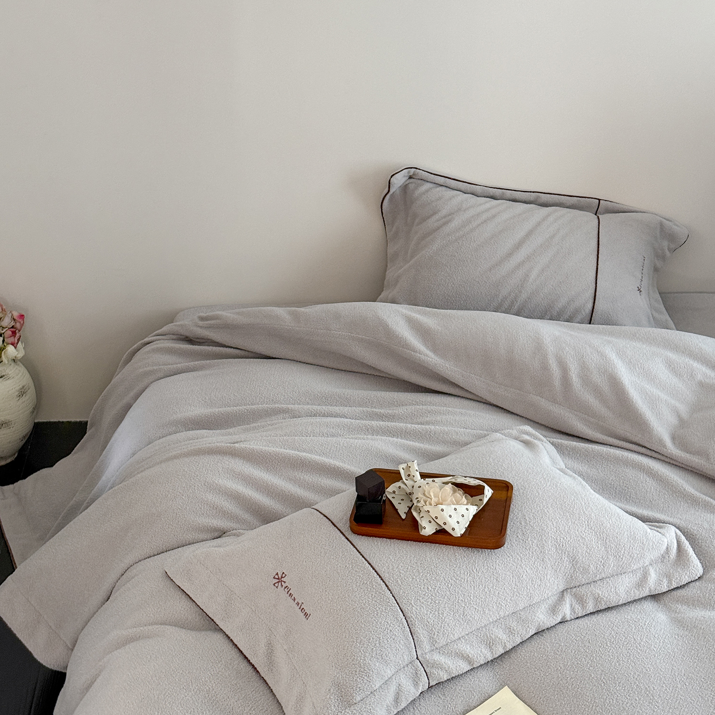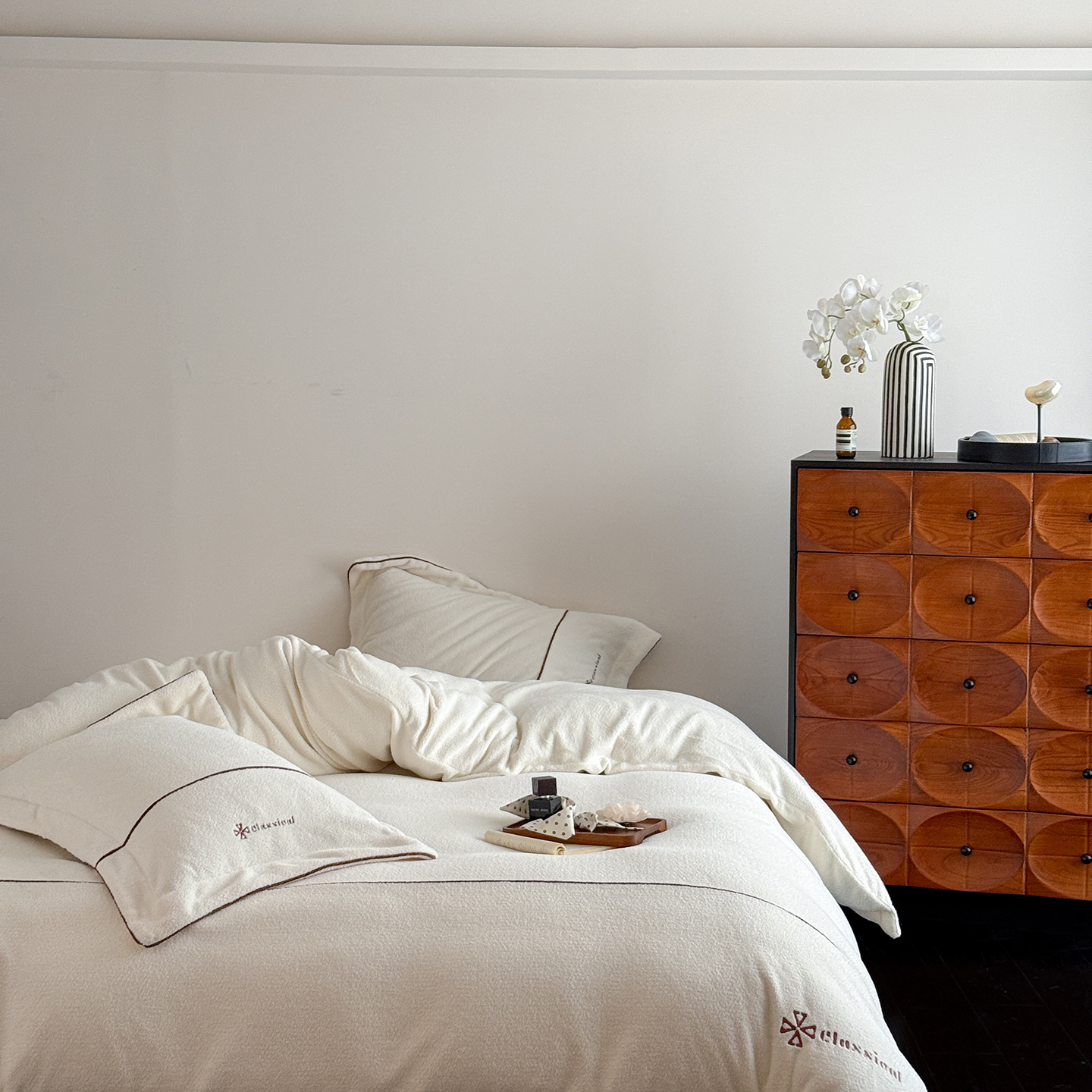 (总)涞澳家纺 2026新款全棉纯棉水洗棉纯色花边款四件套-珠若,珠若-米白,珠若-浅灰,珠若-浅绿,珠若-浅玉