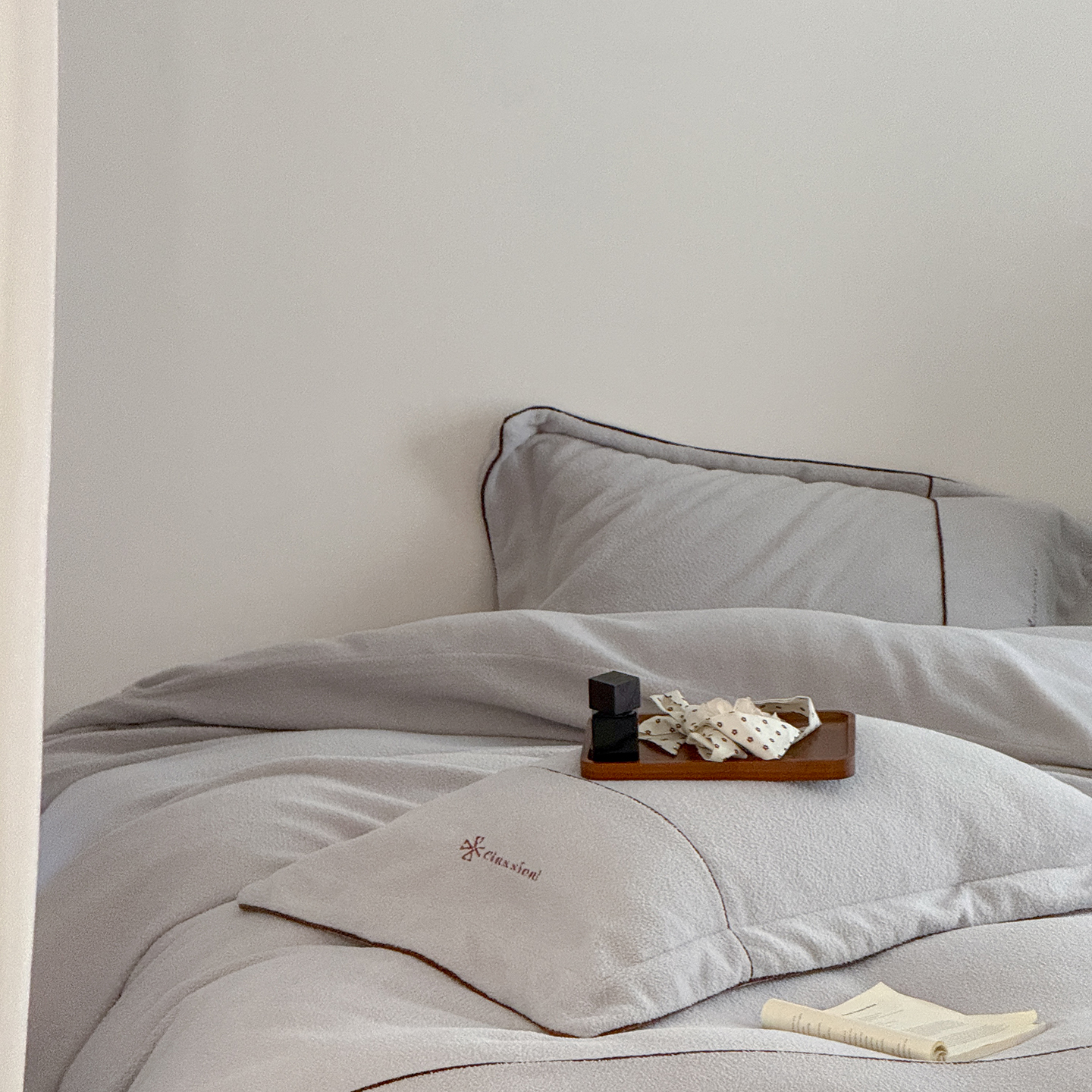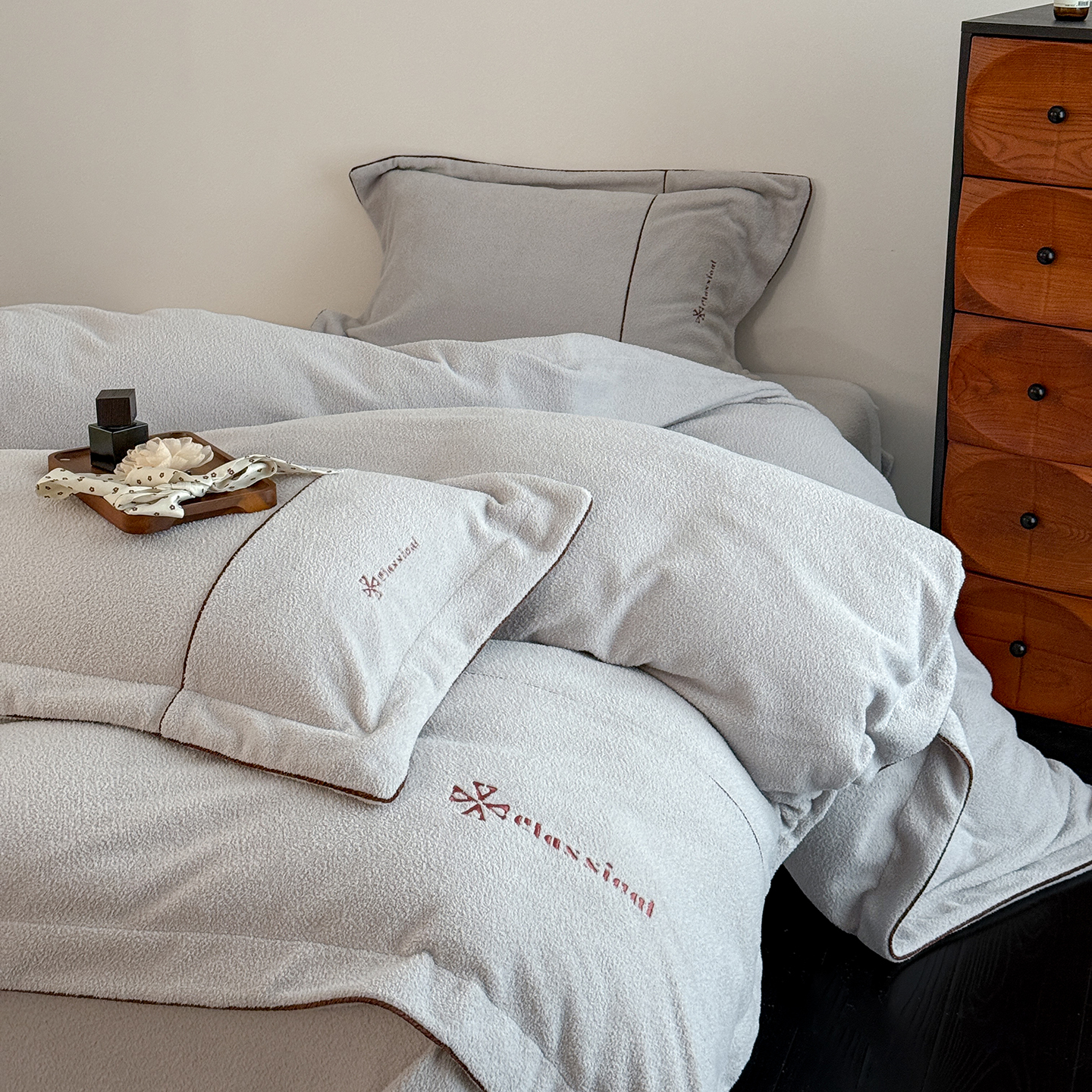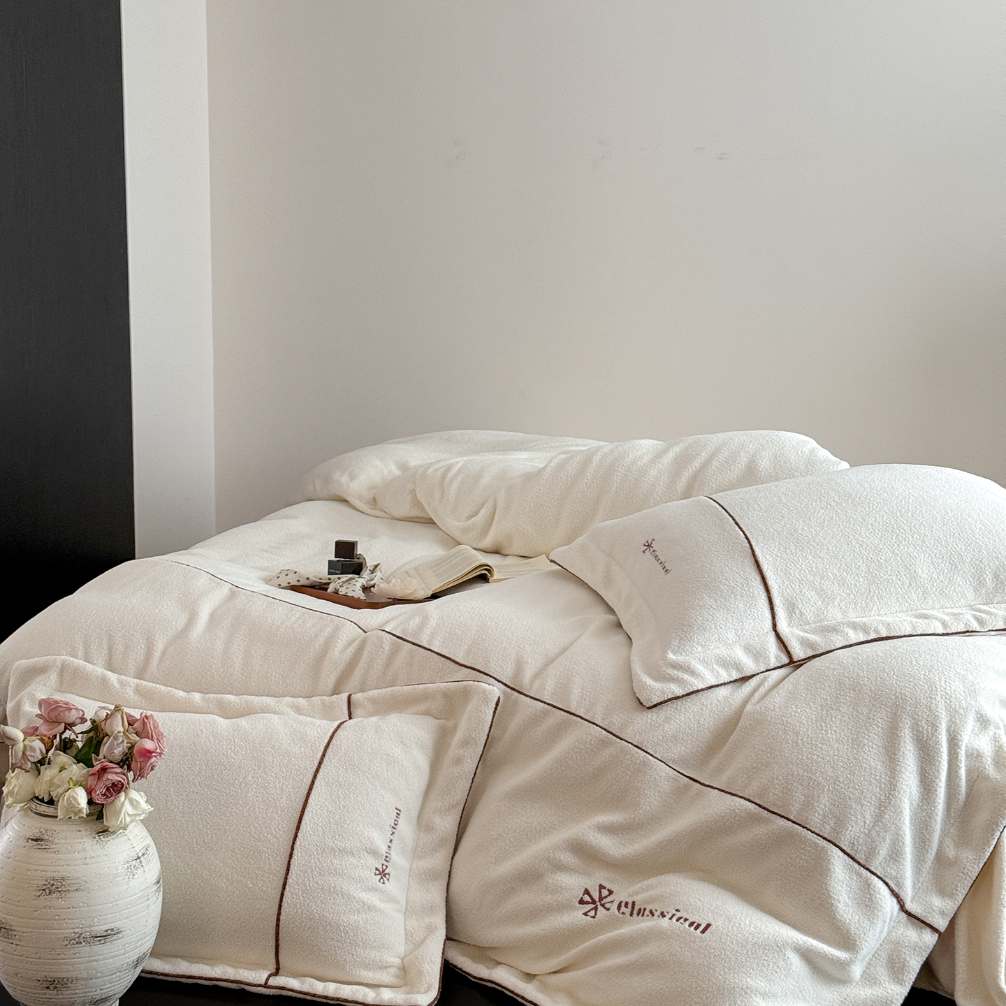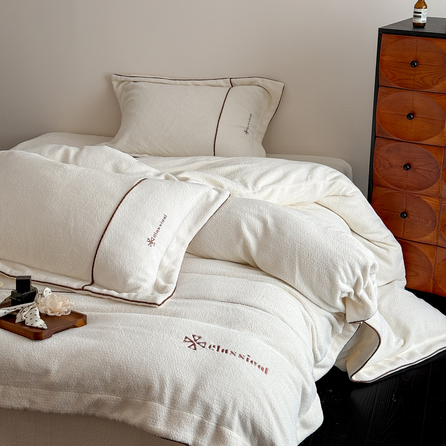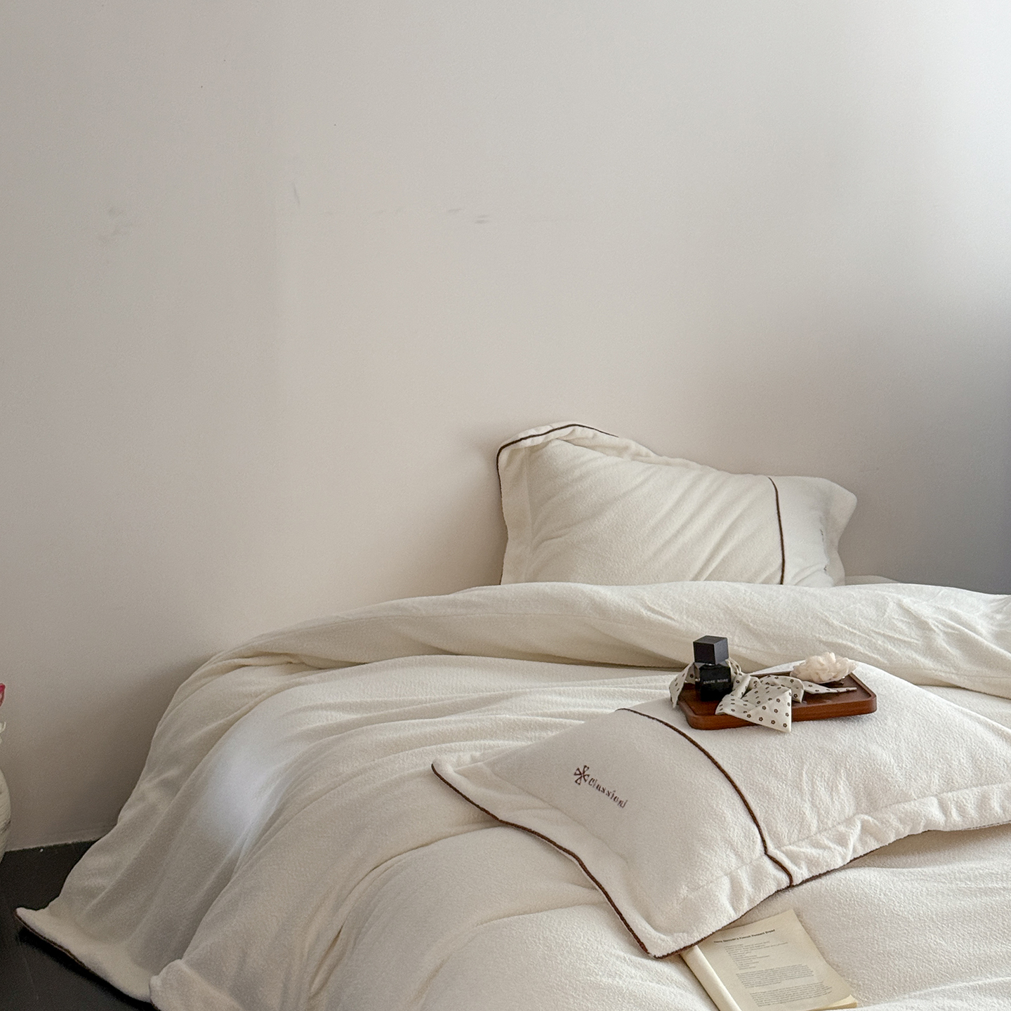 (总)涞澳家纺 2026新款全棉纯棉水洗棉纯色花边款四件套-珠若,珠若-米白,珠若-浅灰,珠若-浅绿,珠若-浅玉